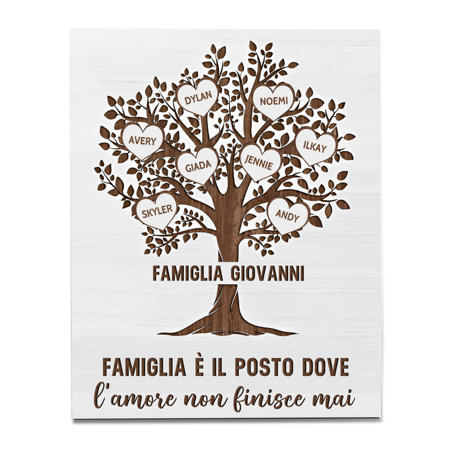 Targa di legno albero della vita 8 nomi personalizzabili regalo familiare