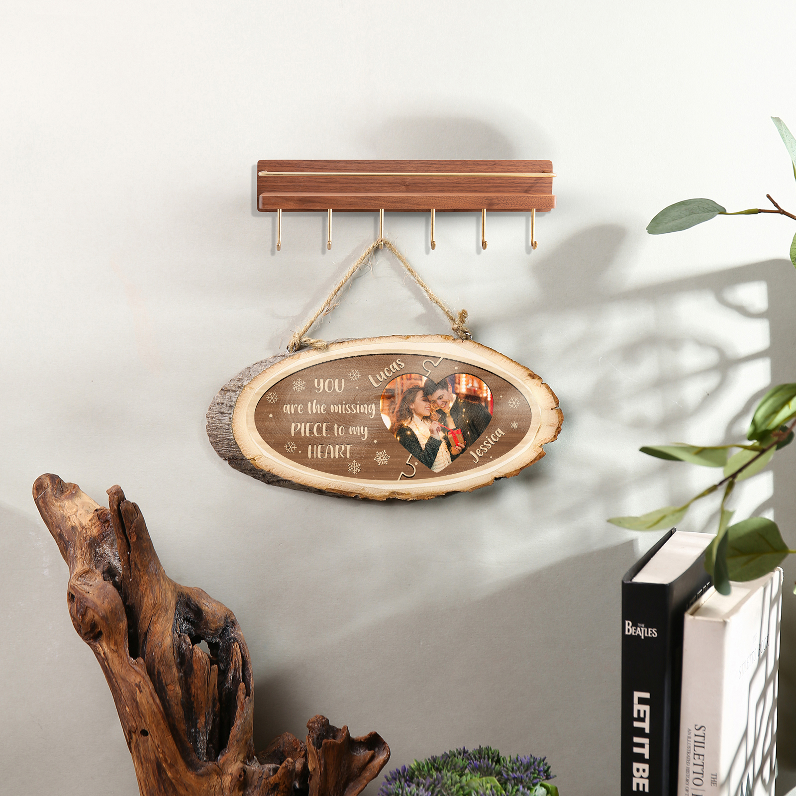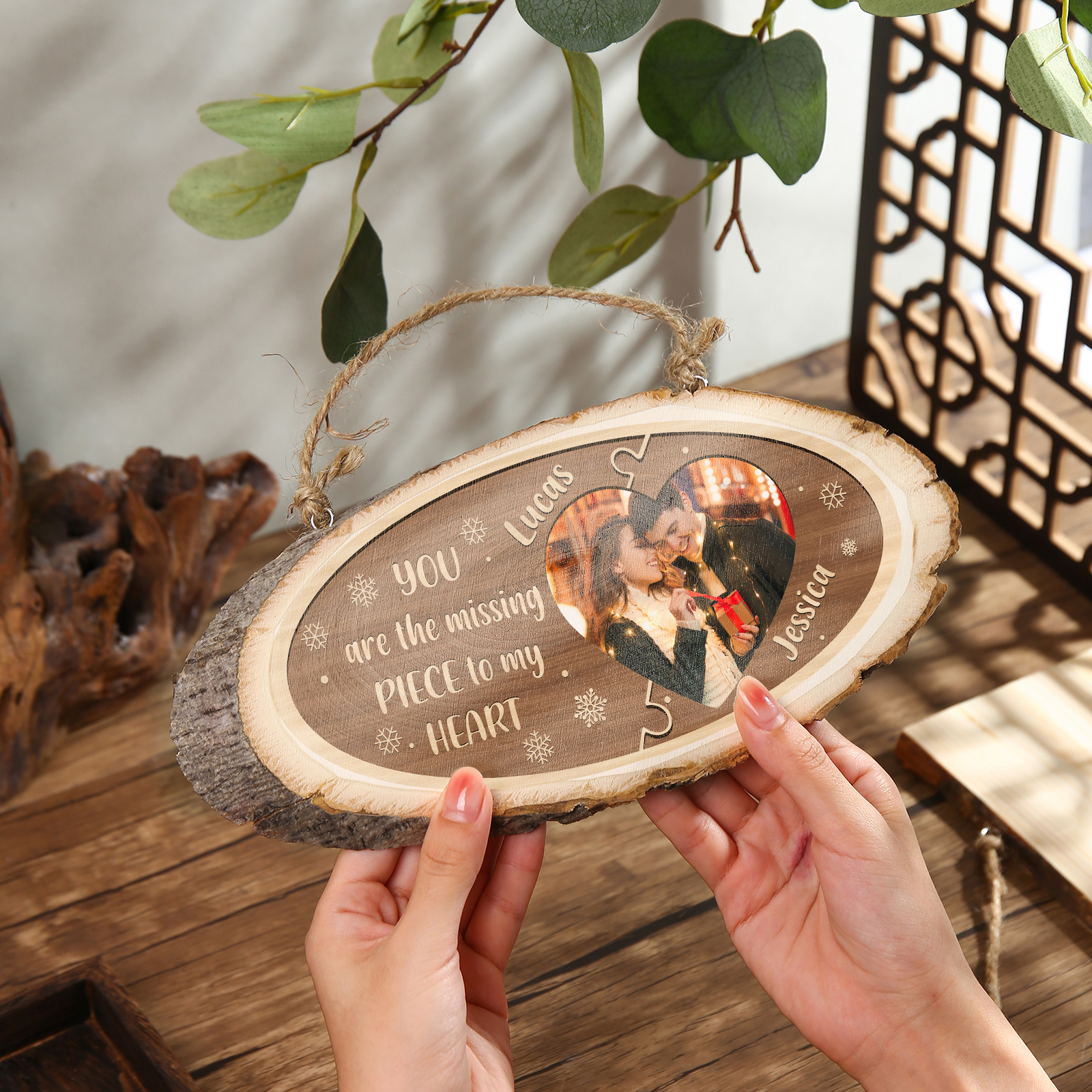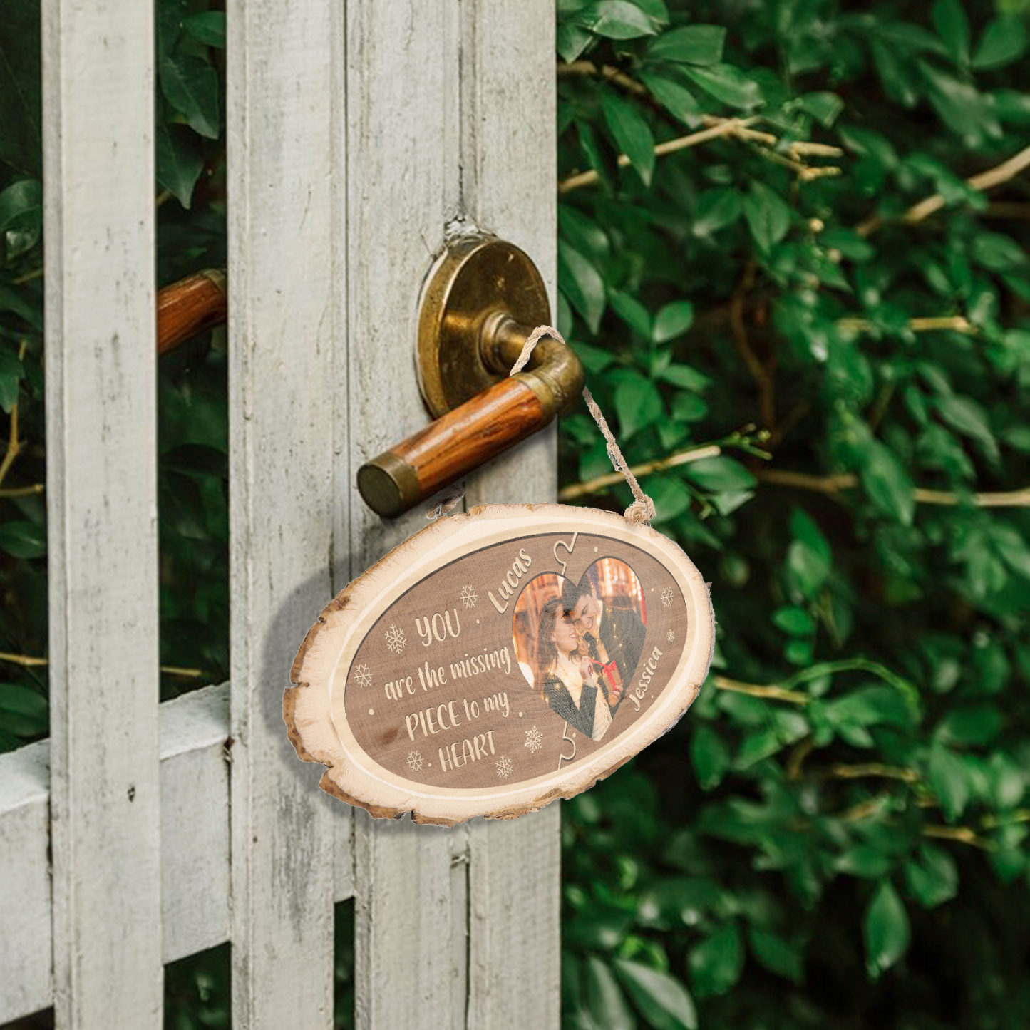 Targa di legno appesa con 2 nomi e 1 foto e 1 testo personalizzabili per coppia