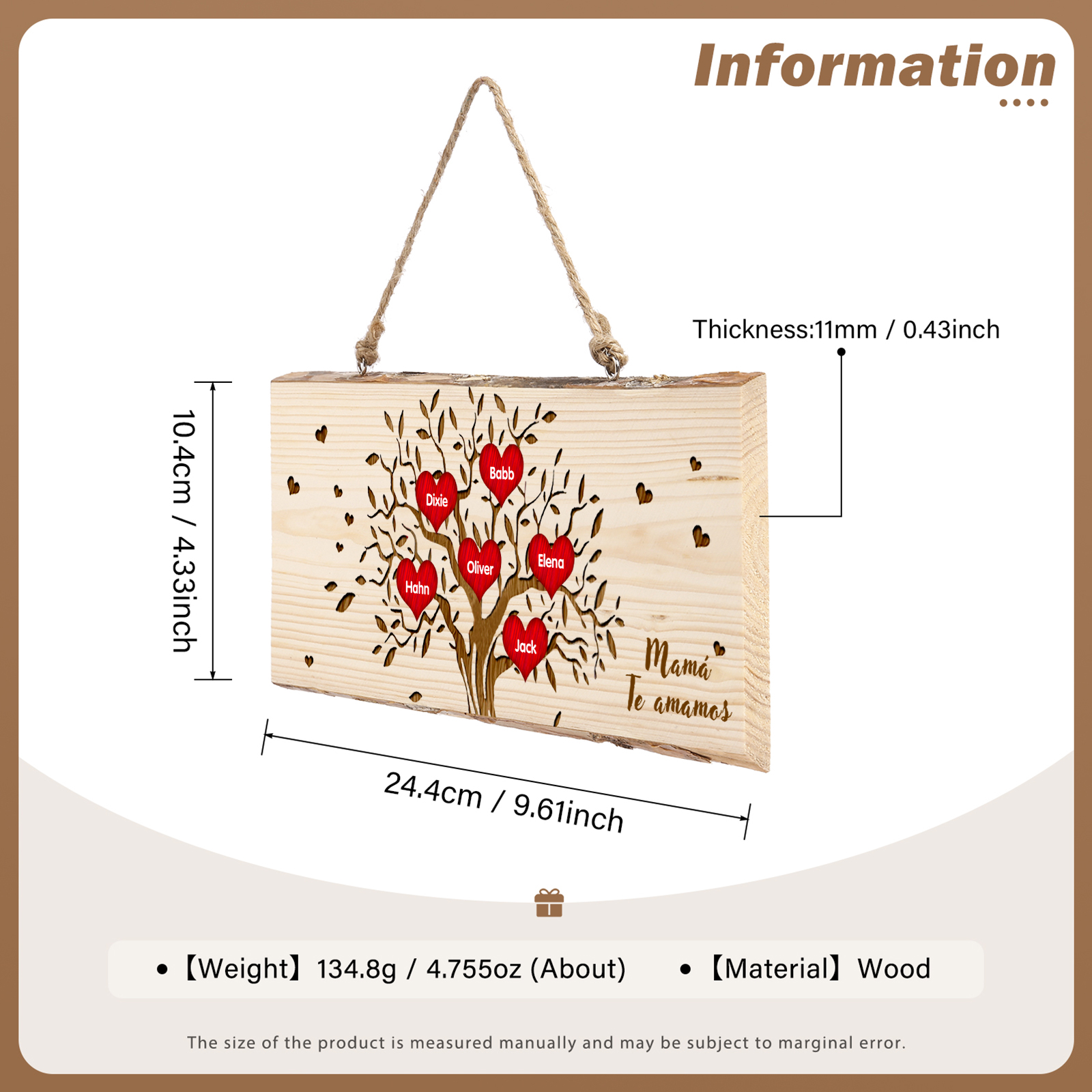 Targa di legno appesa con albero di vita 6 nomi e 1 testo personalizzabili per mamma/nonna