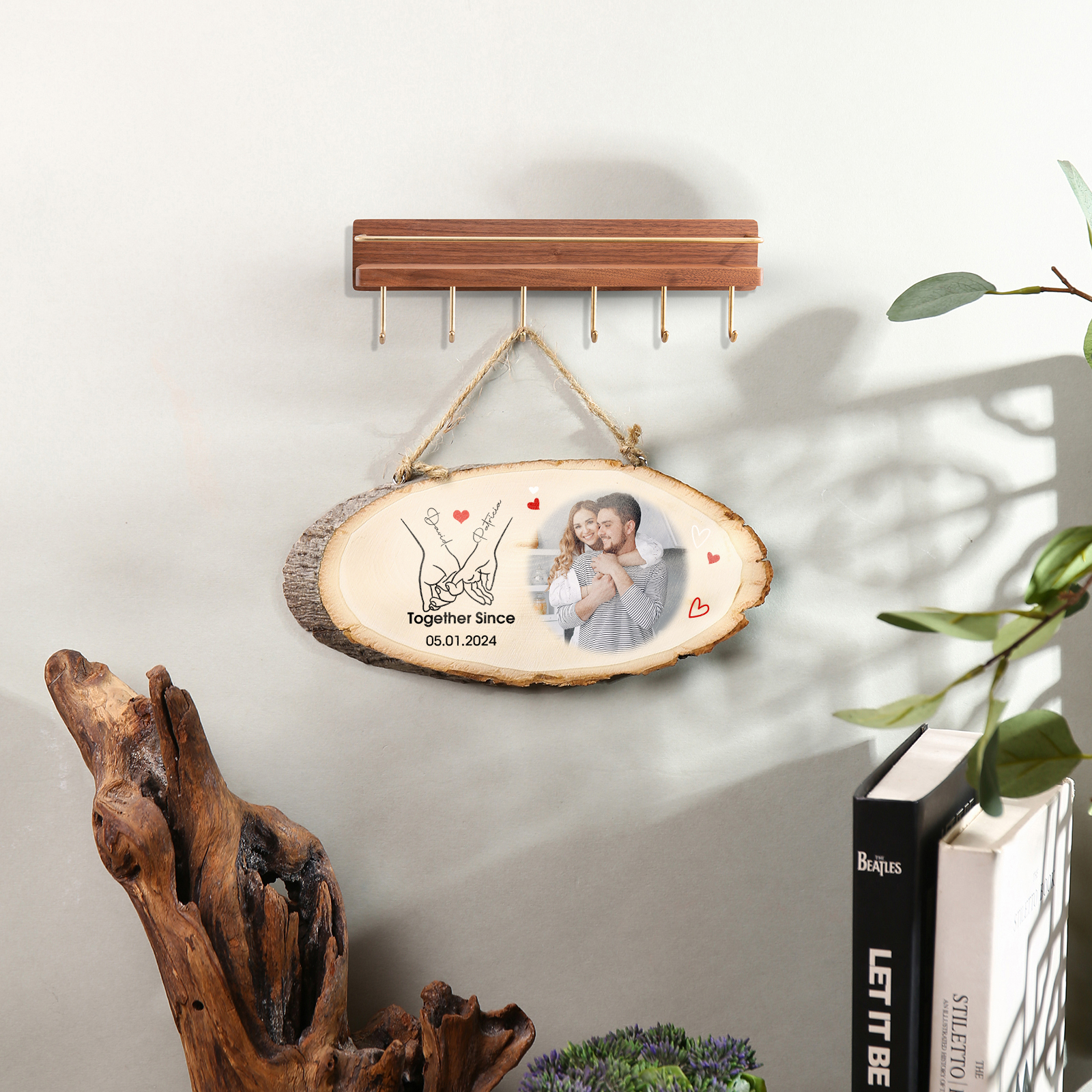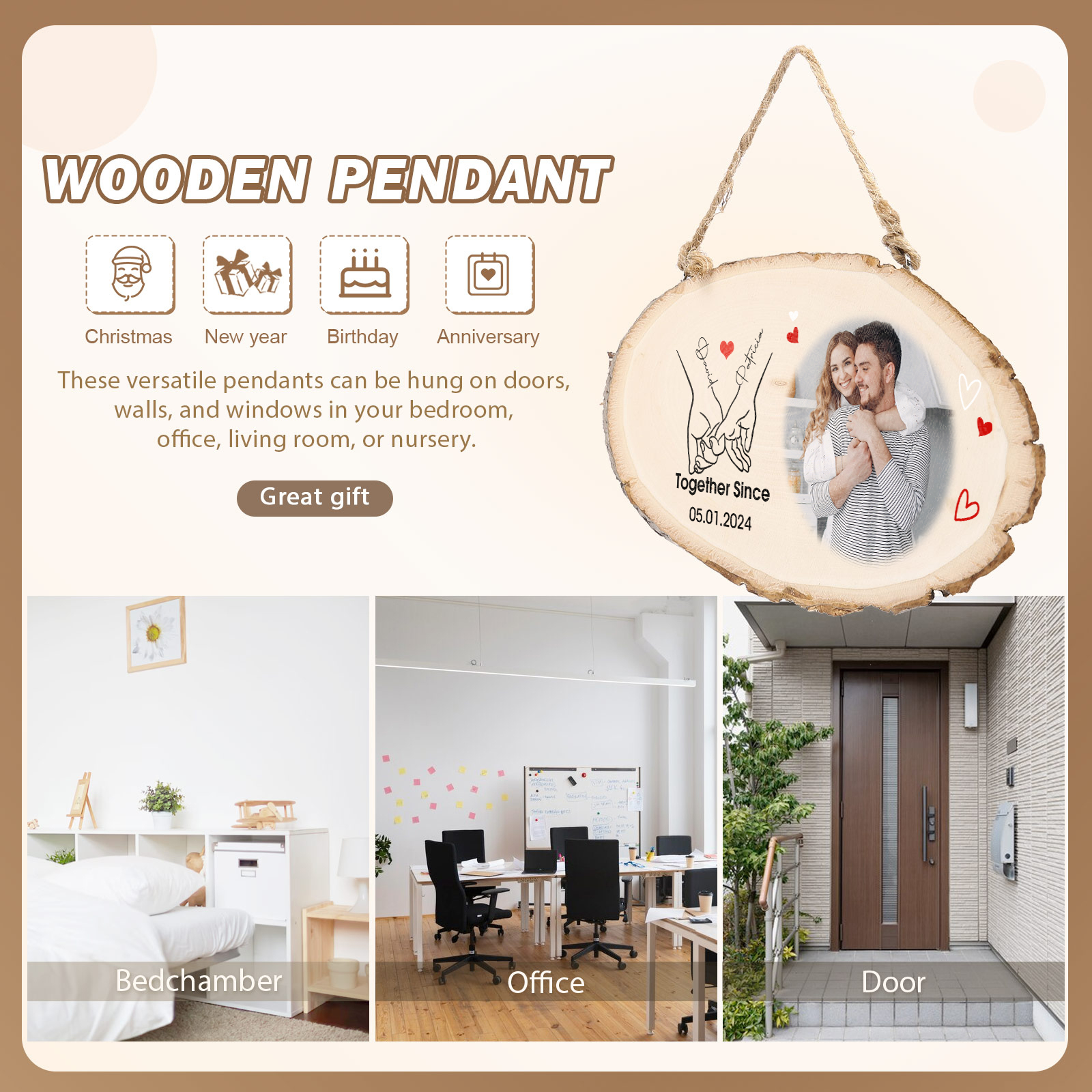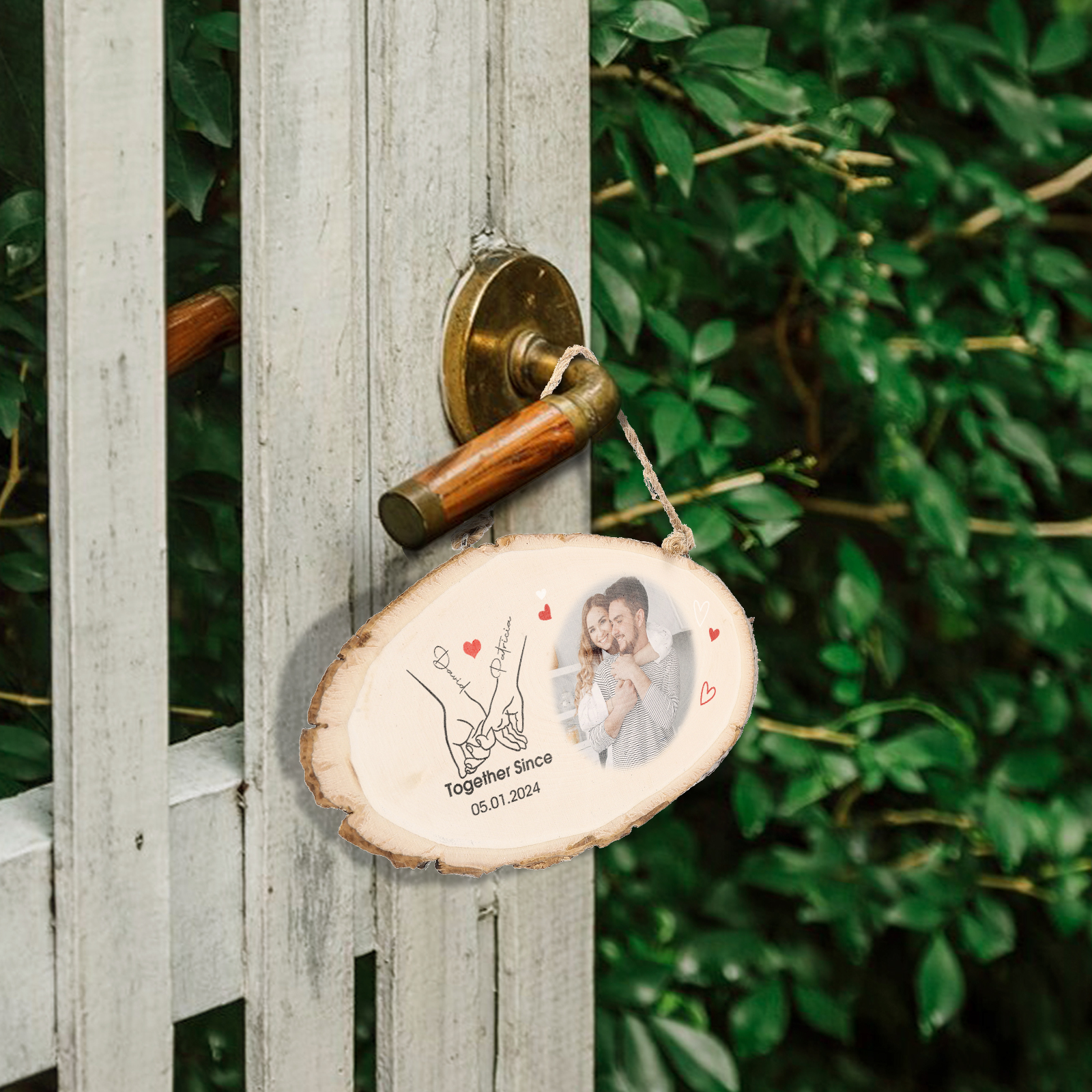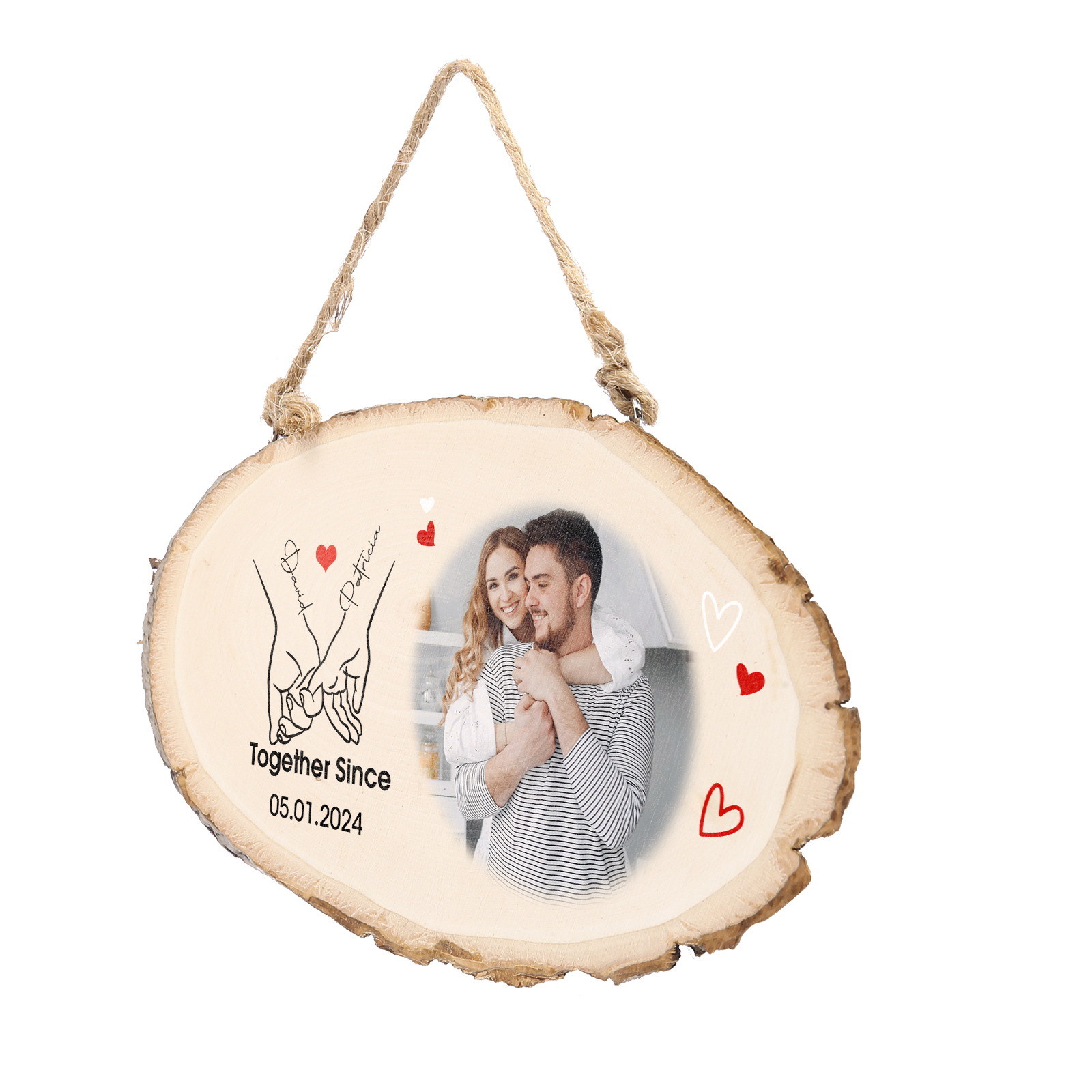 Targa di legno appesa mano nella mano 2 nomi e 1 data e 1 foto e 1 testo personalizzabili per coppia