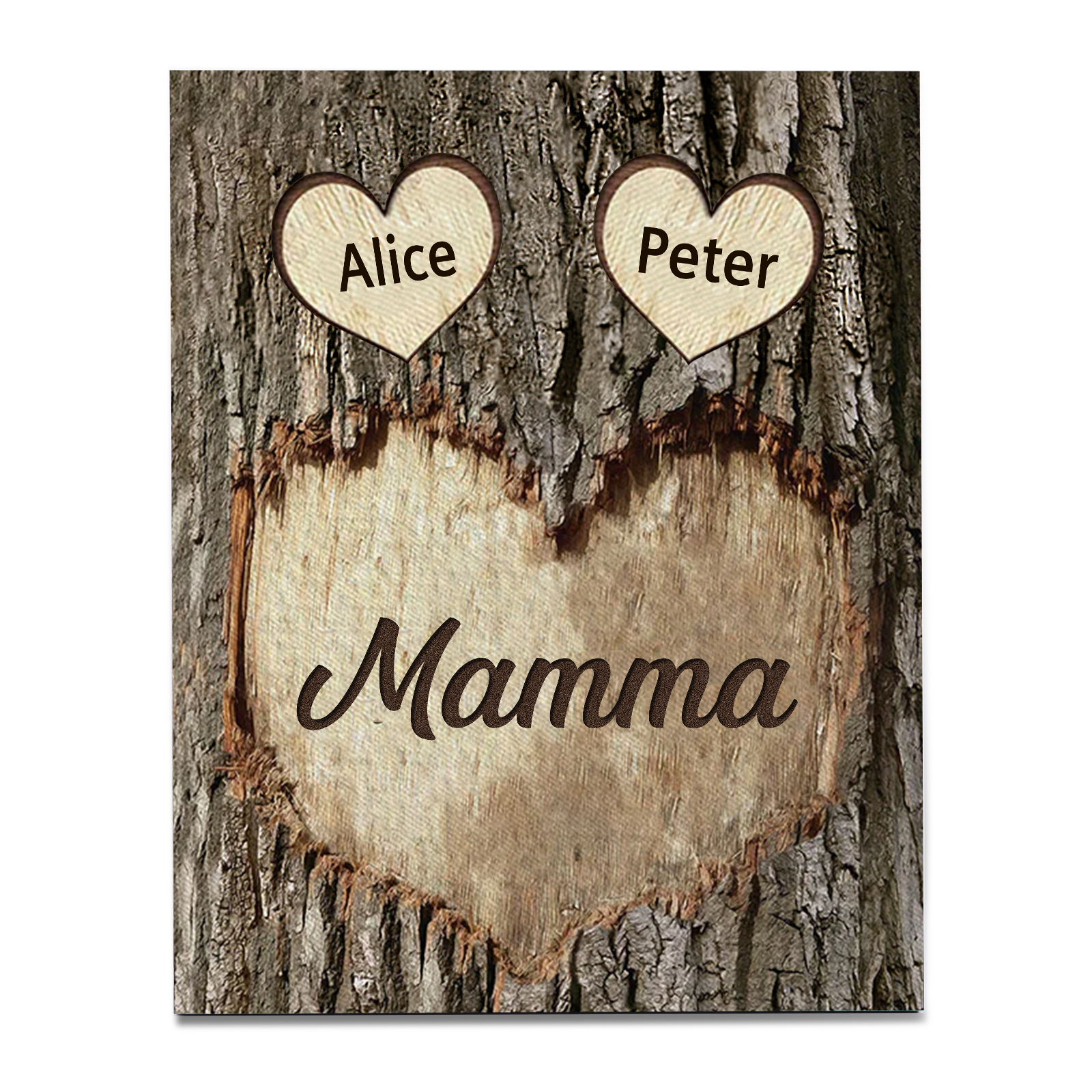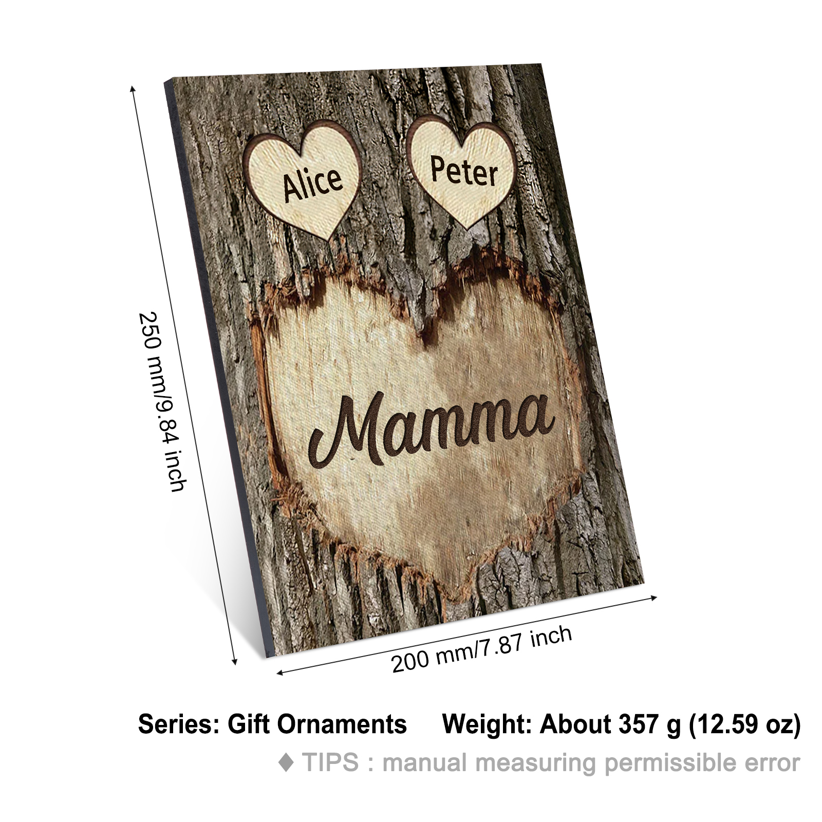 Targa di Legno cuore Per mamma 2 nomi Personalizzabili regalo per la festa della mamma