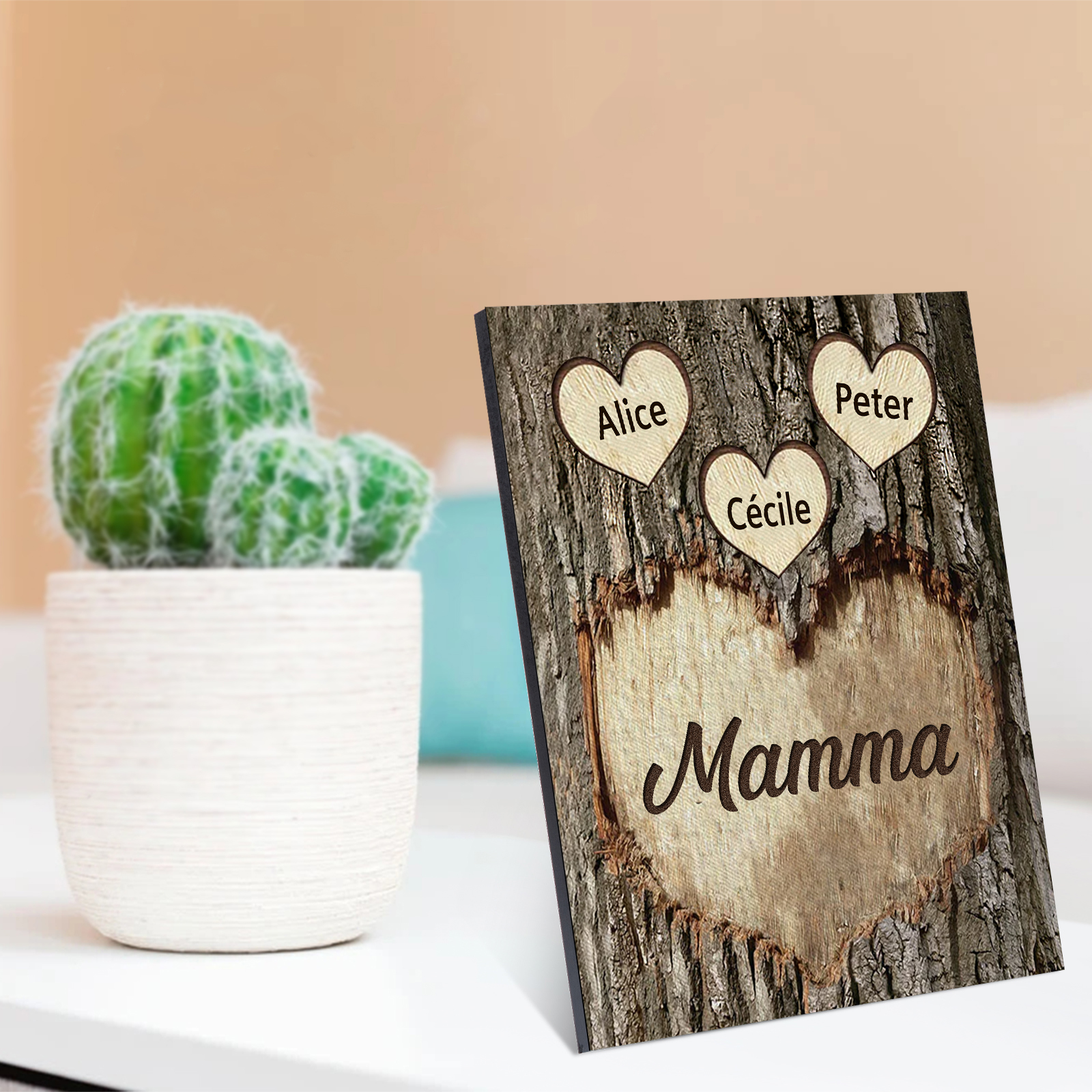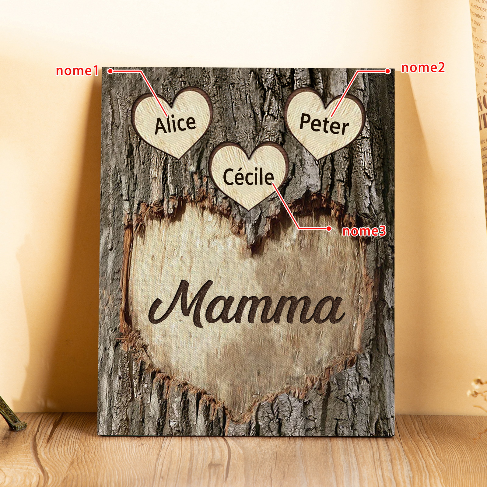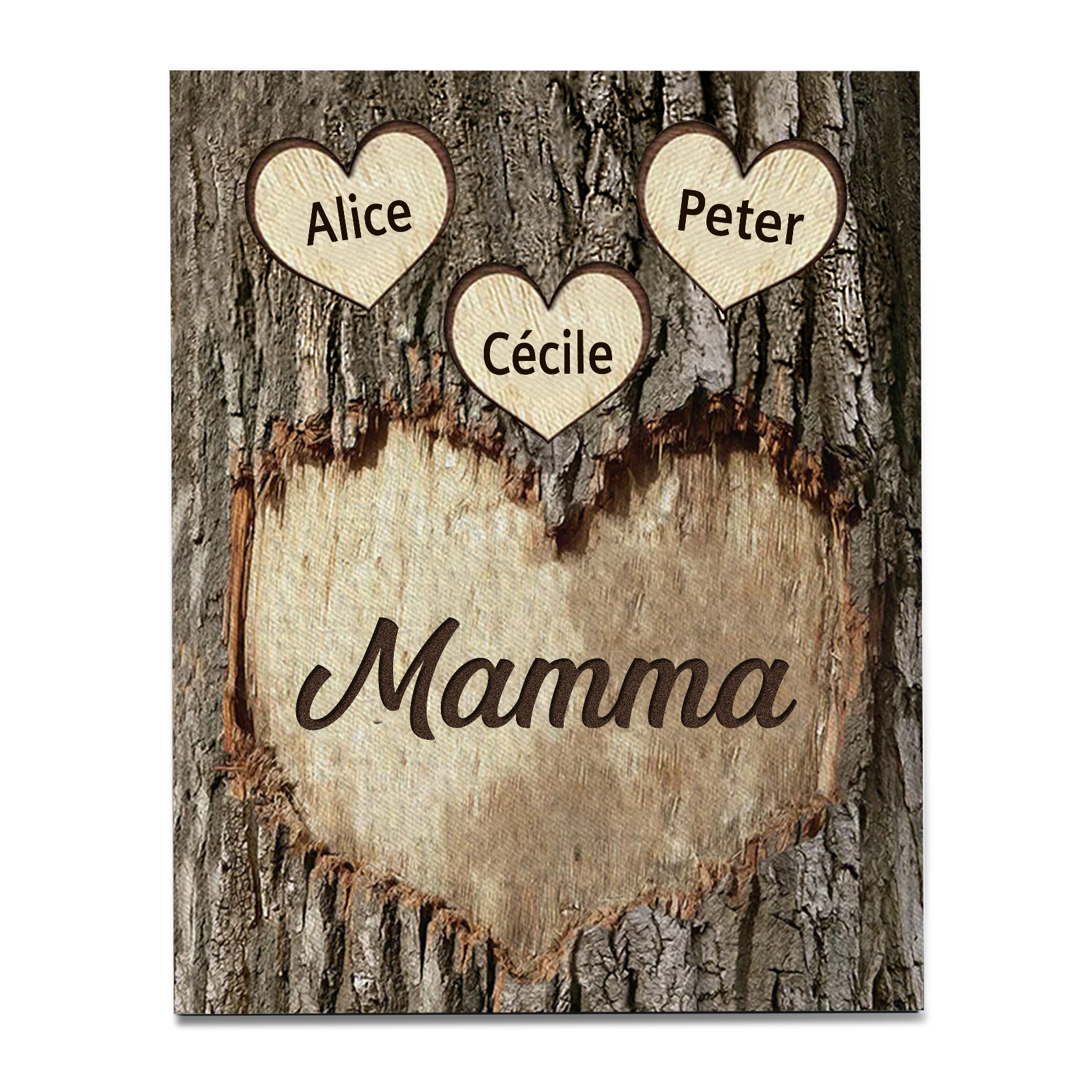 Targa di Legno cuore Per mamma 3 nomi Personalizzabili regalo per la festa della mamma