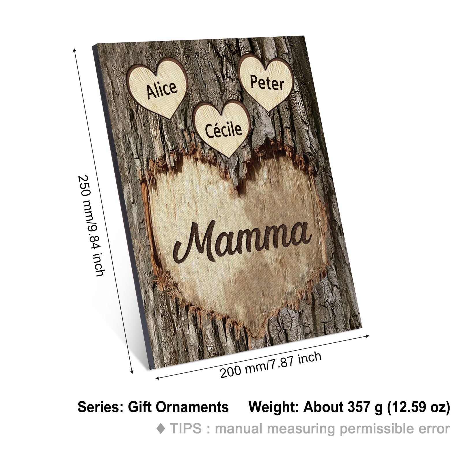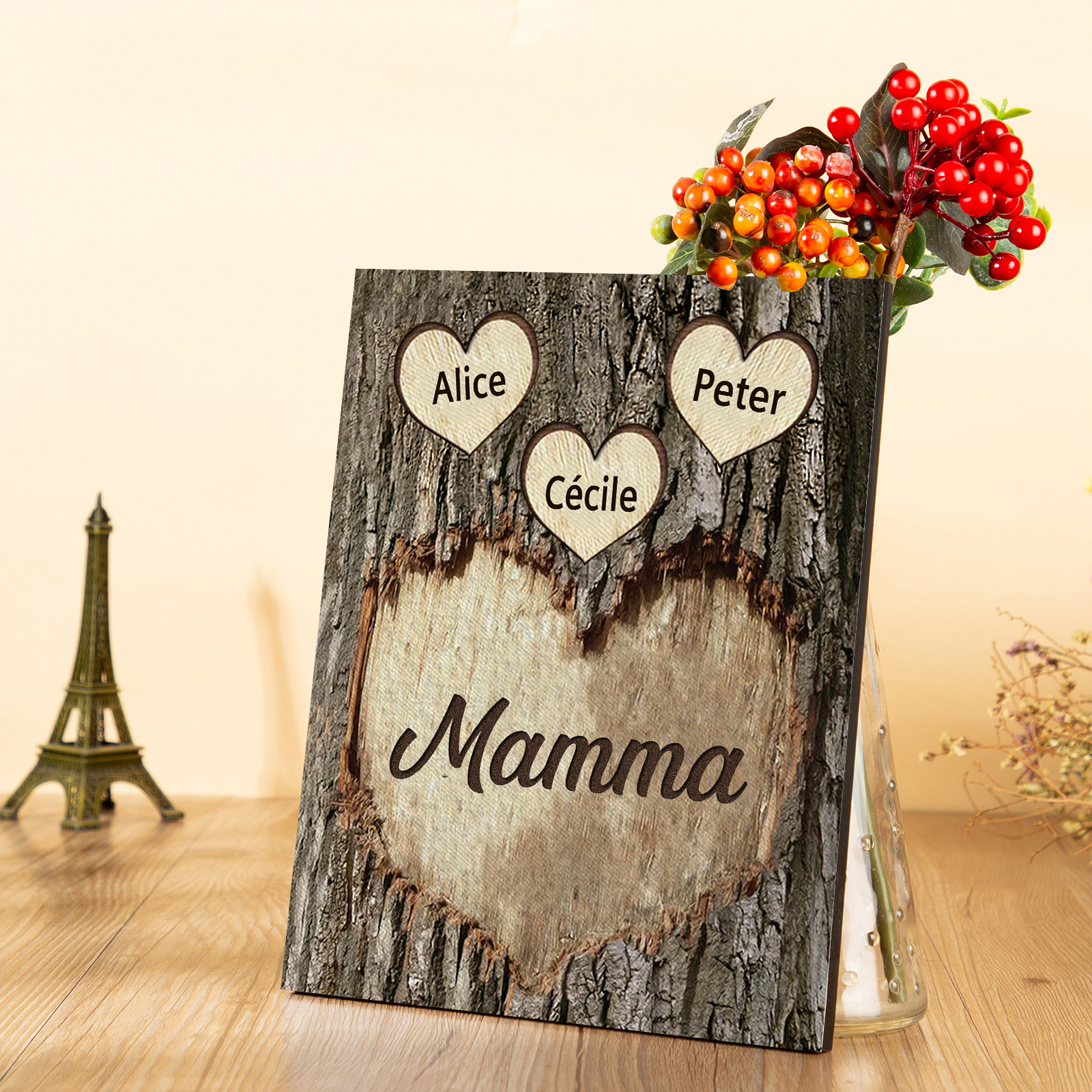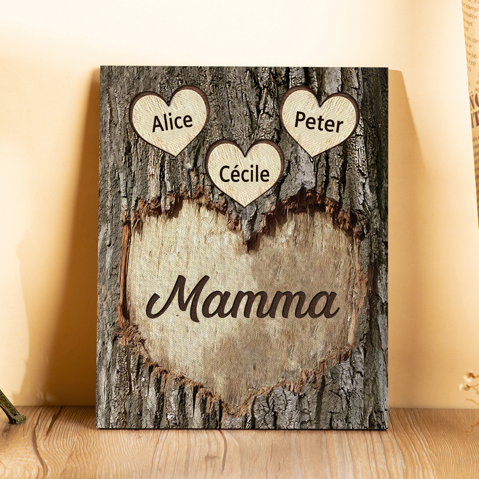Targa di Legno cuore Per mamma 3 nomi Personalizzabili regalo per la festa della mamma
