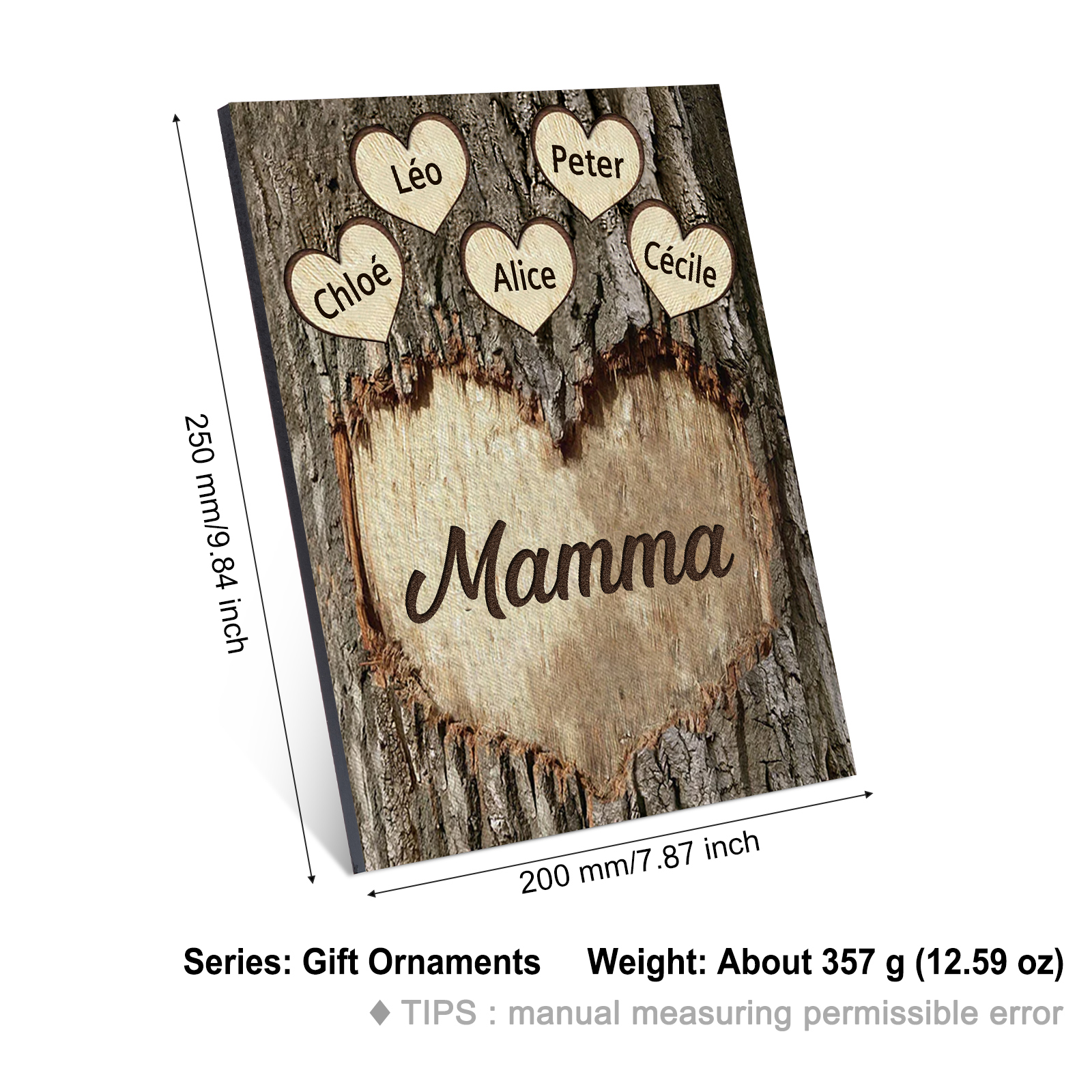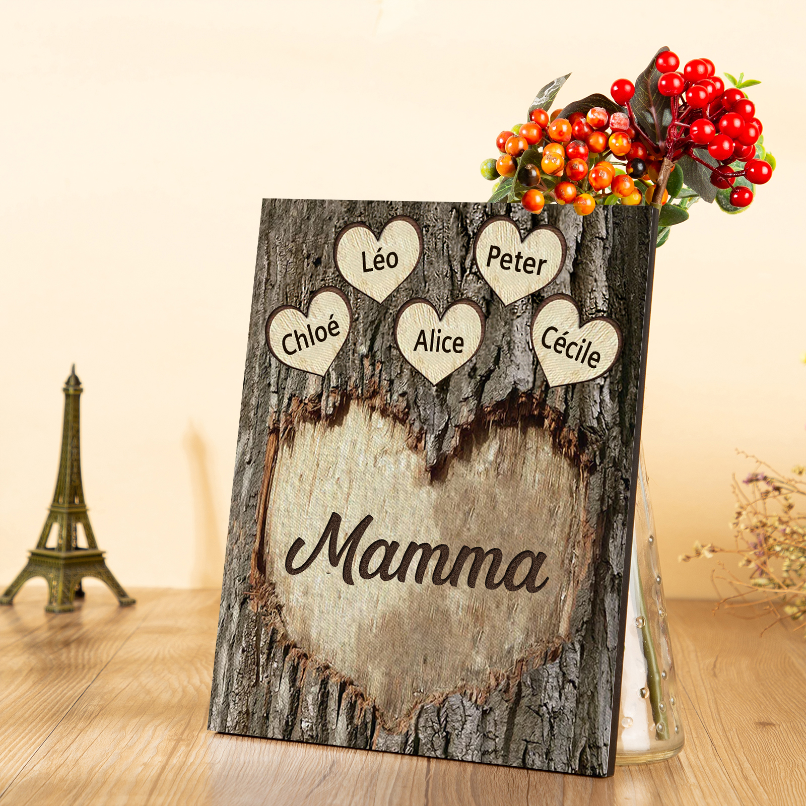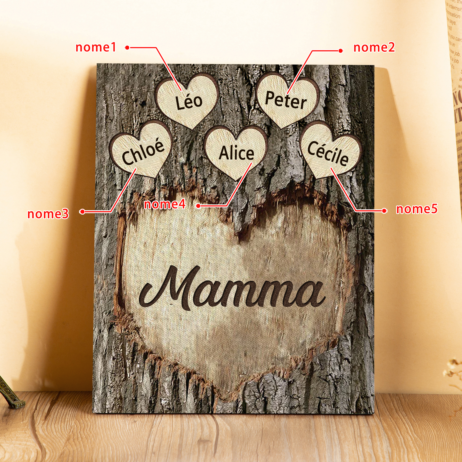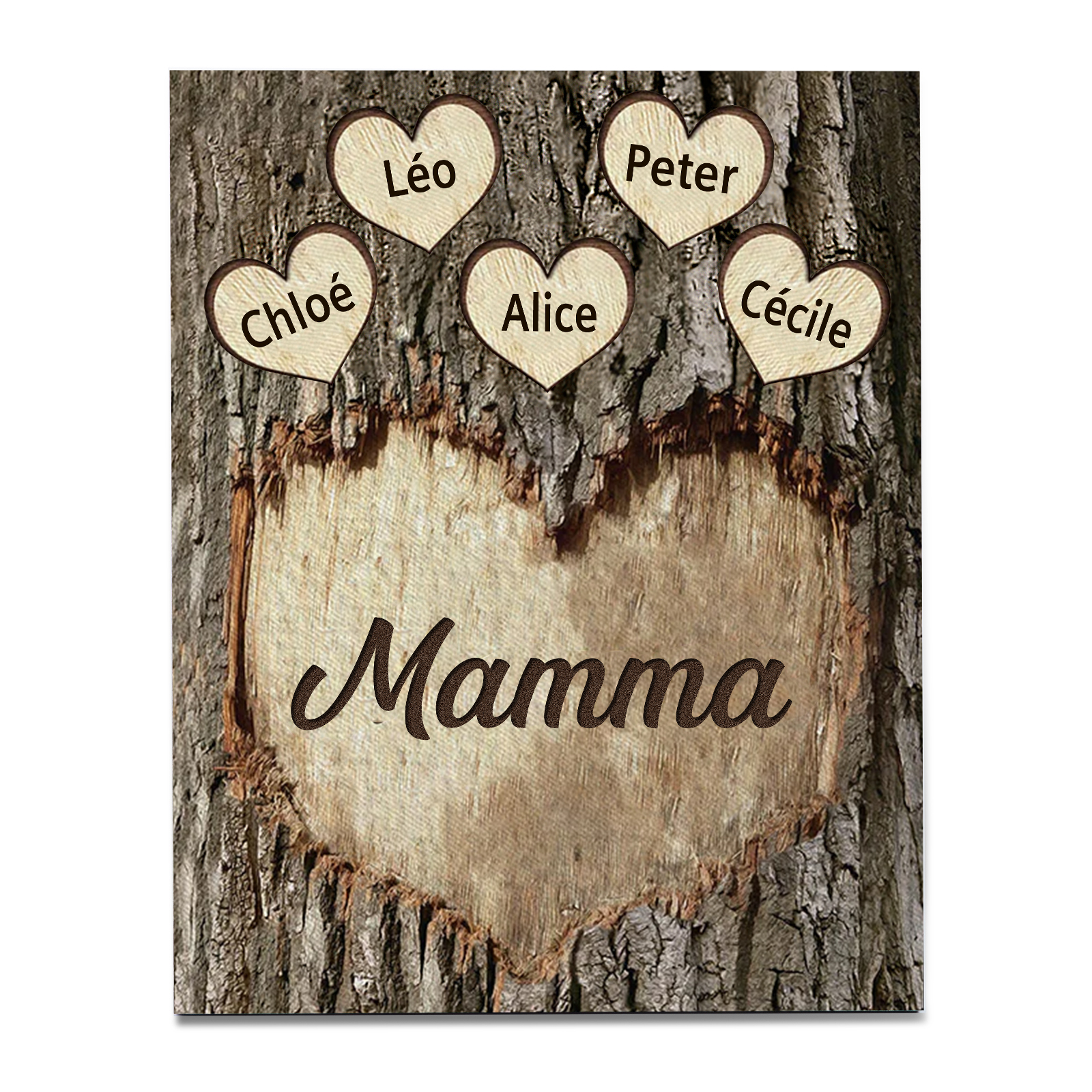 Targa di Legno cuore Per mamma 5 nomi Personalizzabili regalo per la festa della mamma