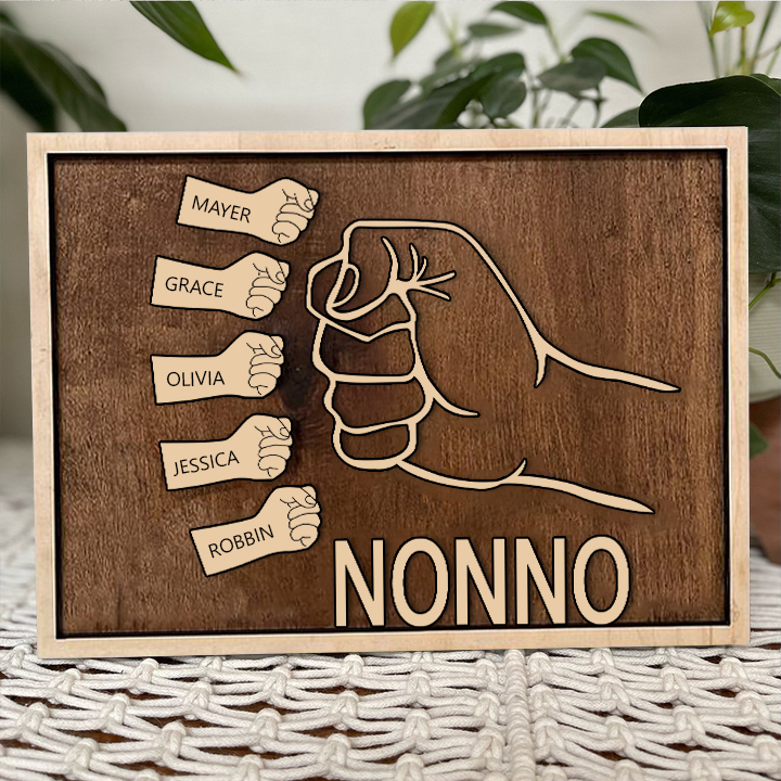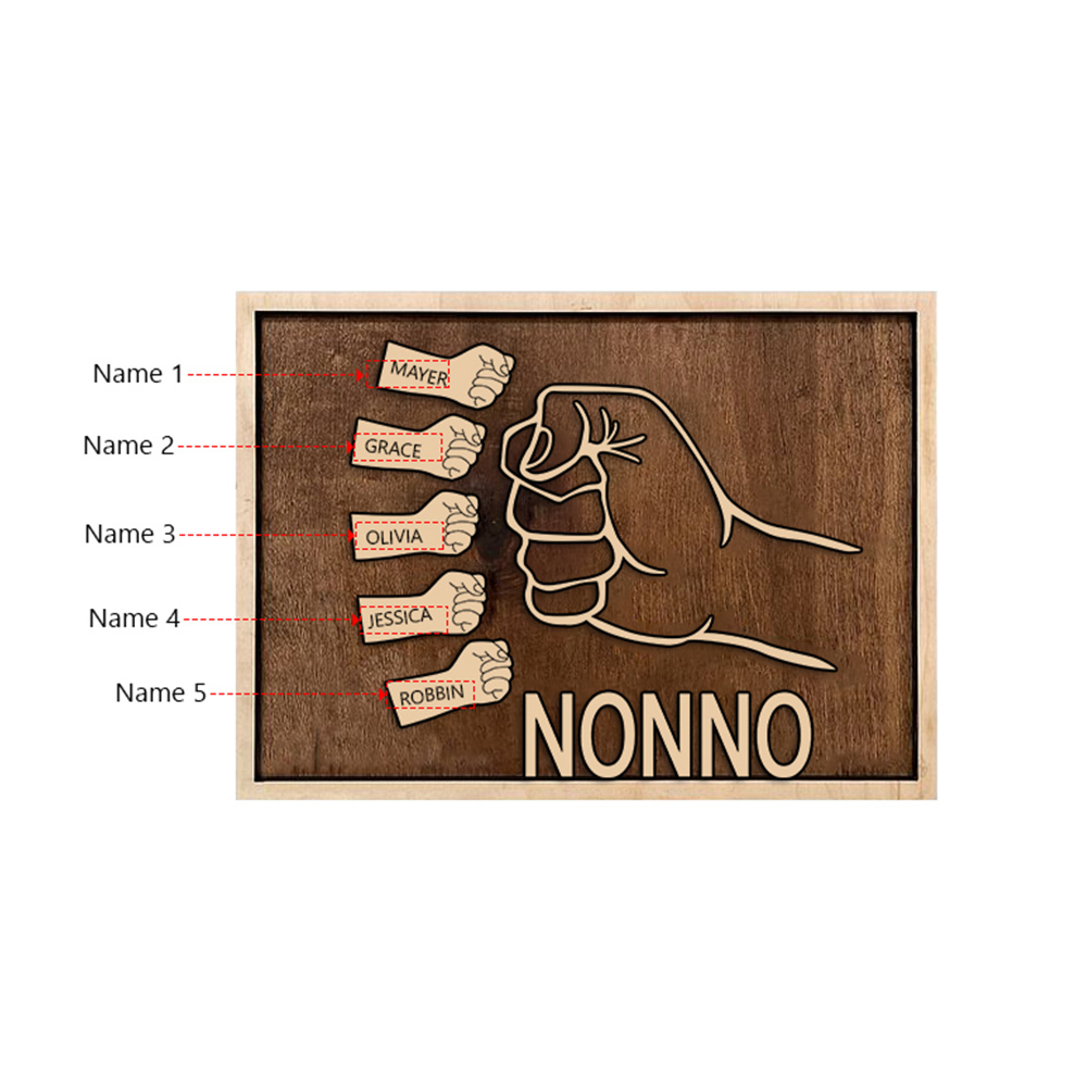 Targa di legno mano a mano 5 nomi personalizzabile regalo per nonno