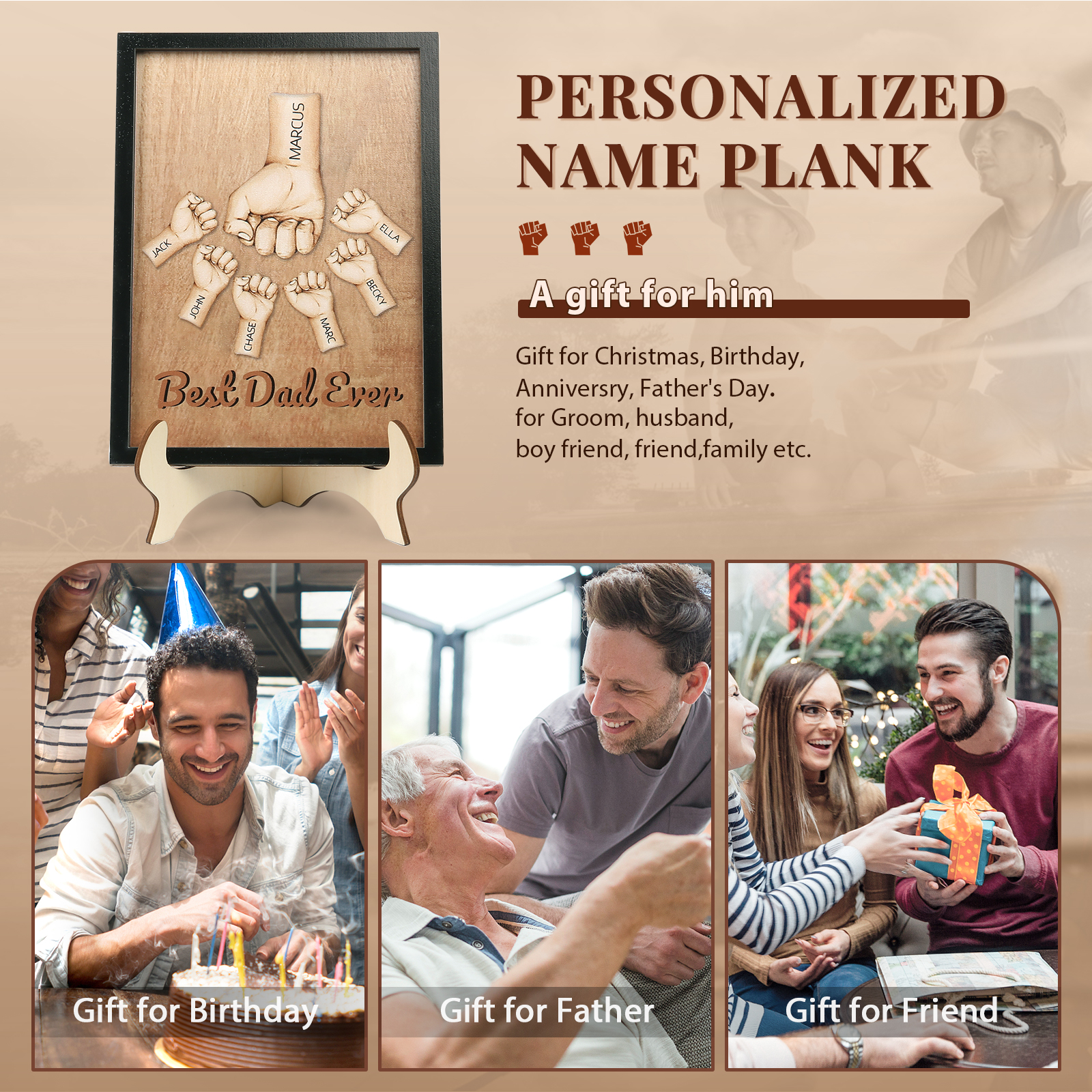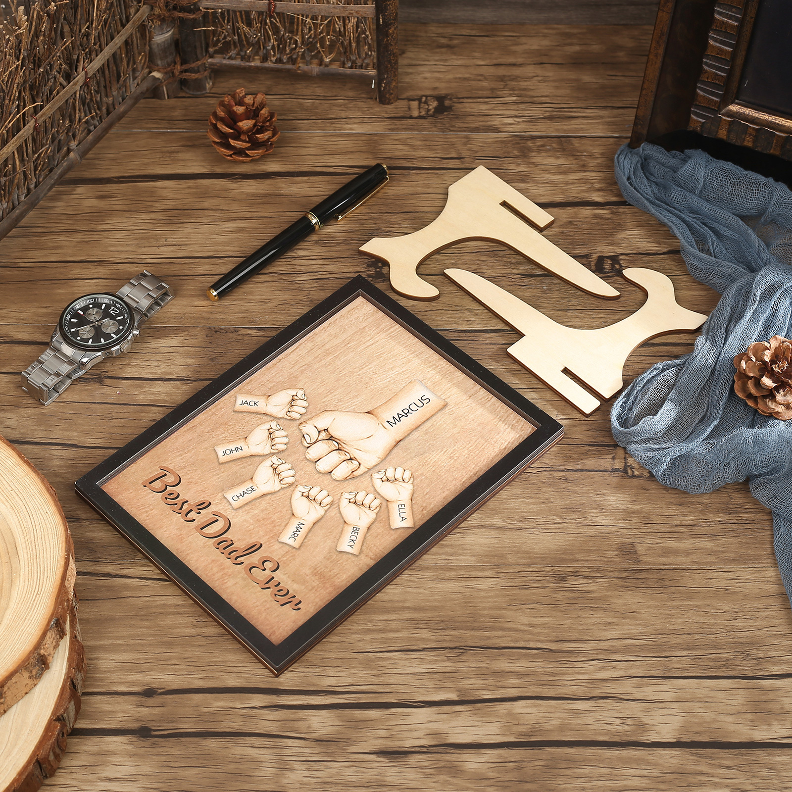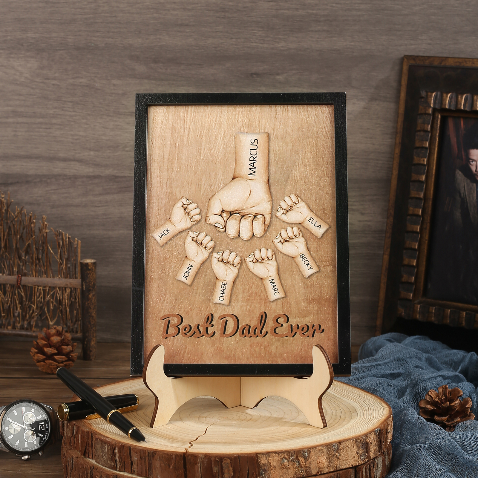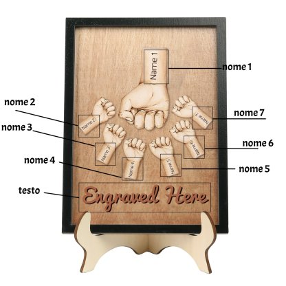 Targa di Legno pugno a pugno 7 nomi e 1 testo personalizzati regalo Per papà