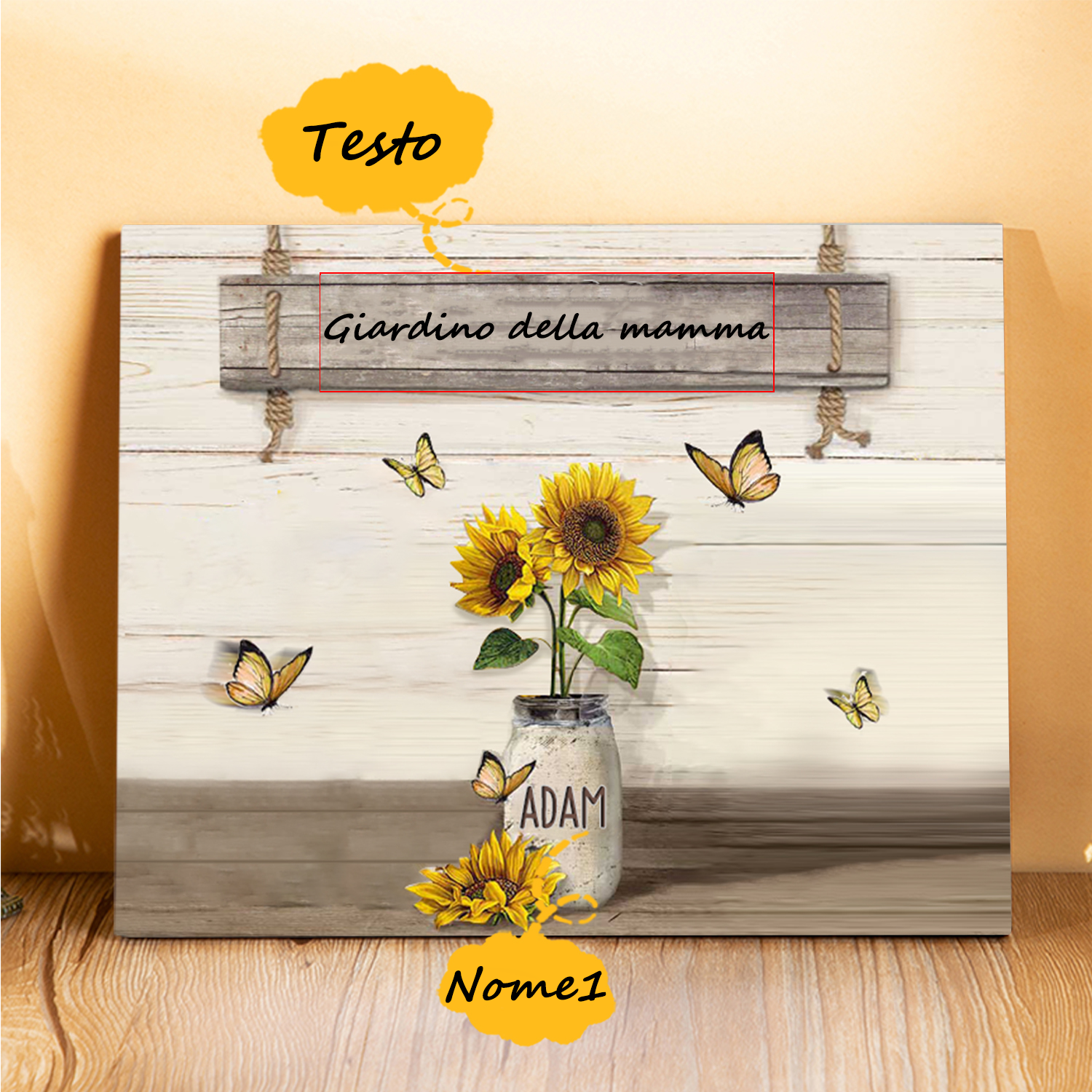 Targa in legno girasole 1 nome e 1 testo personalizzati regalo Per mamma