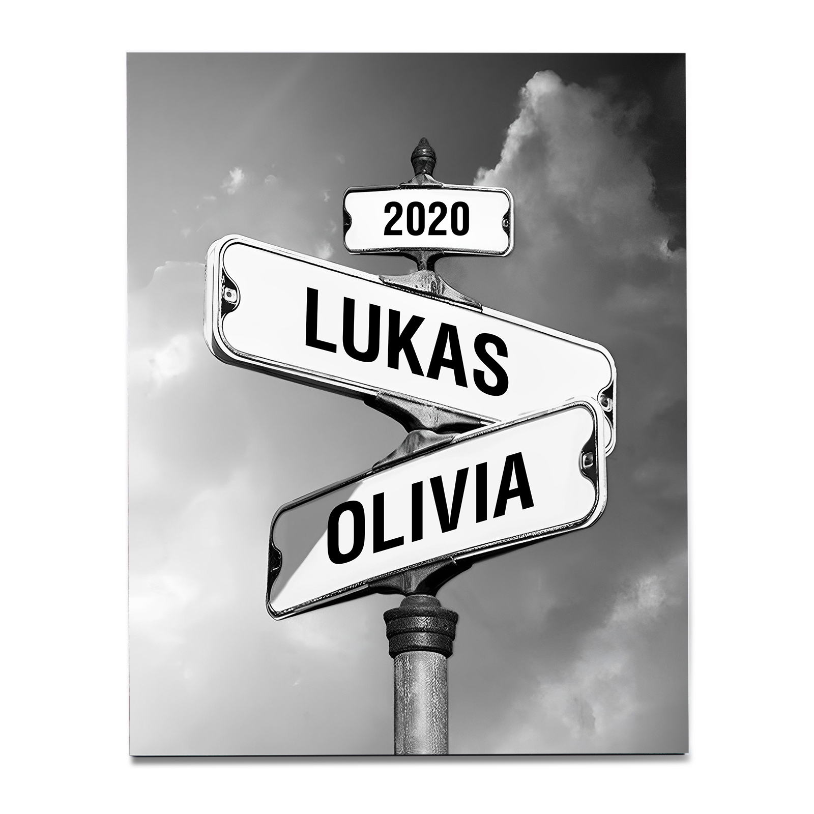 Targa in legno Segnastrada con 2 nomi e 1 anno personalizzati regalo per coppia