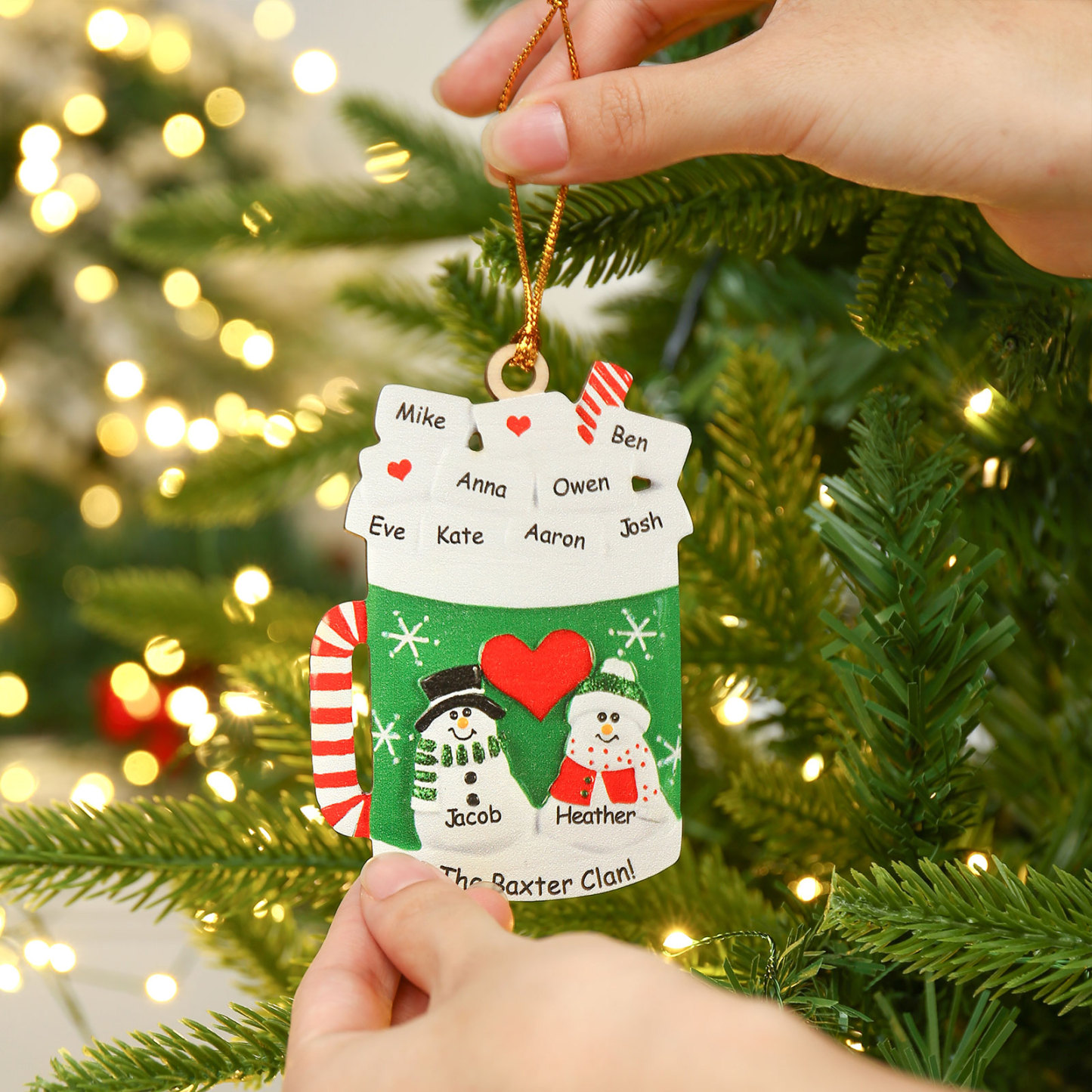 Tazza familiare-Decorazione di legno natalizia 10 nomi personalizzabili