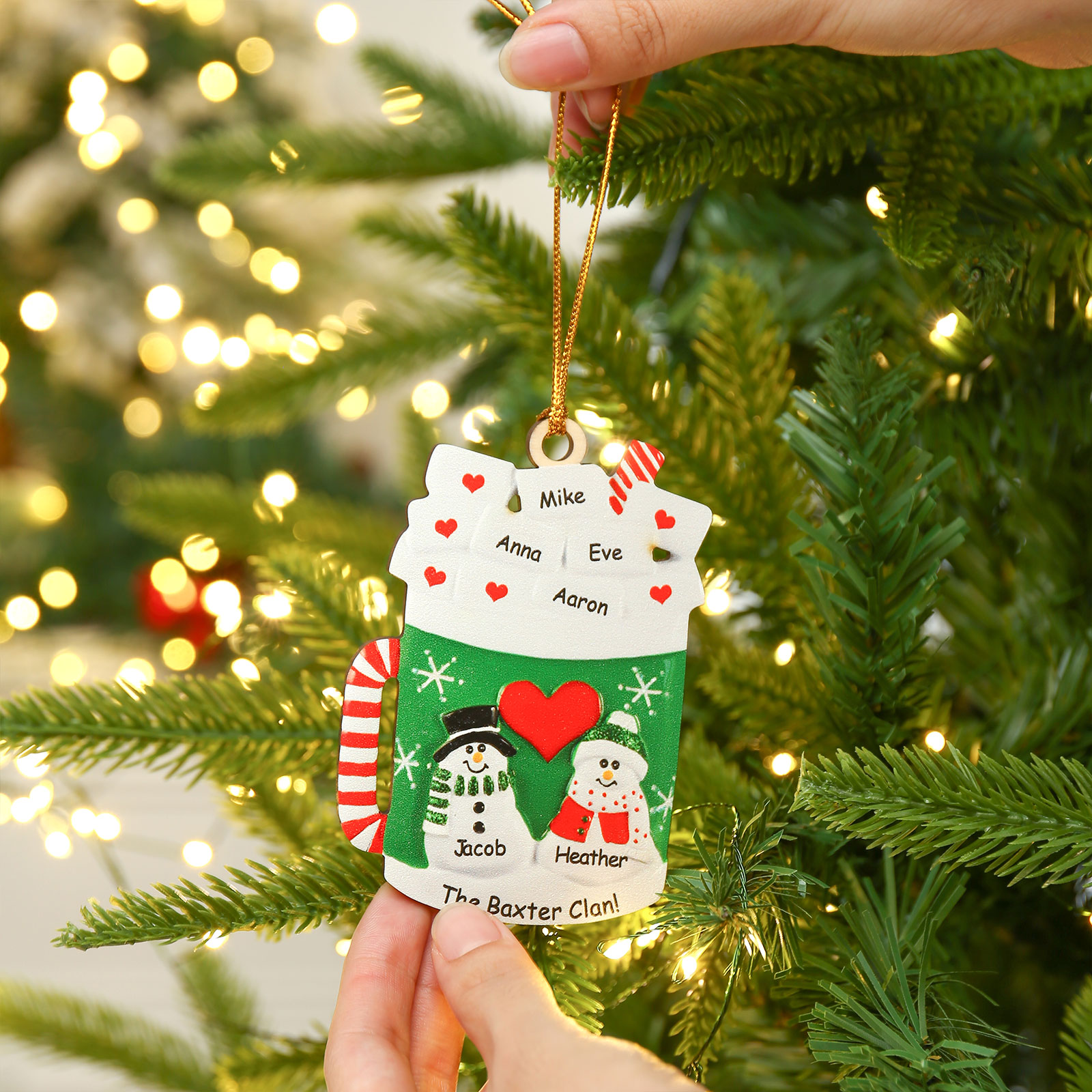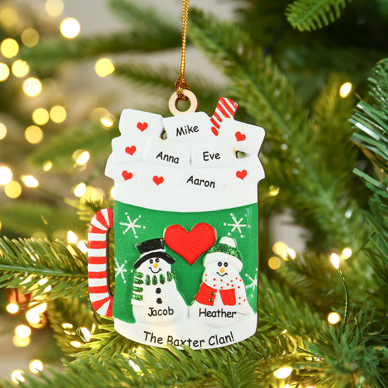 Tazza familiare-Decorazione di legno natalizia 6 nomi personalizzabili