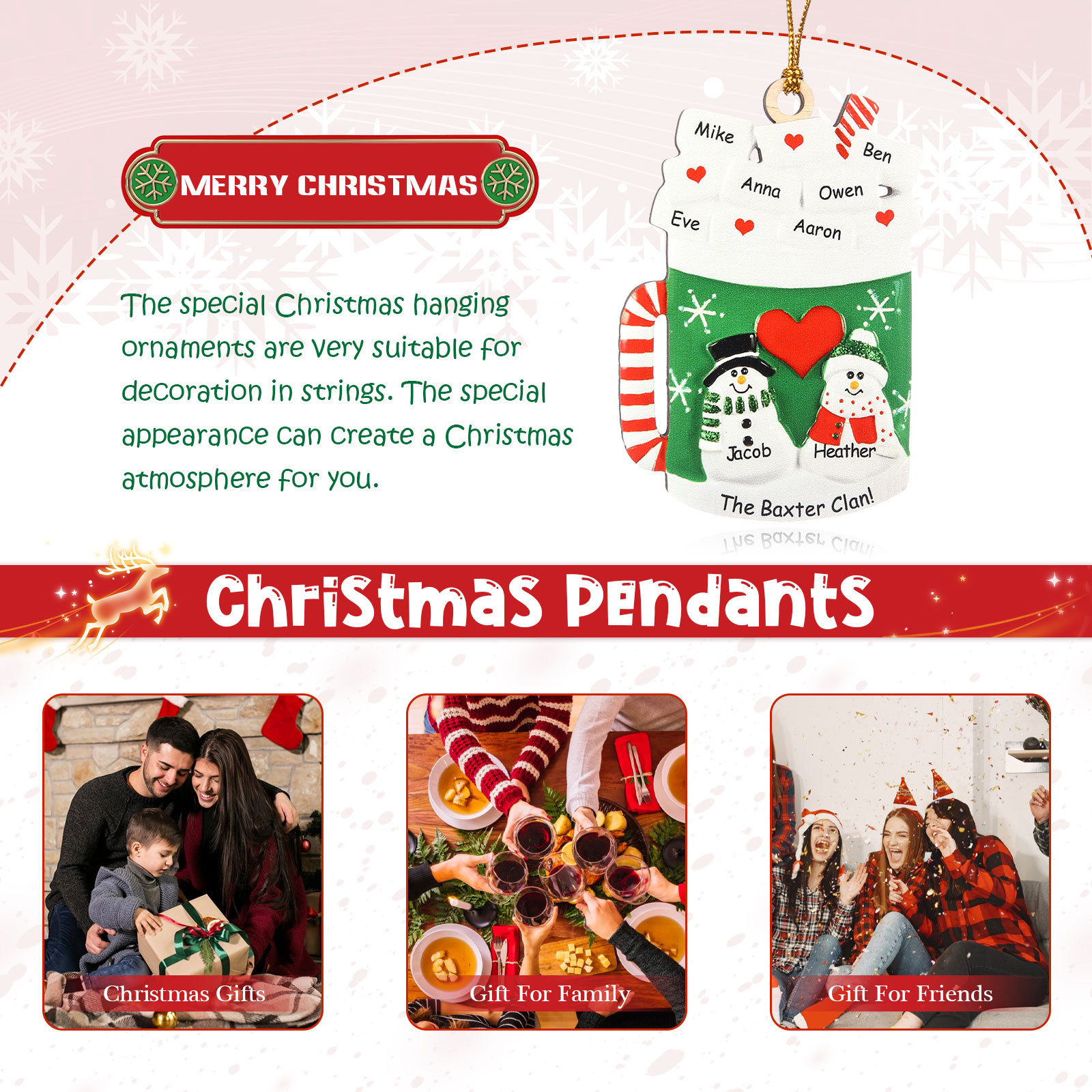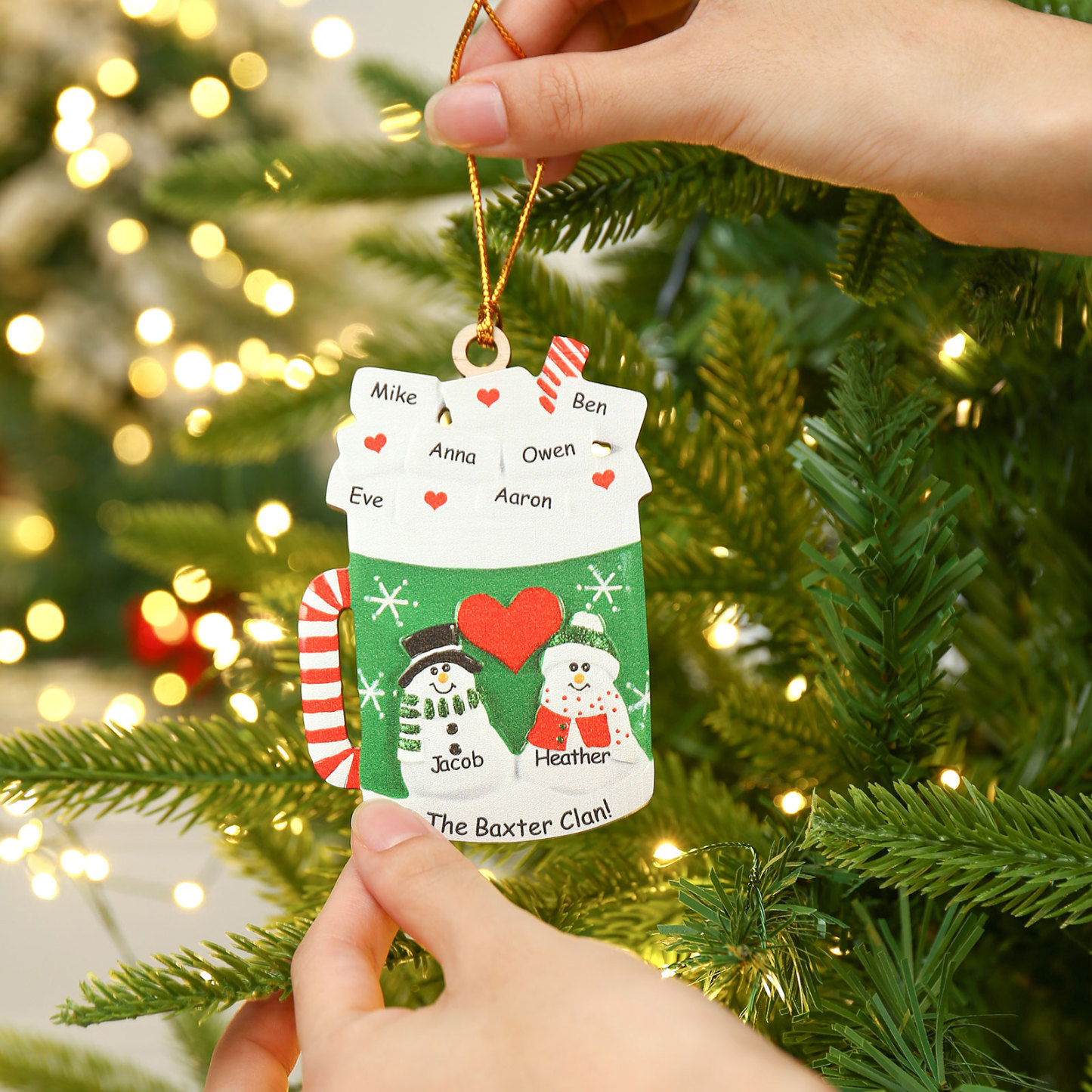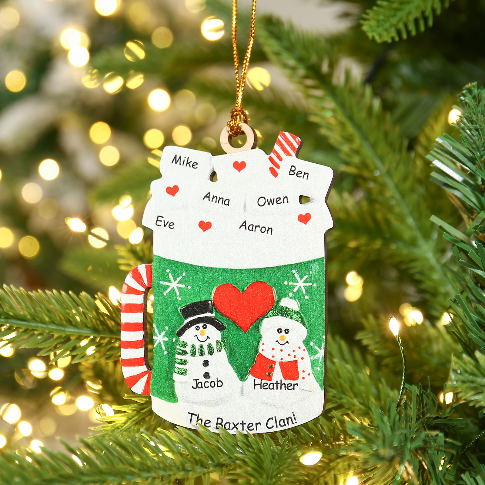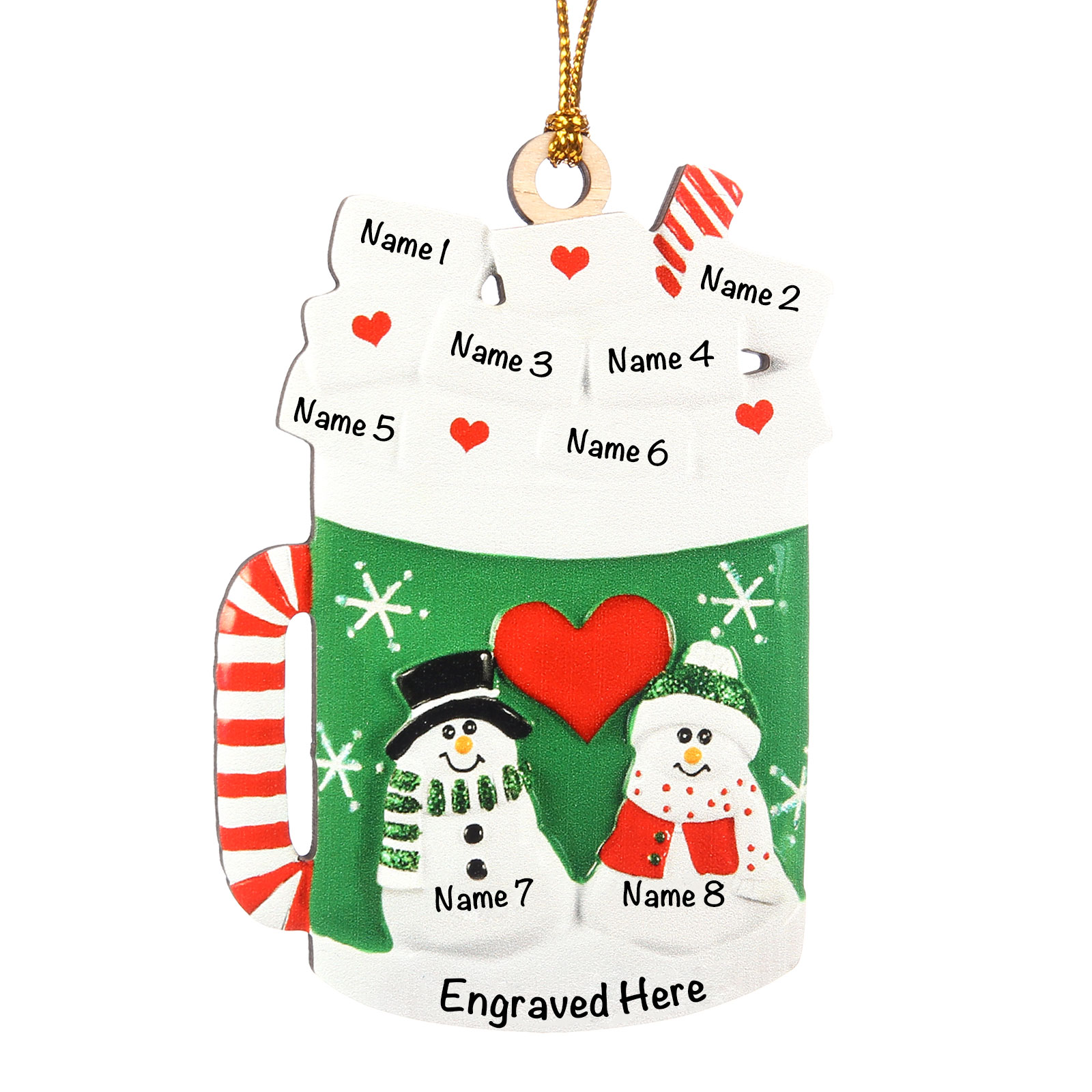 Tazza familiare-Decorazione di legno natalizia 8 nomi personalizzabili