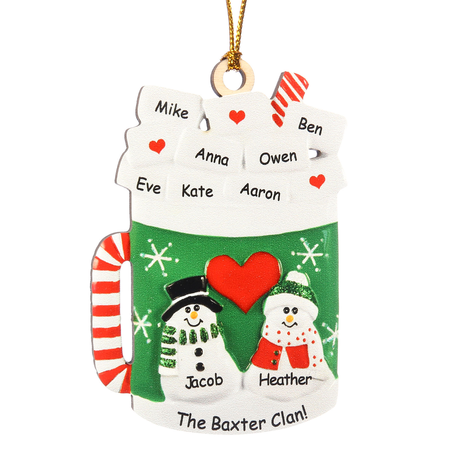 Tazza familiare-Decorazione di legno natalizia 9 nomi personalizzabili