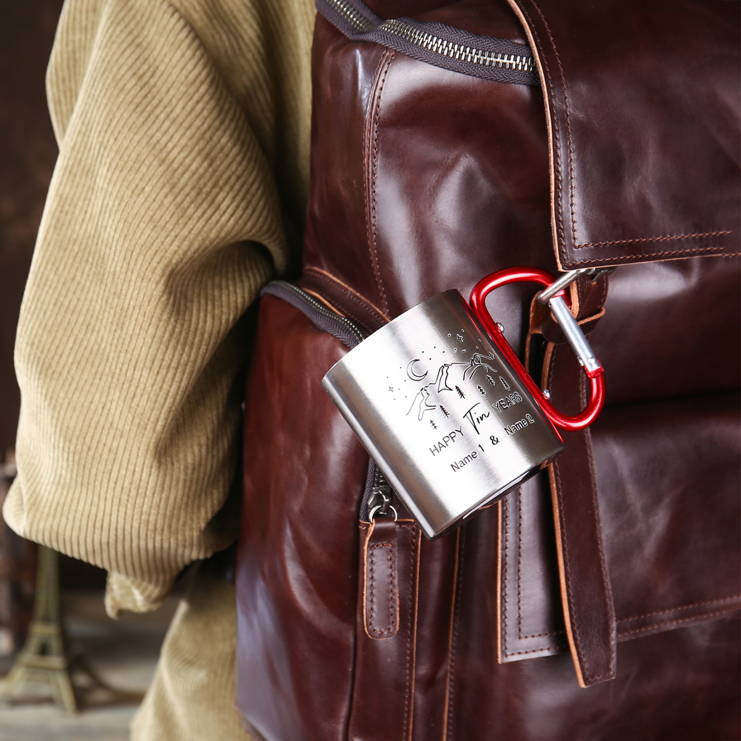 Tazzina acciaio inox per appassionato di escursionismo 2 nomi personalizzabili