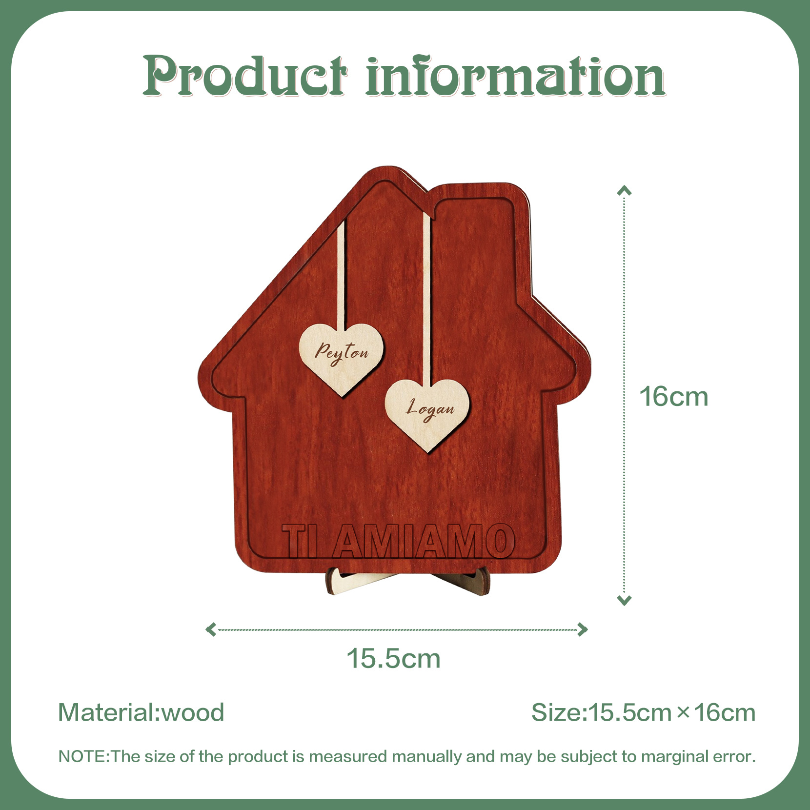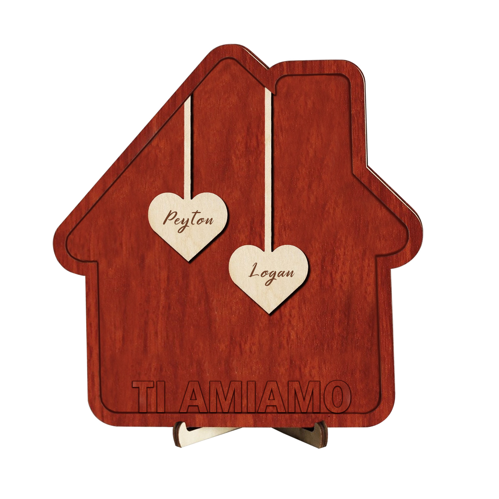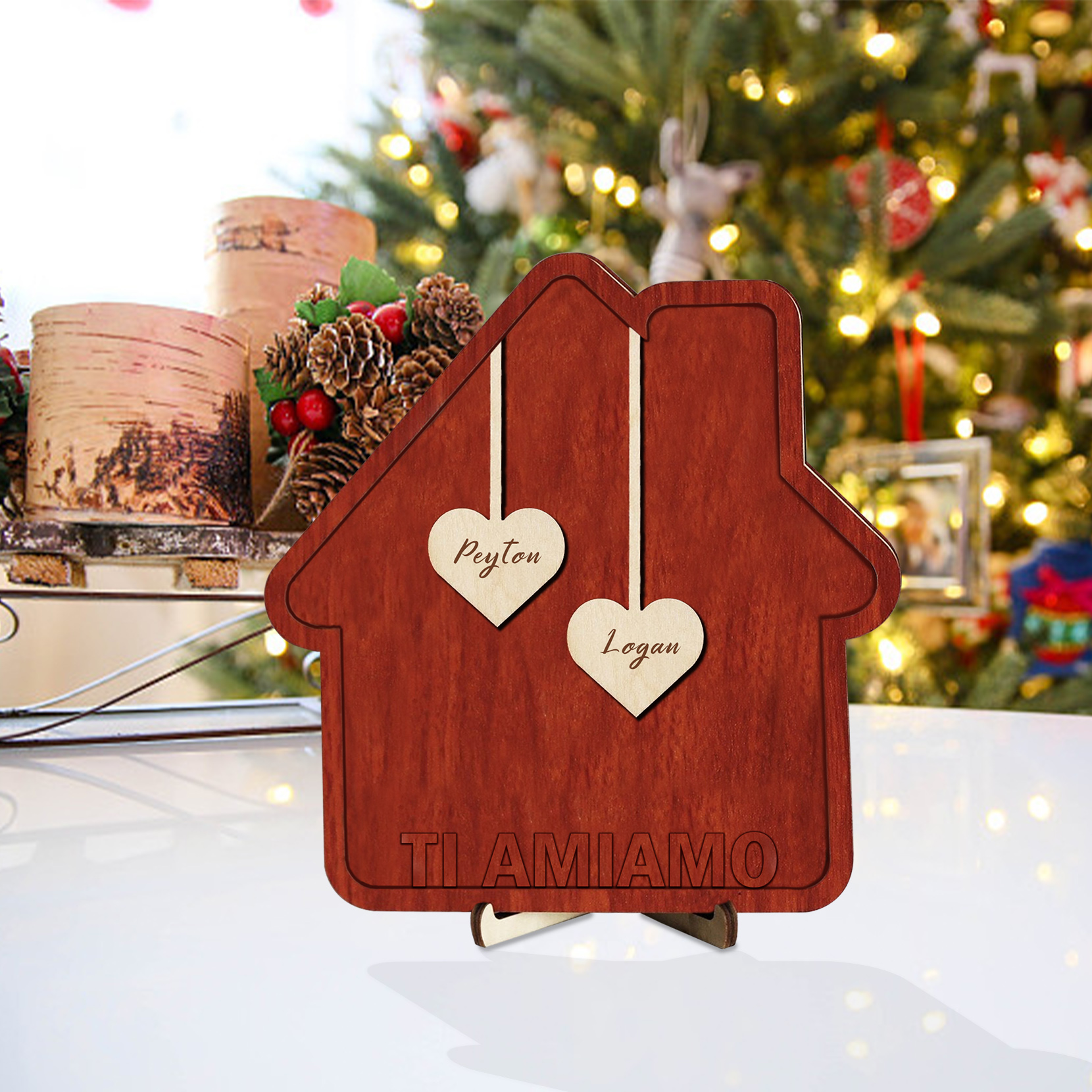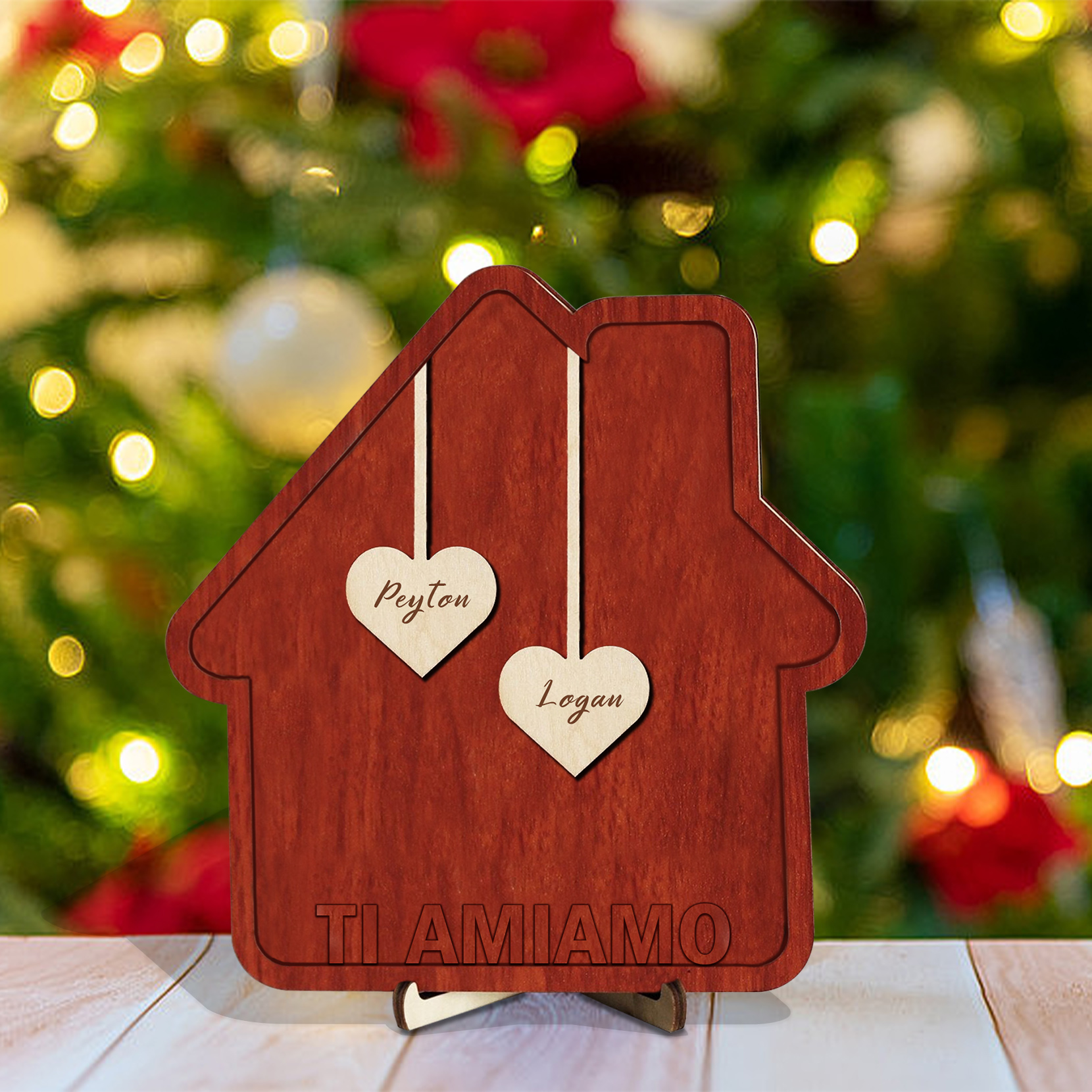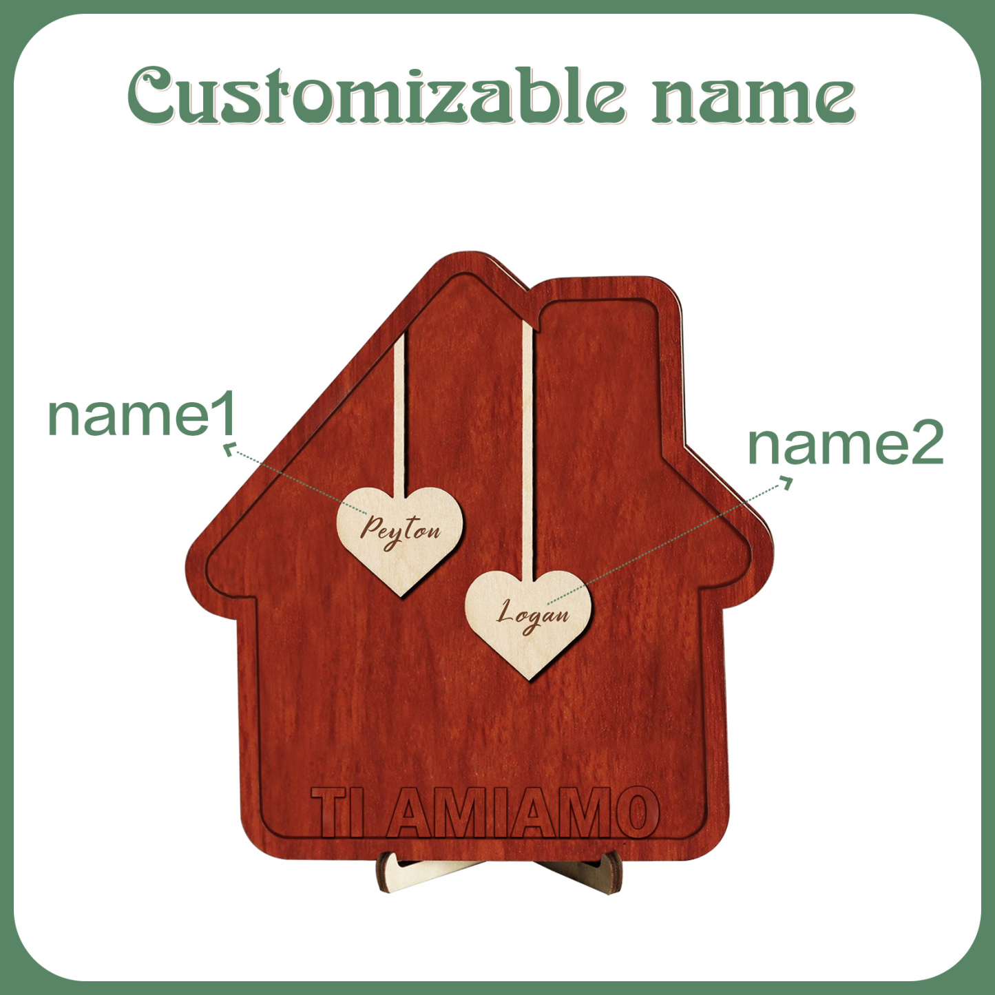 🏡❤️Ti Amiamo con tutti i nostri cuori-decorazione di legno 2 nomi personalizzabili regalo famiglia
