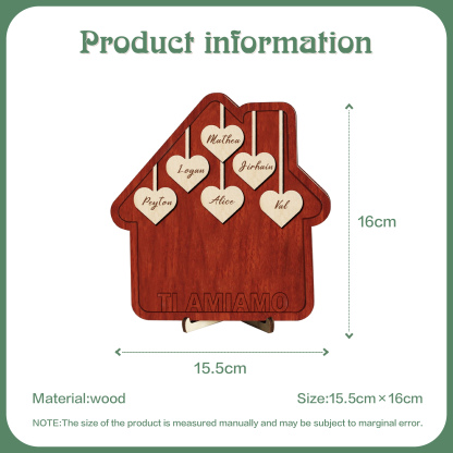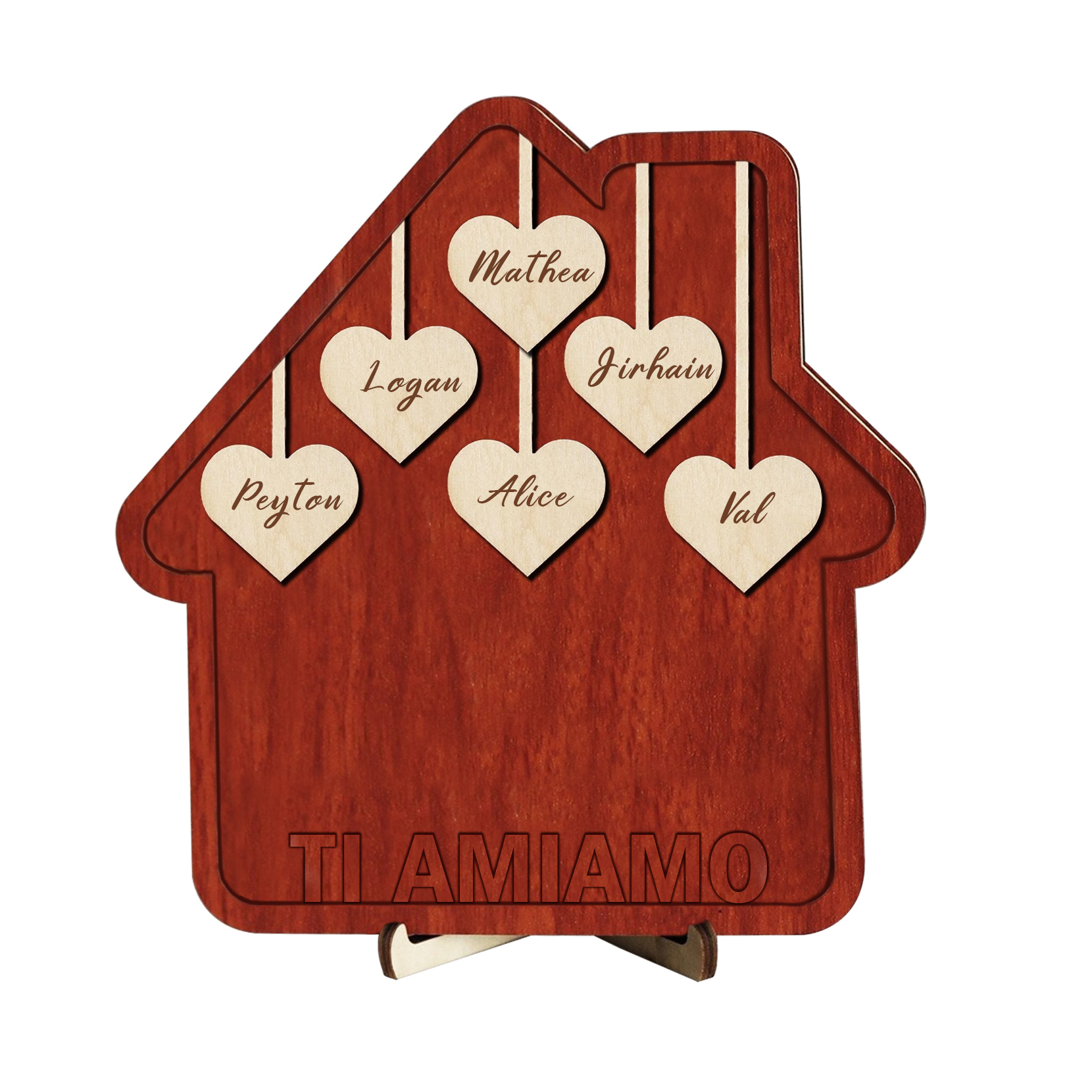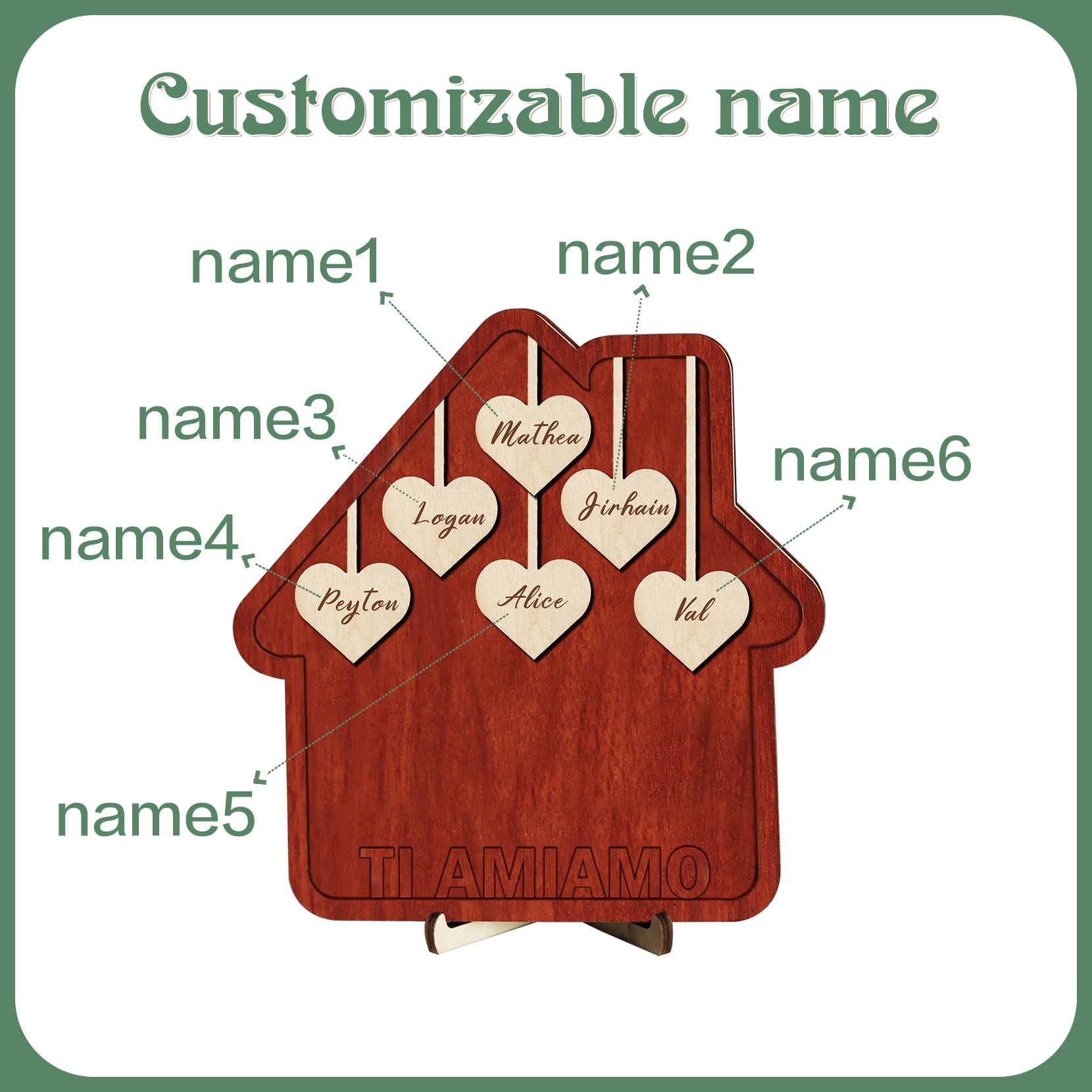 🏡❤️Ti Amiamo con tutti i nostri cuori-decorazione di legno 6 nomi personalizzabili regalo famiglia