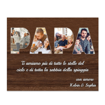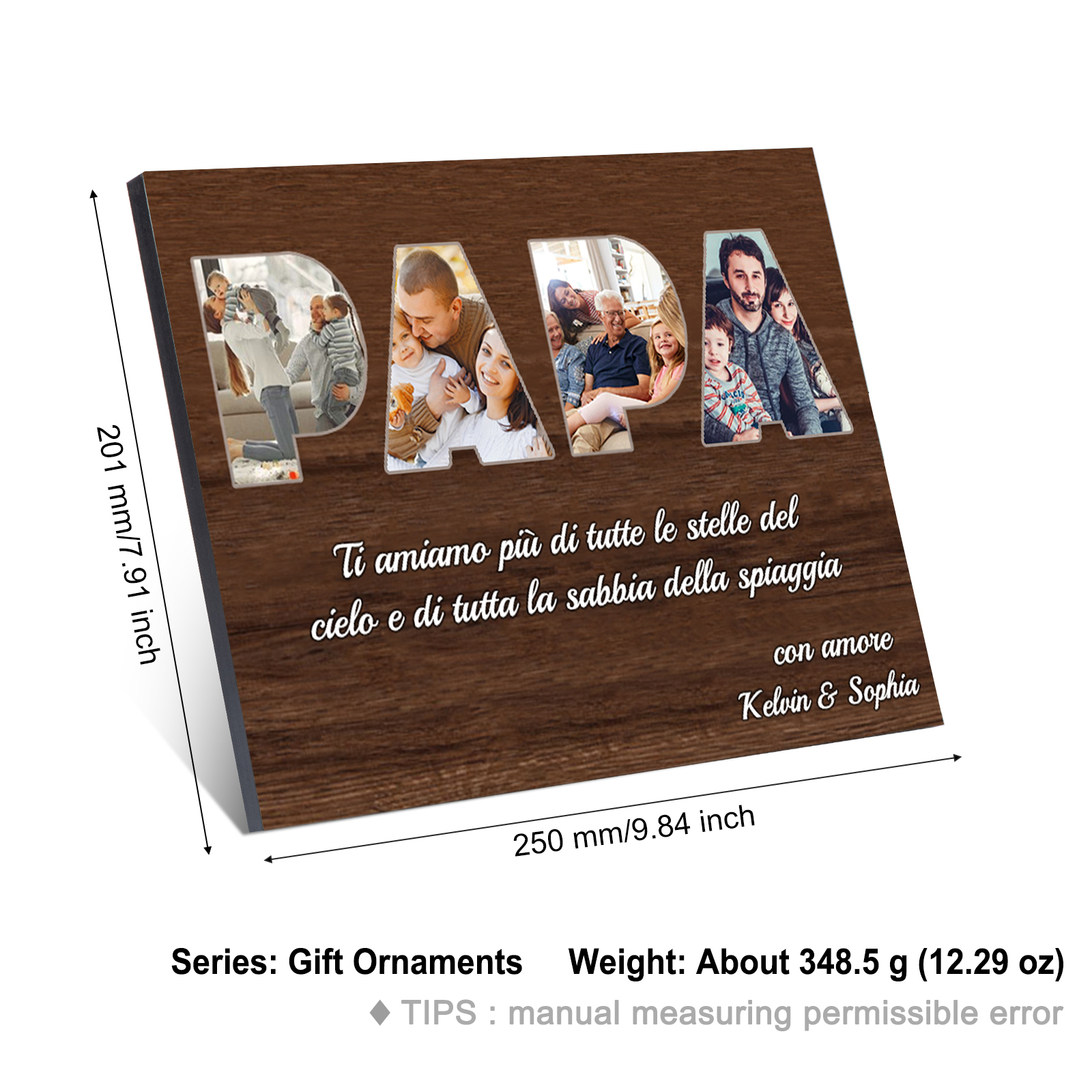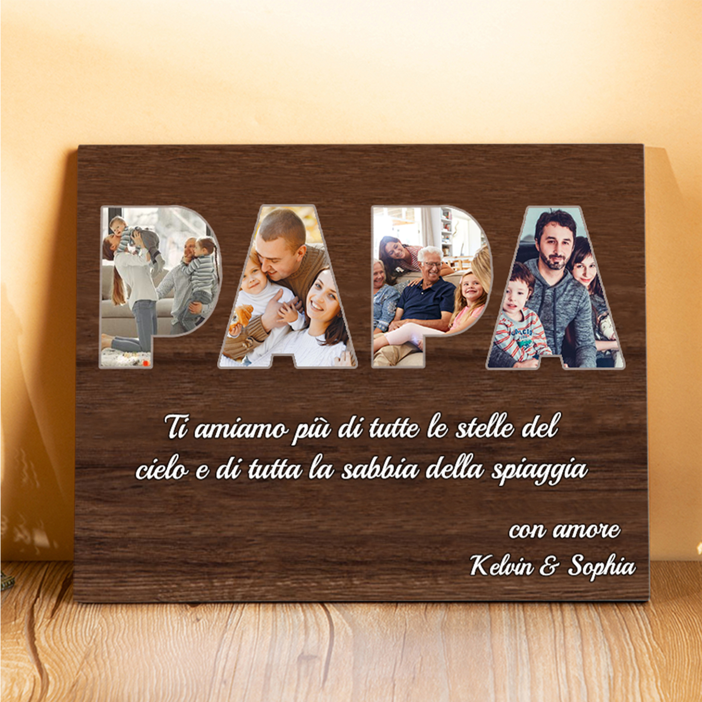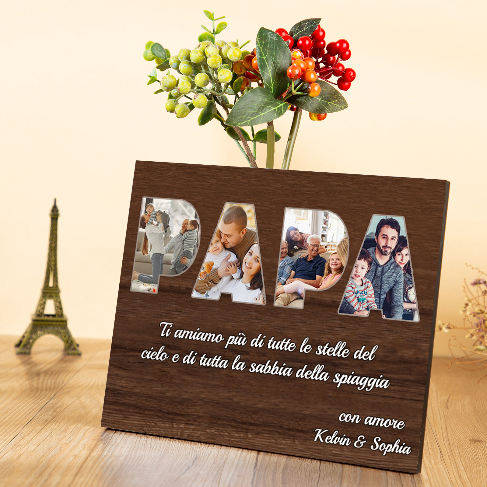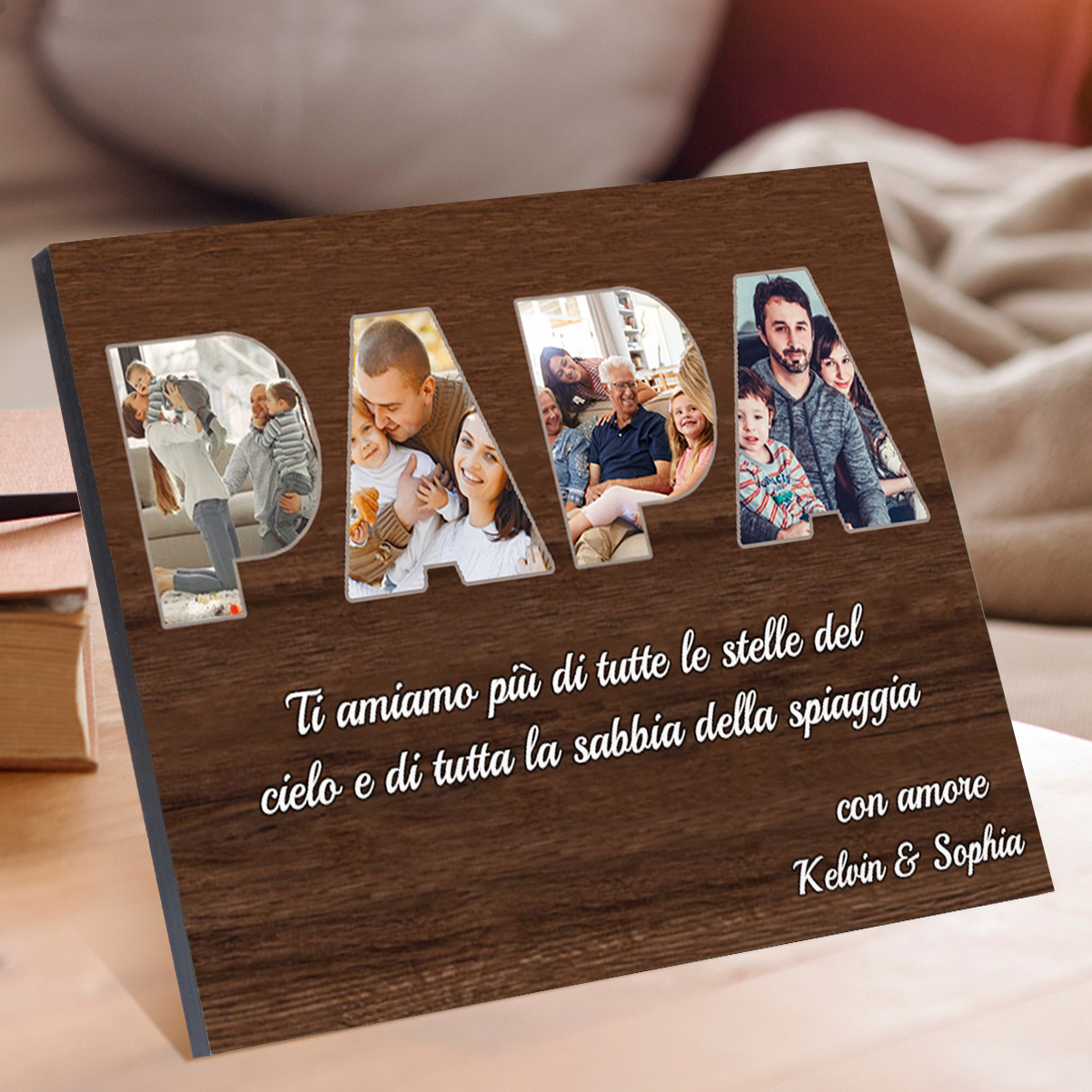 Ti amiamo più di tutte le stelle del cielo-Targa di Legno Per papà 4 foto e 2 nomi personalizzati