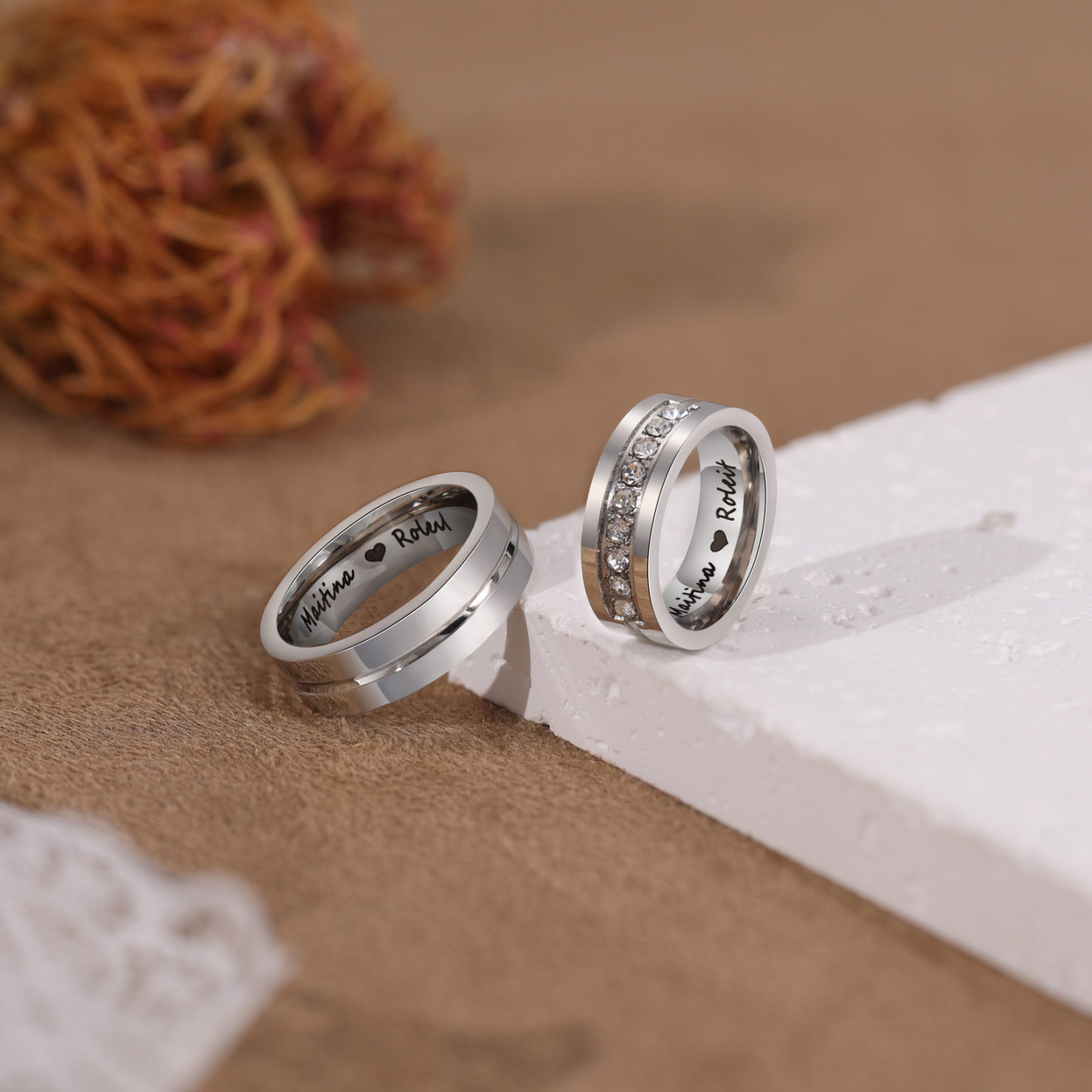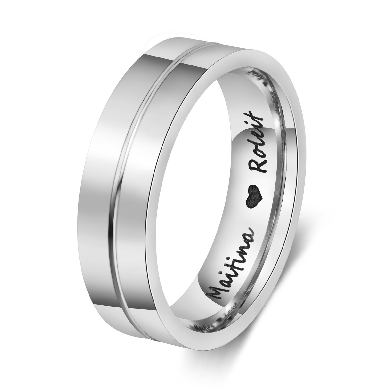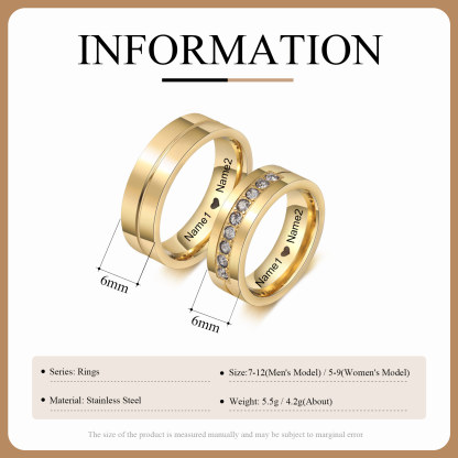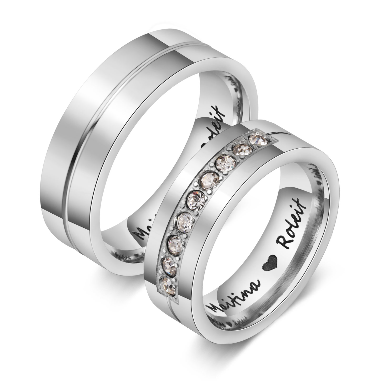 Ti Amo Alice & Luca-Anello inox con gemma 2 nomi e testo personalizzabili per coppia