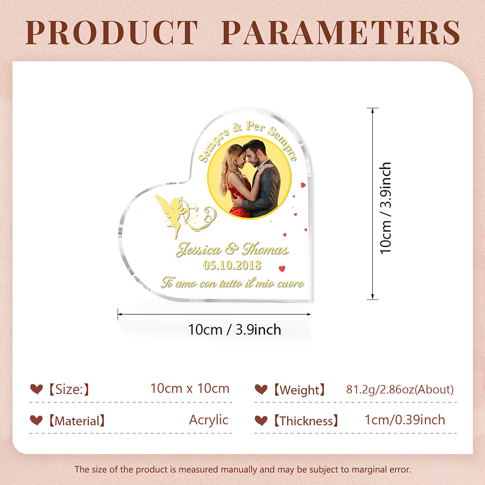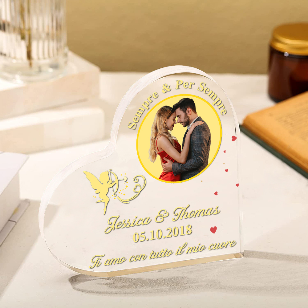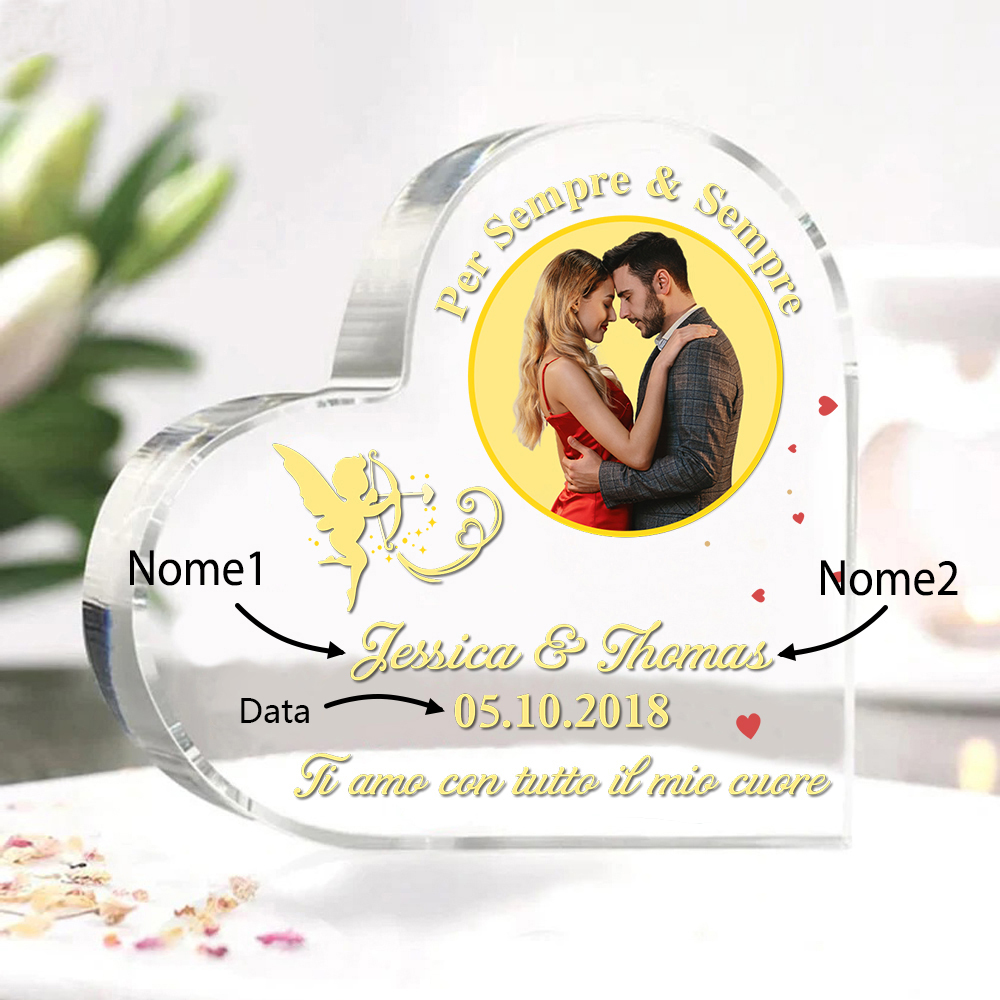 Ti amo con tutto il mio cuore-Deco acrilico cuore per coppia 2 nomi e 1 data personalizzabili
