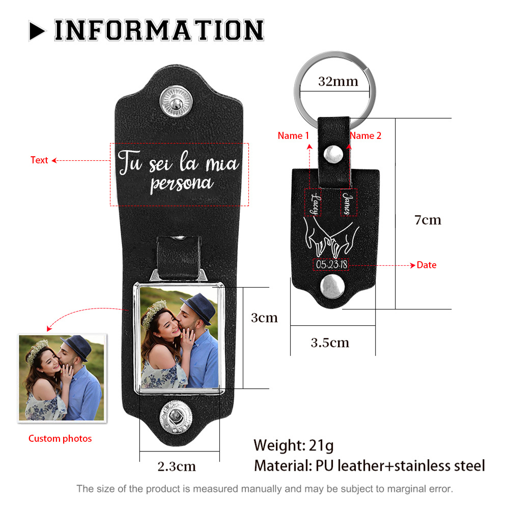 Tu sei la mia persona-Portachiavi pelle mano 2 nomi personalizzabili per coppia