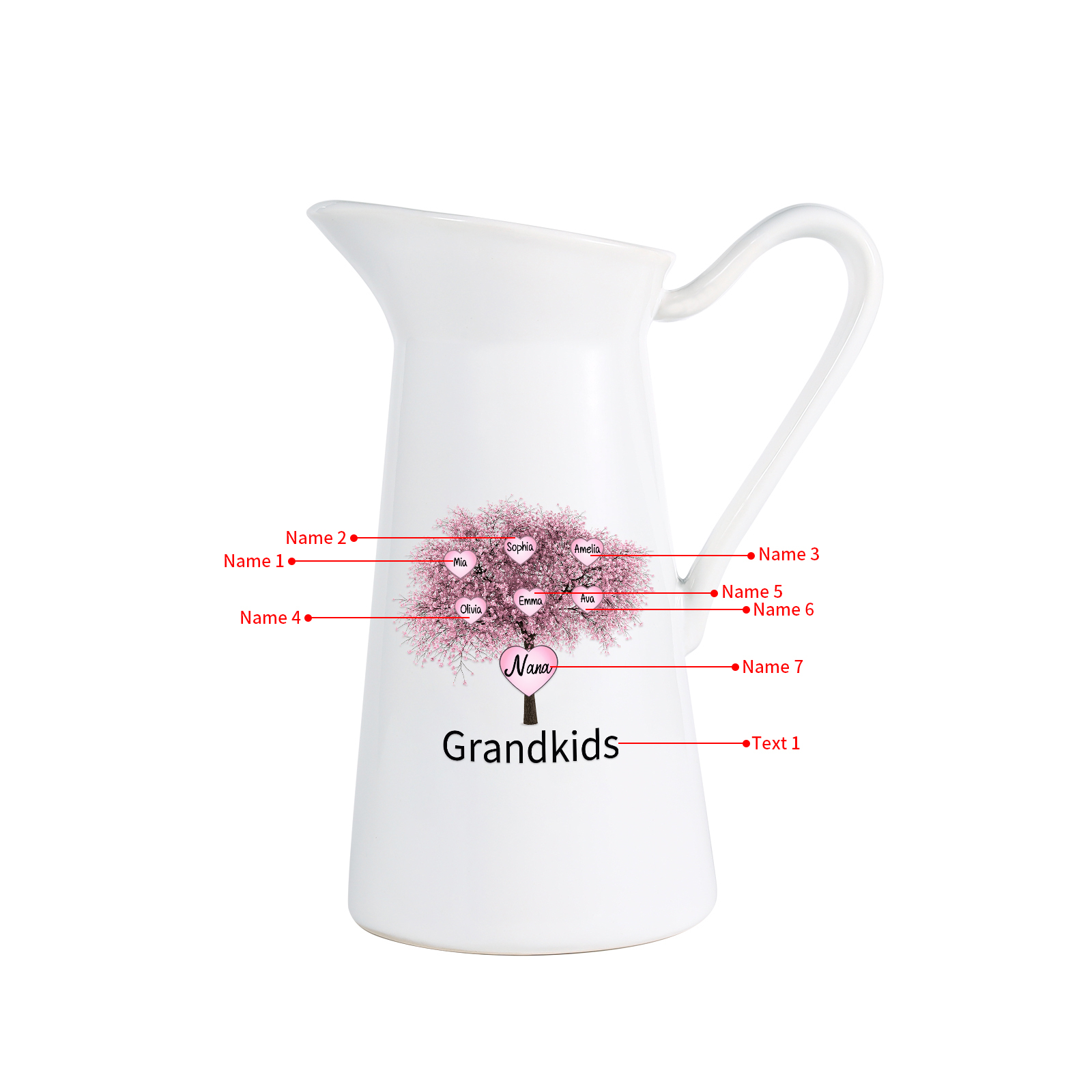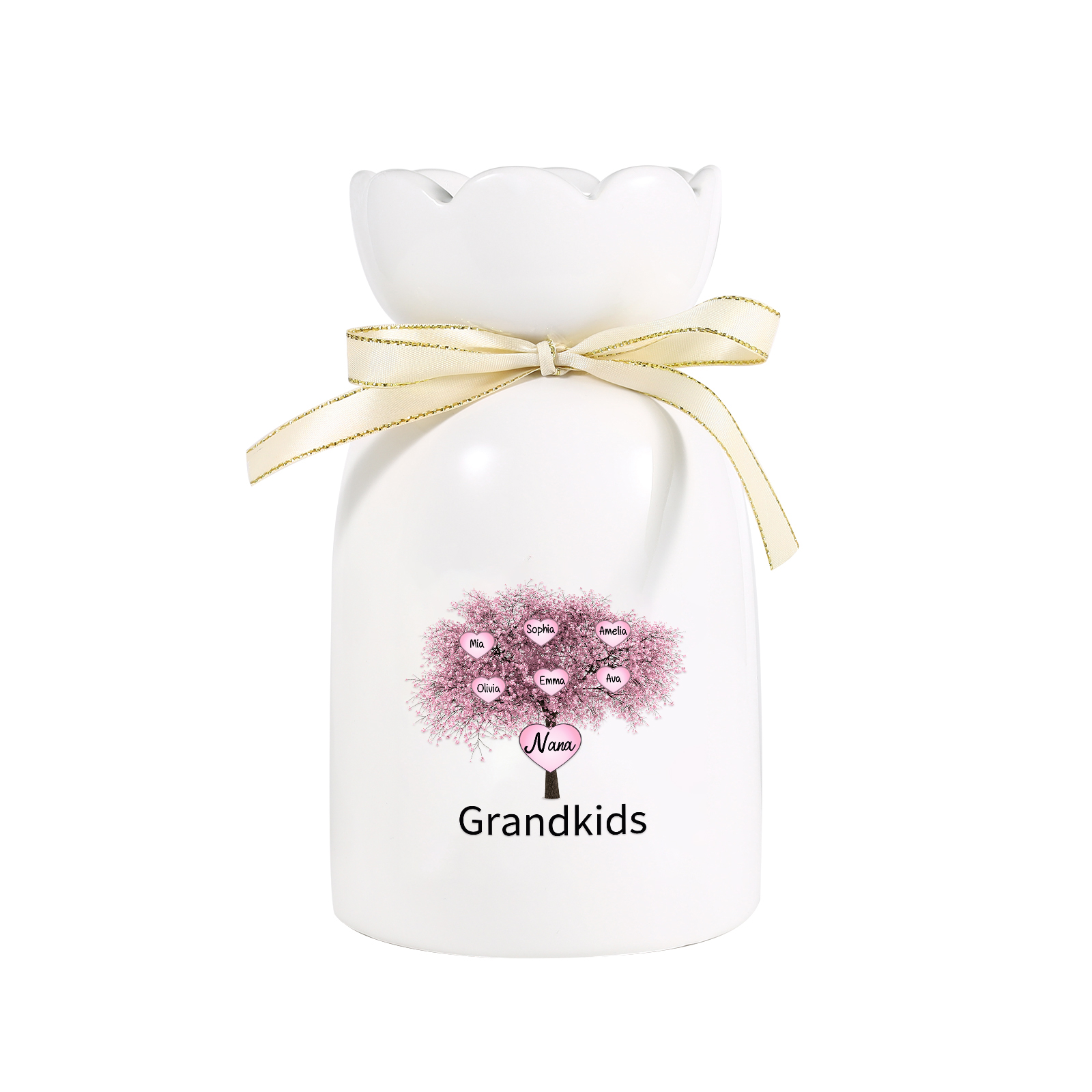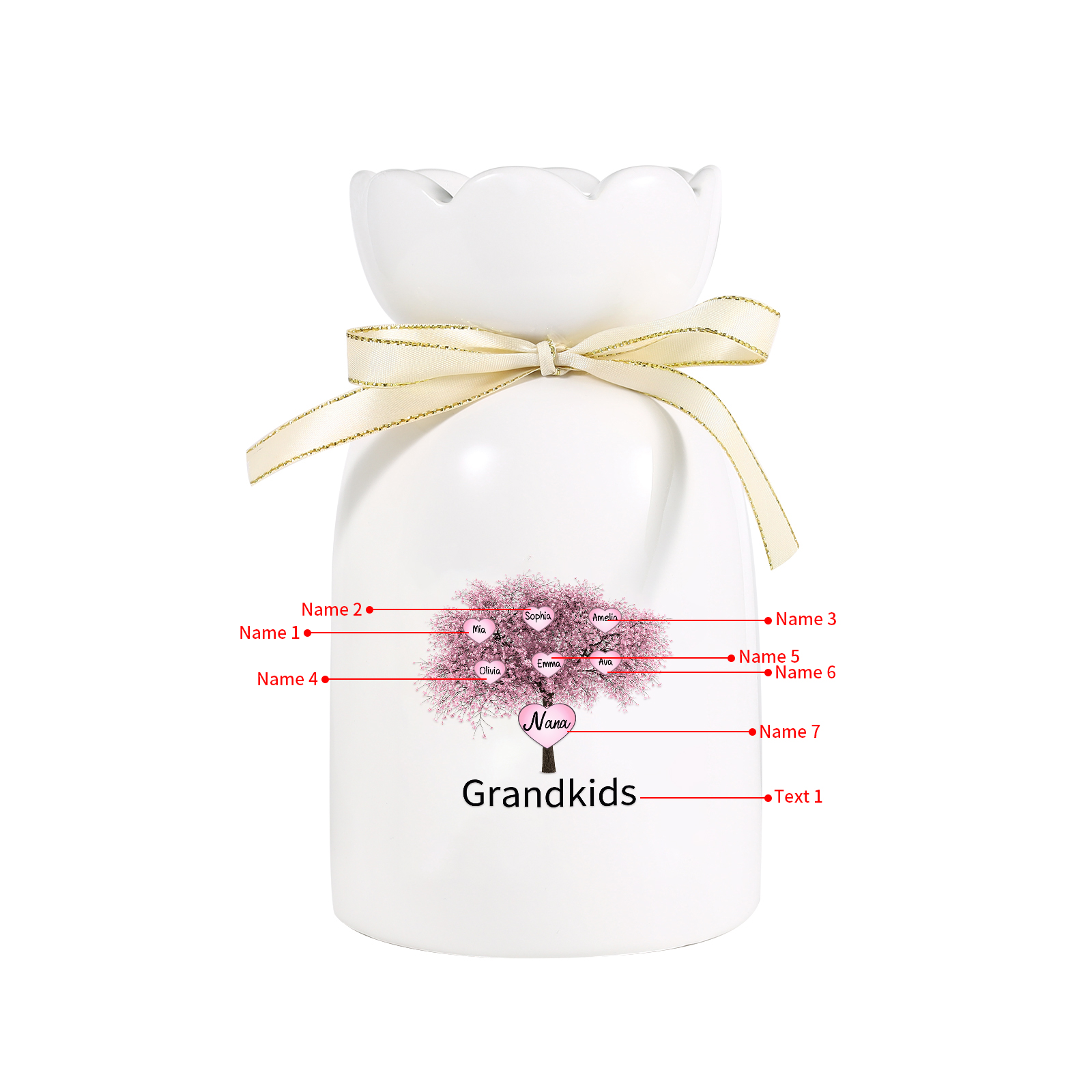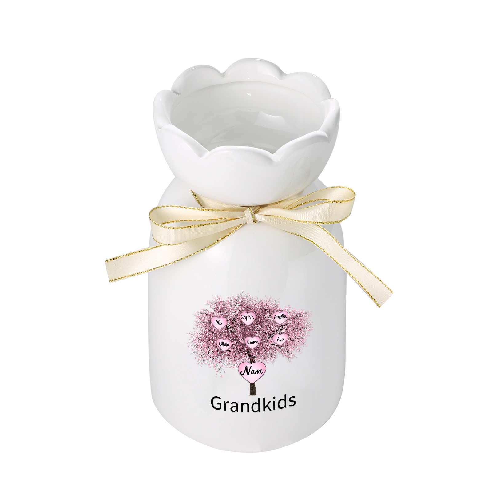Vaso di ceramica con albero di cuore rosa 7 nomi e 1 testo personalizzati per nonna/mamma