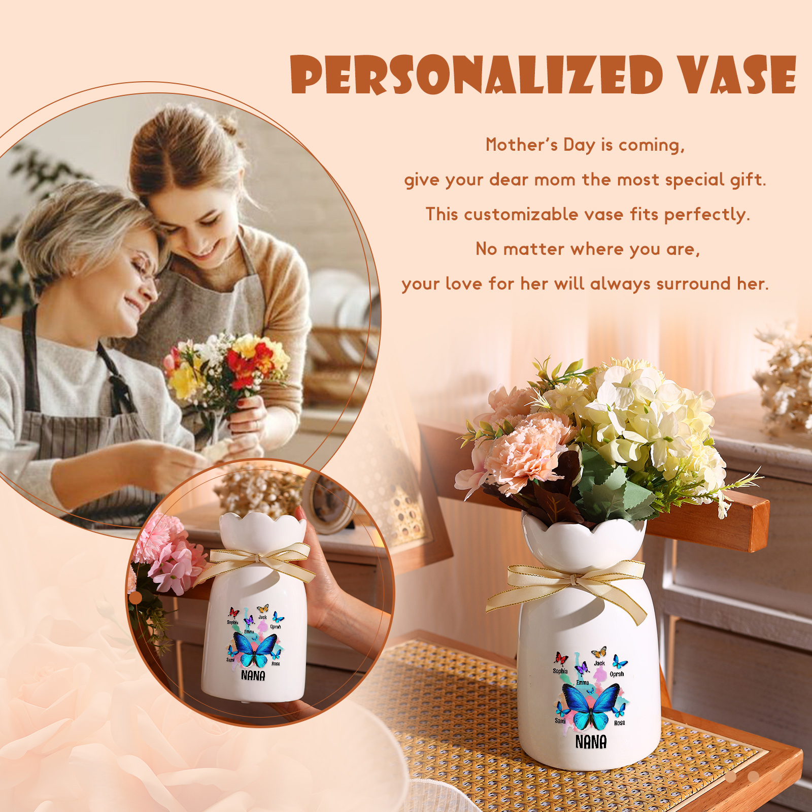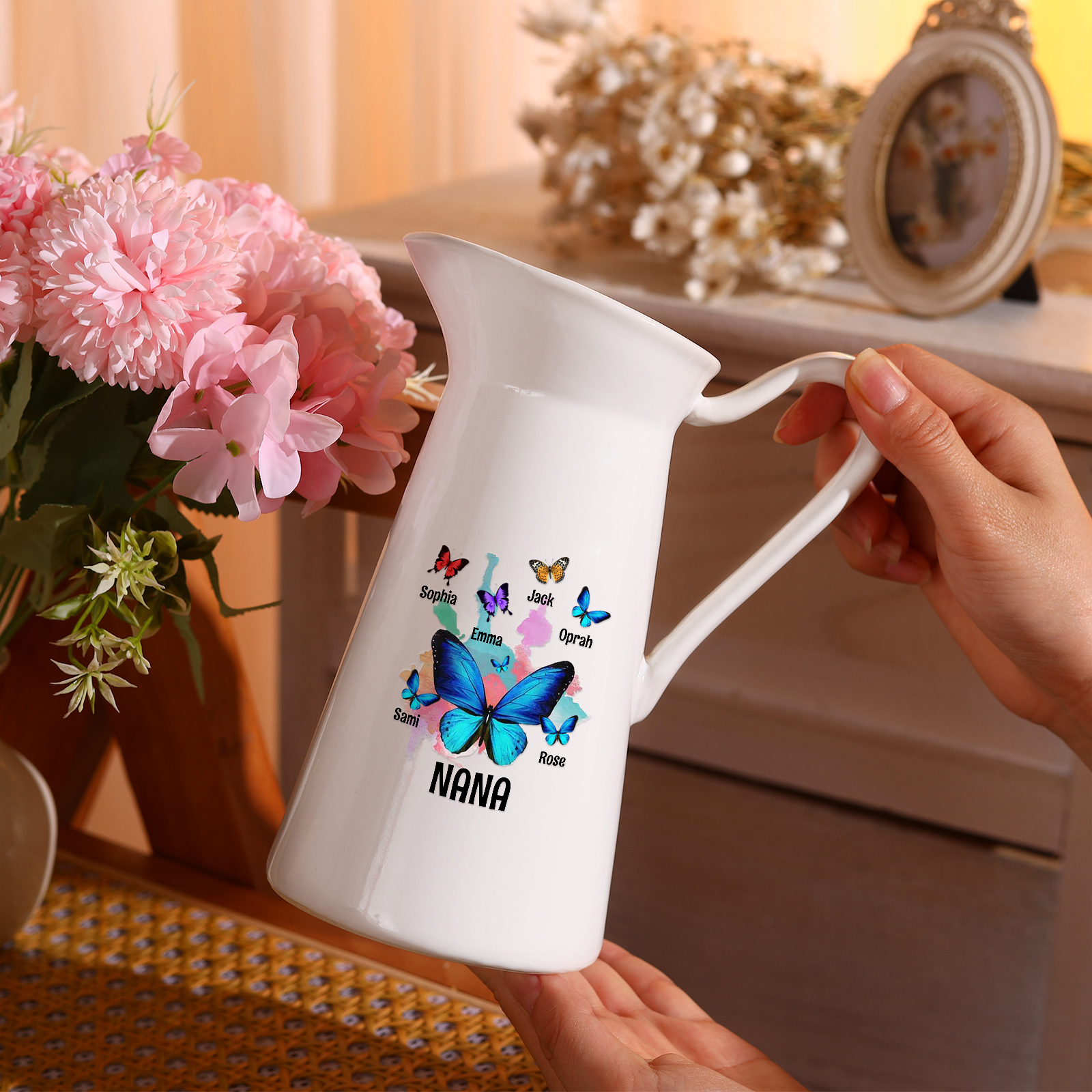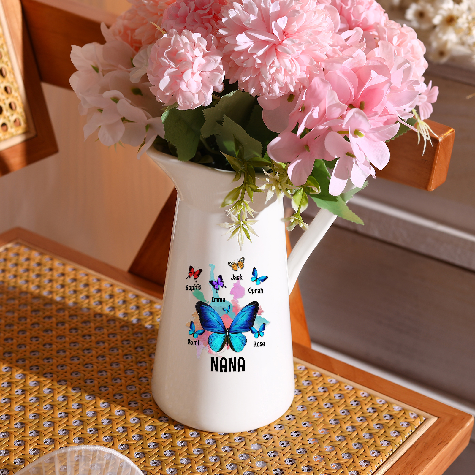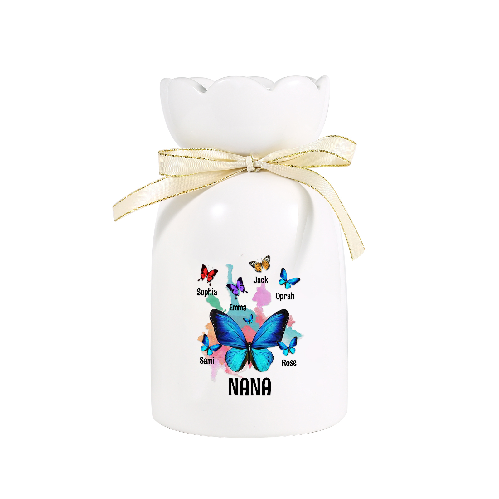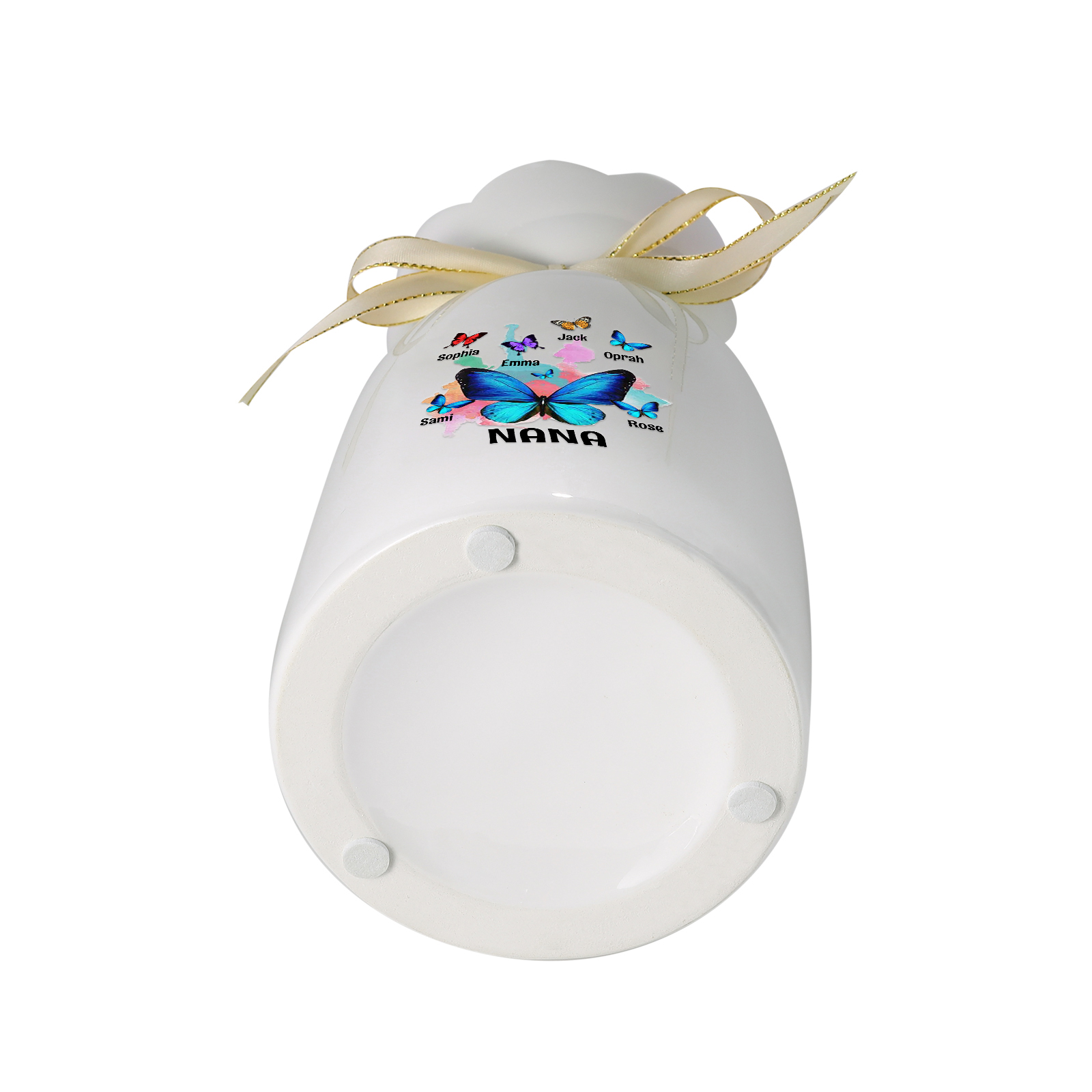 Vaso di ceramica con Farfalla 6 nomi e 1 testo personalizzati per nonna/mamma