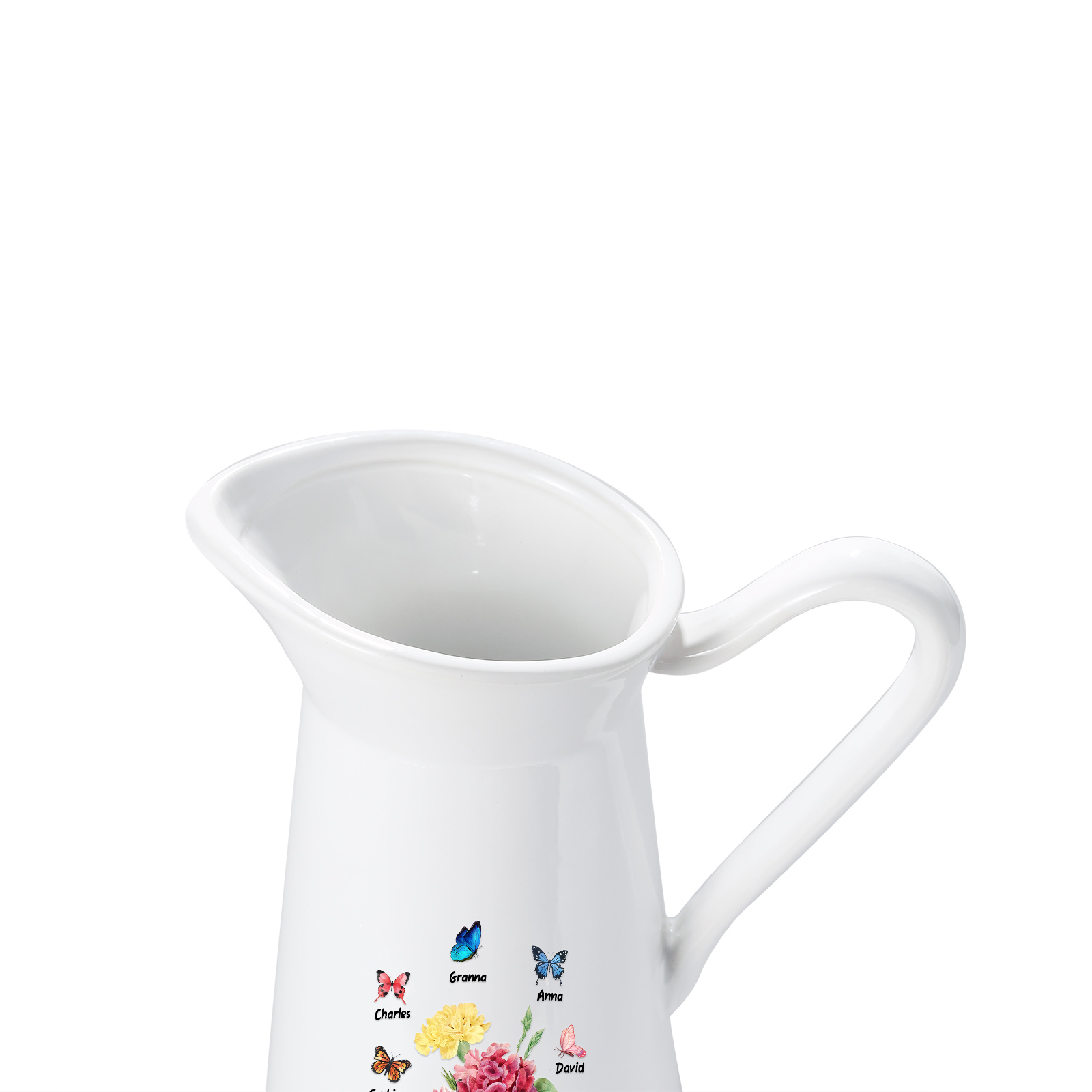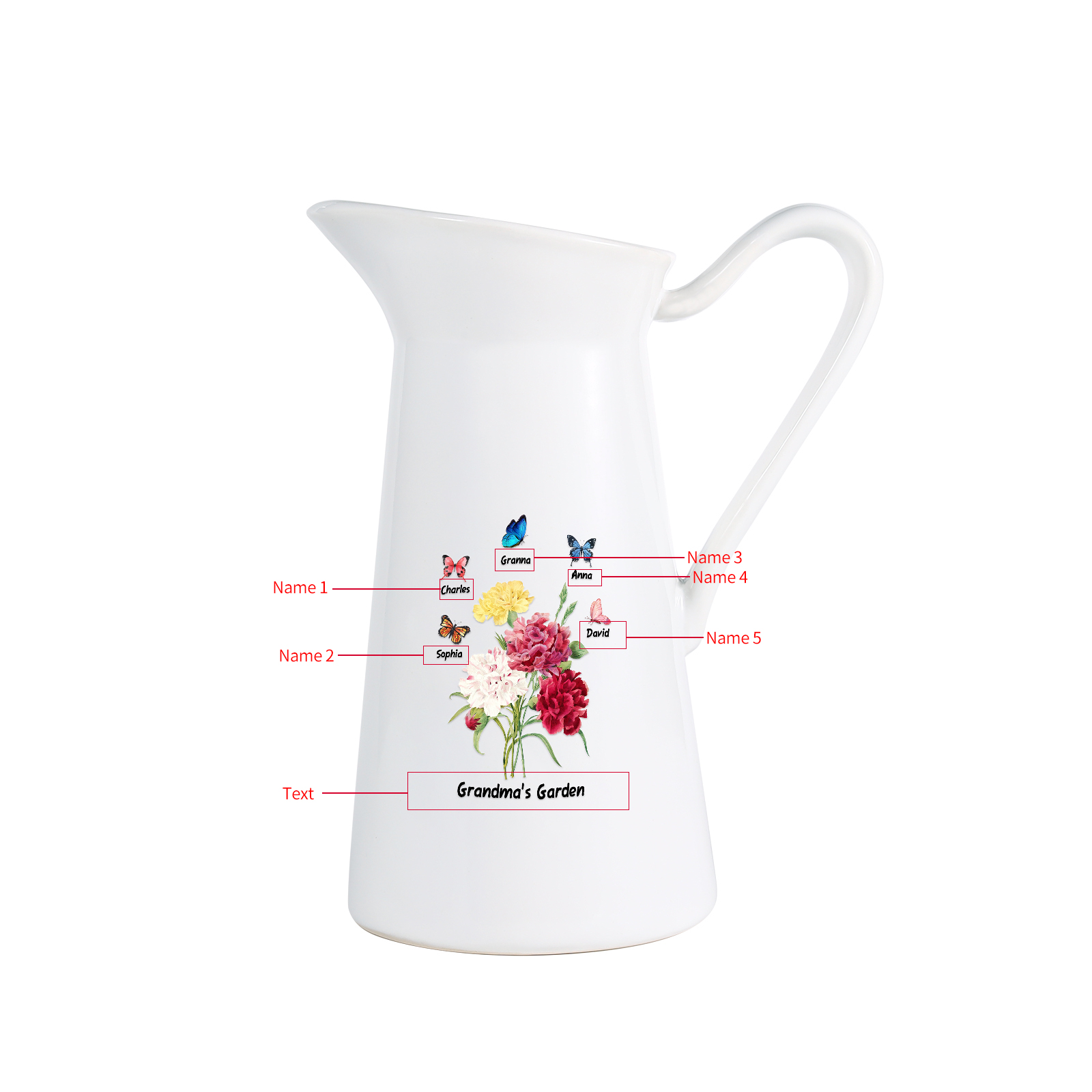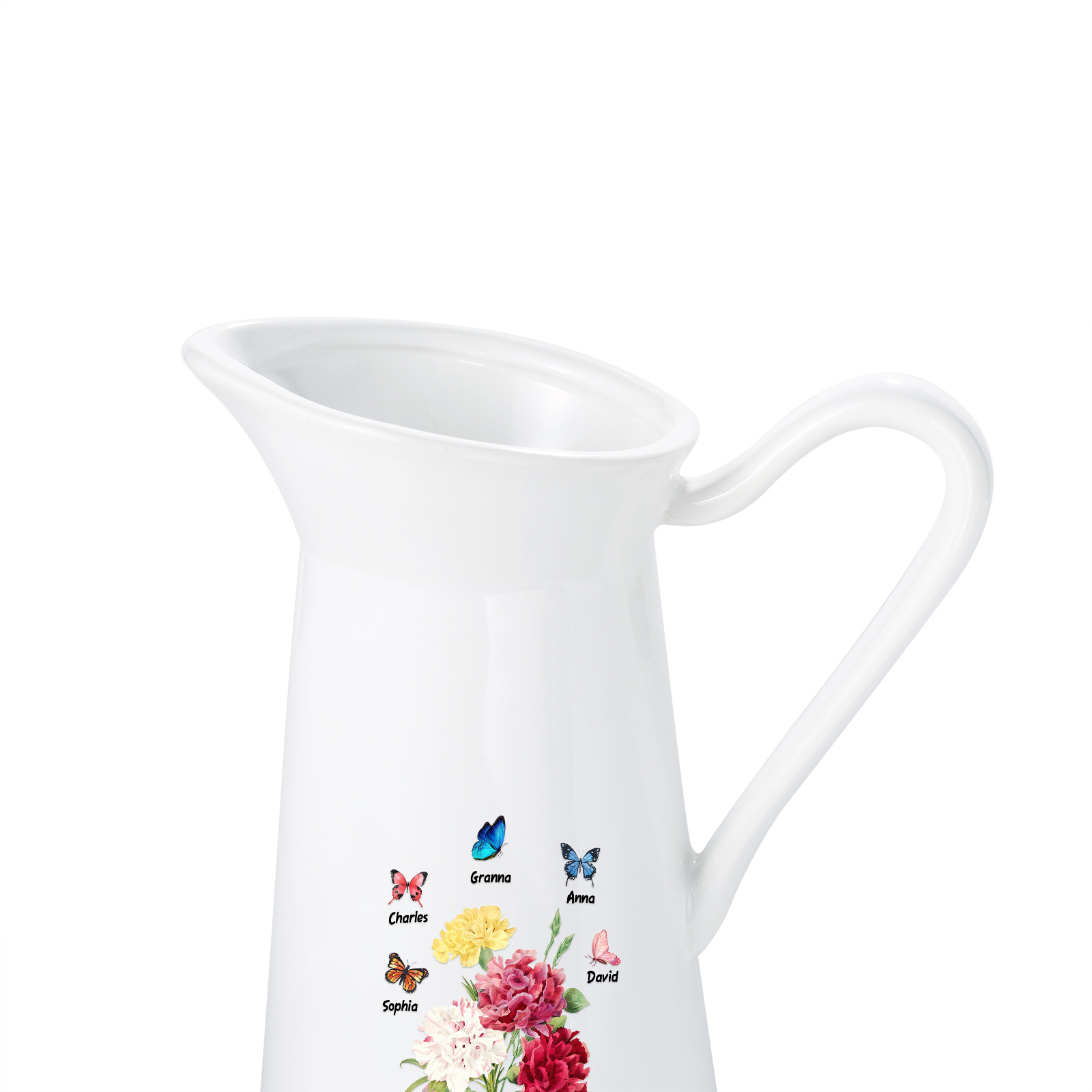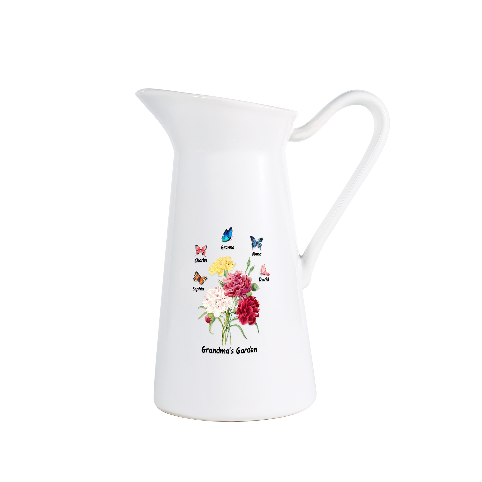 Vaso di ceramica con fiore e farfalla 5 nomi e 1 testo personalizzati per nonna/mamma