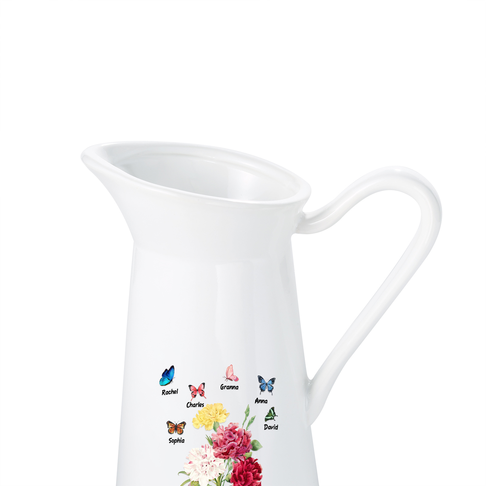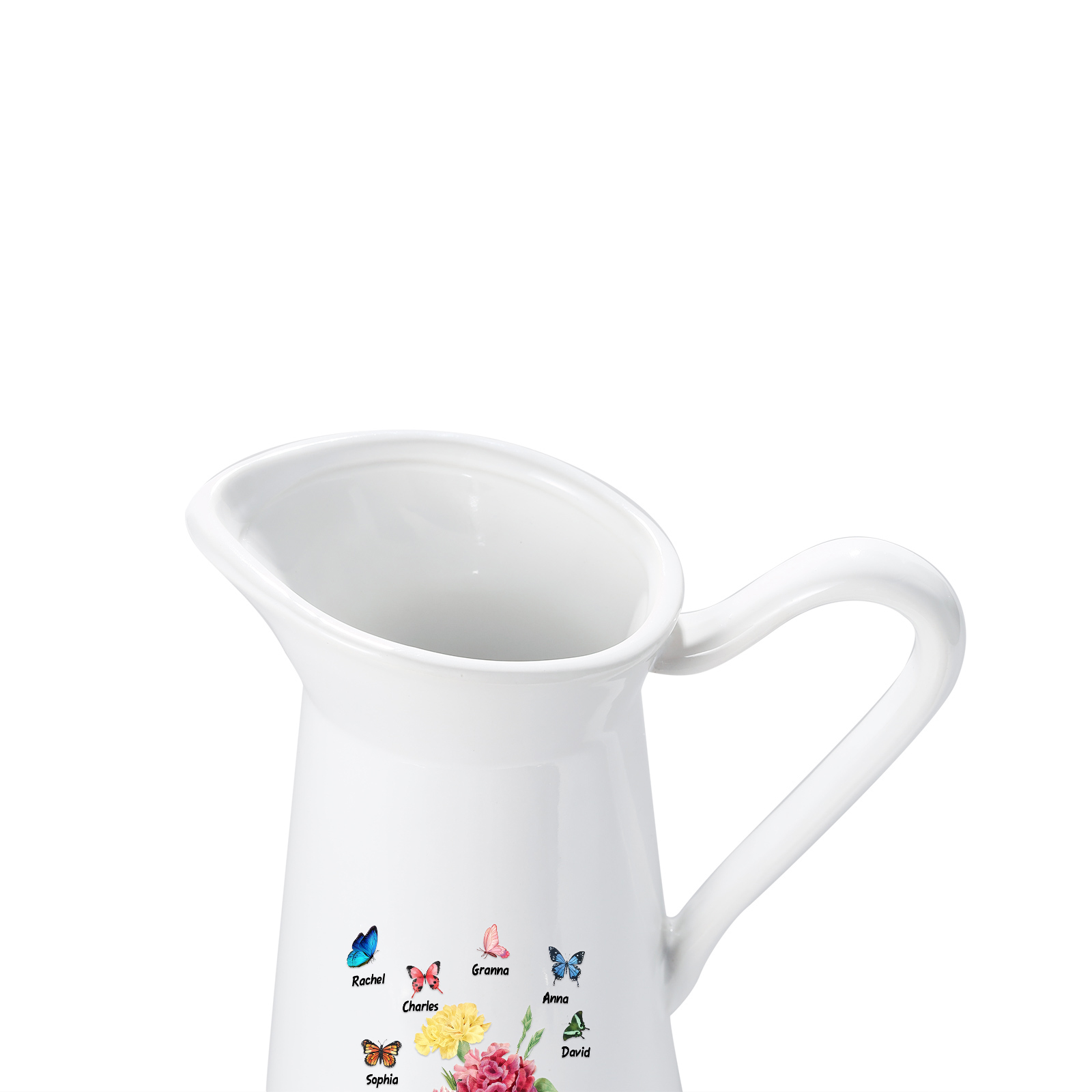 Vaso di ceramica con fiore e farfalla 6 nomi e 1 testo personalizzati per nonna/mamma