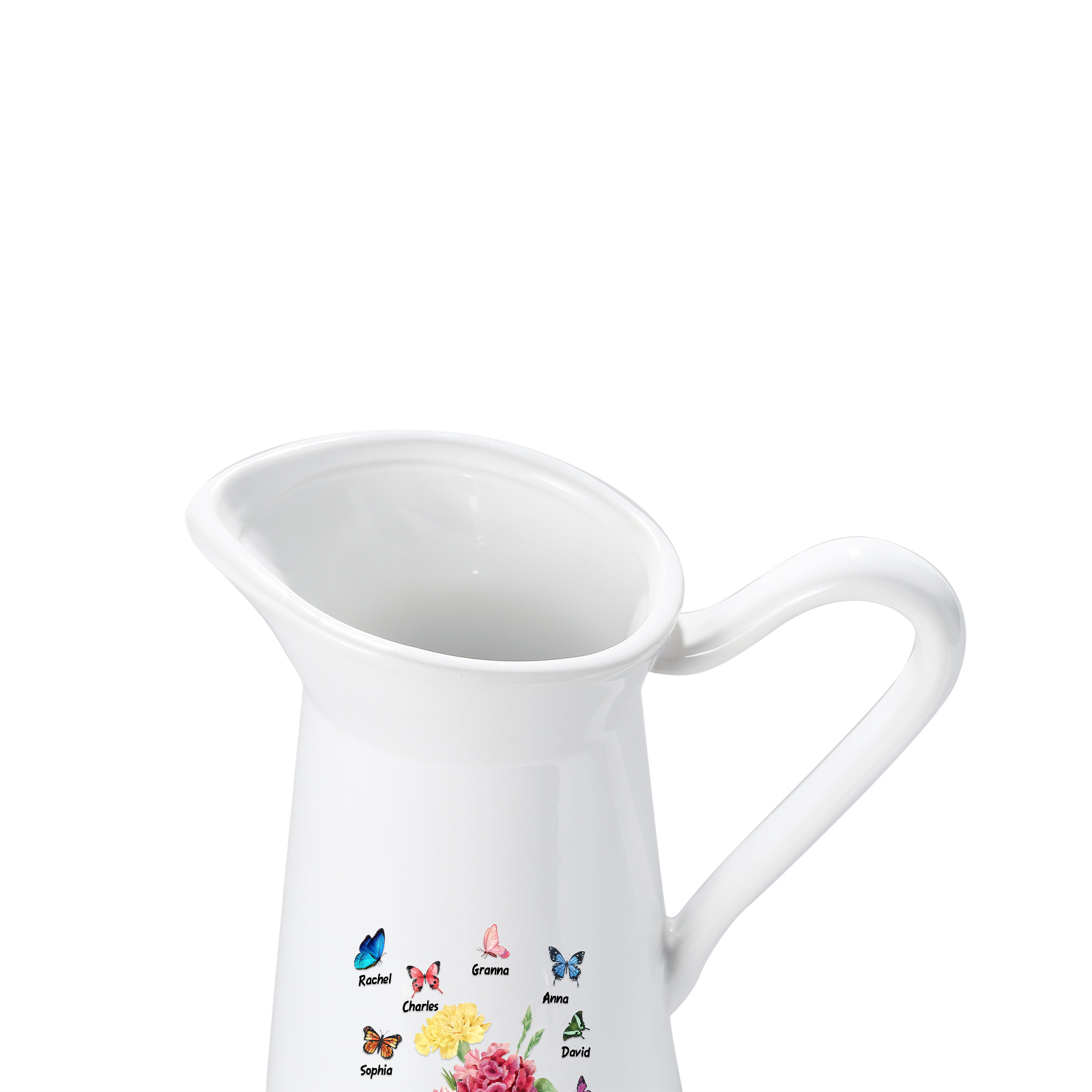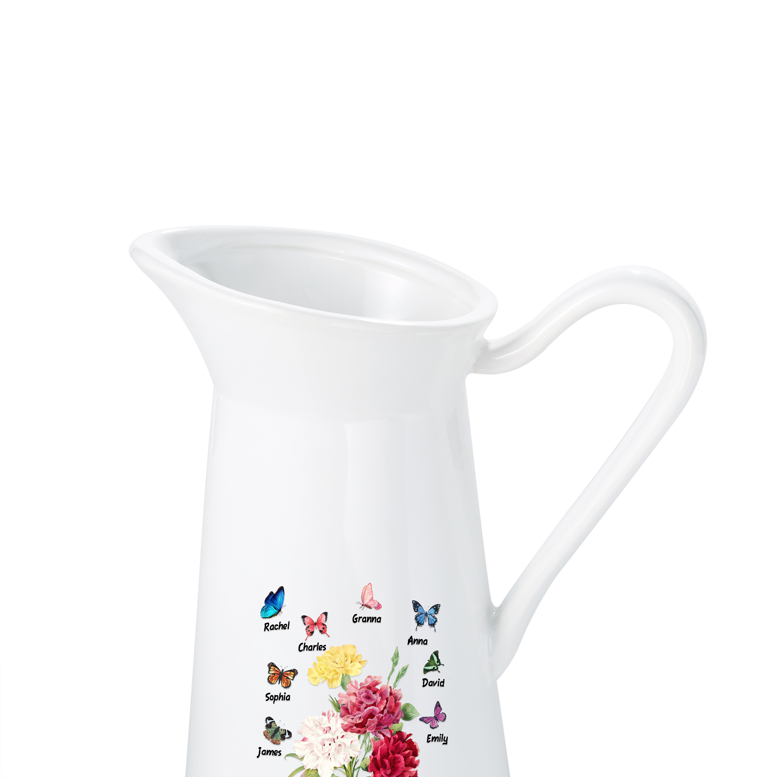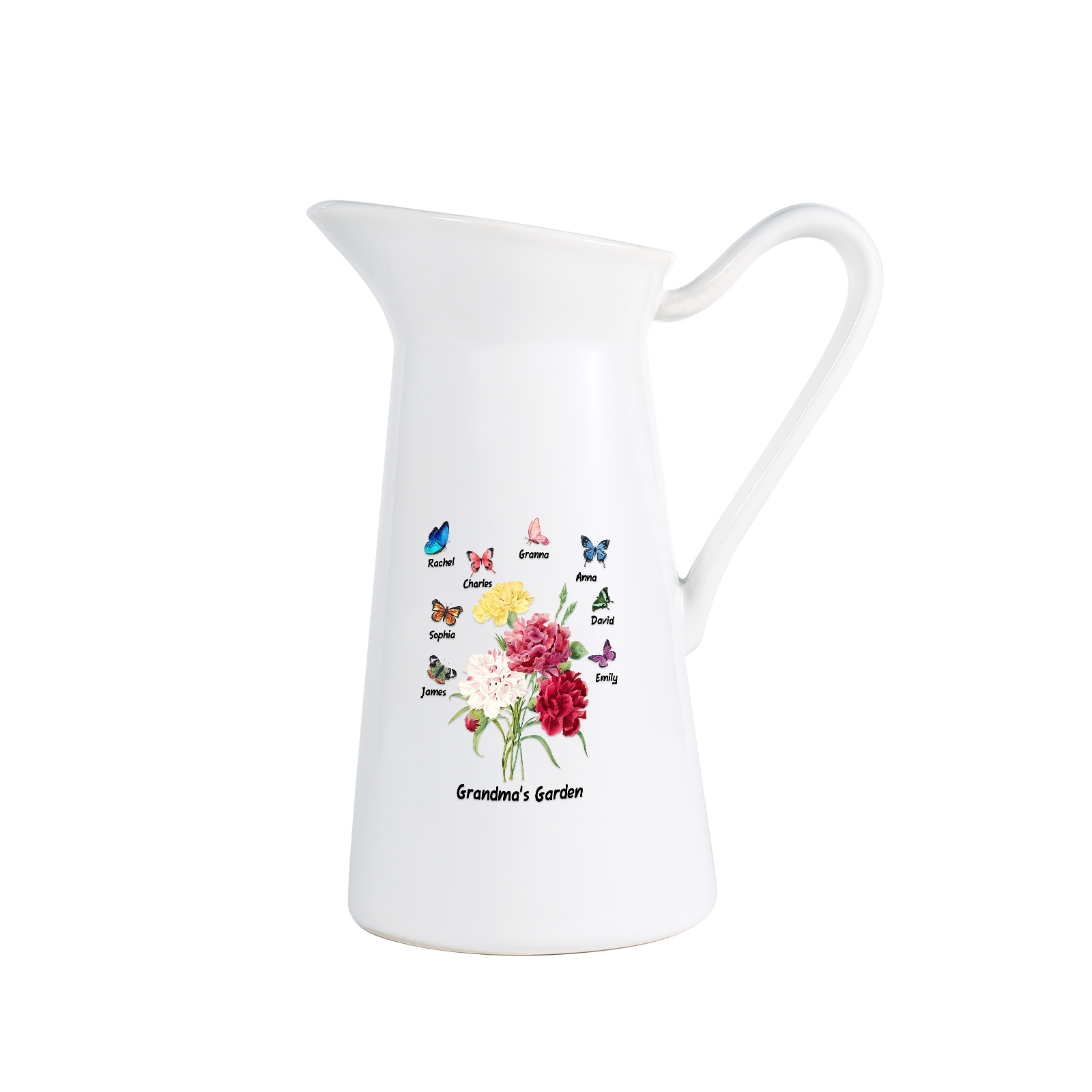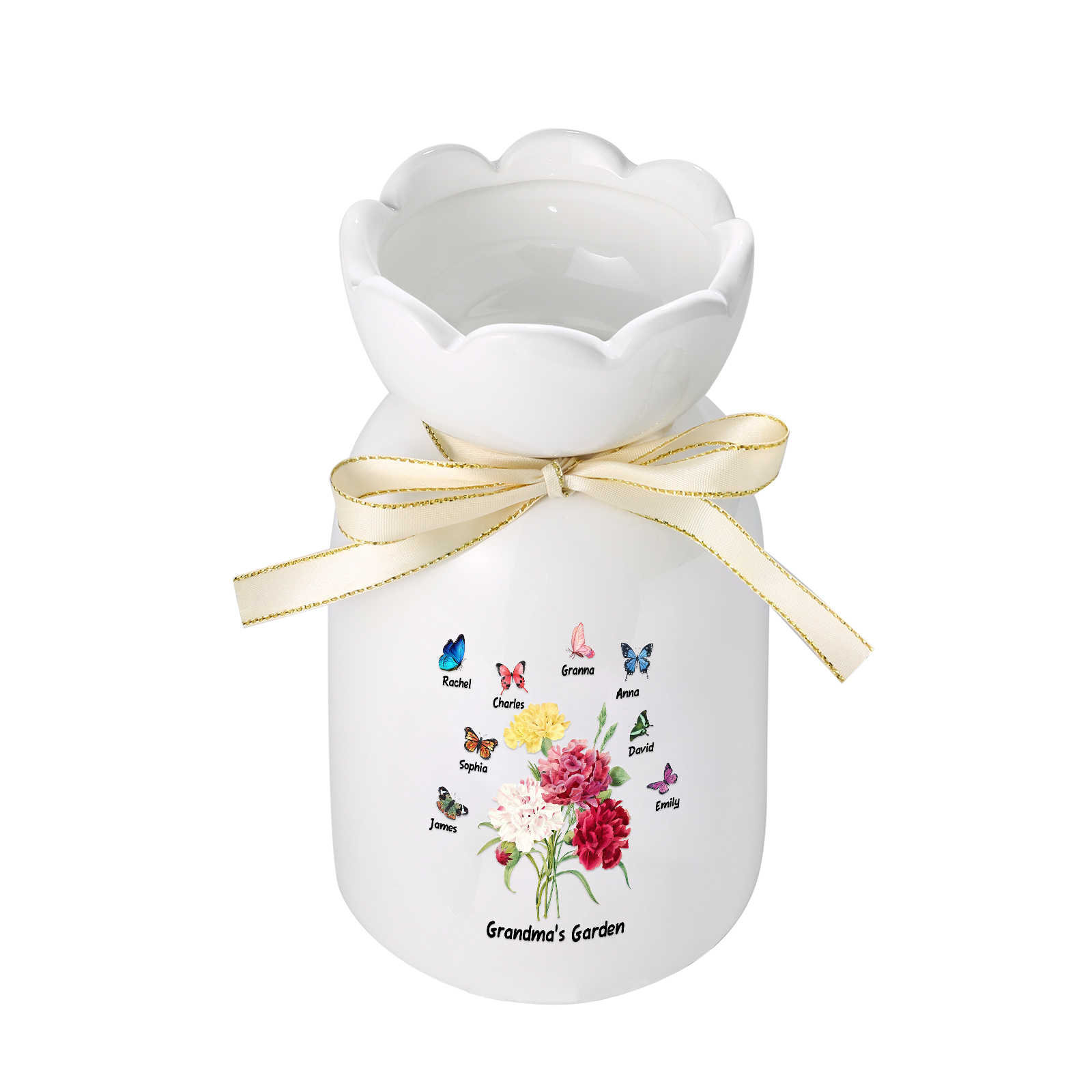 Vaso di ceramica con fiore e farfalla 8 nomi e 1 testo personalizzati per nonna/mamma