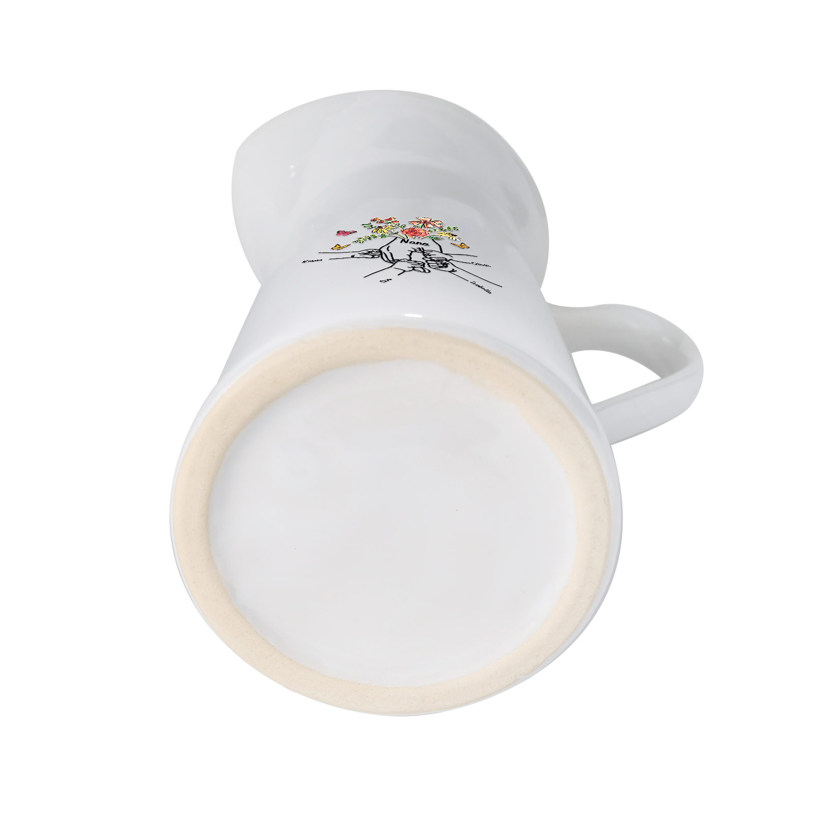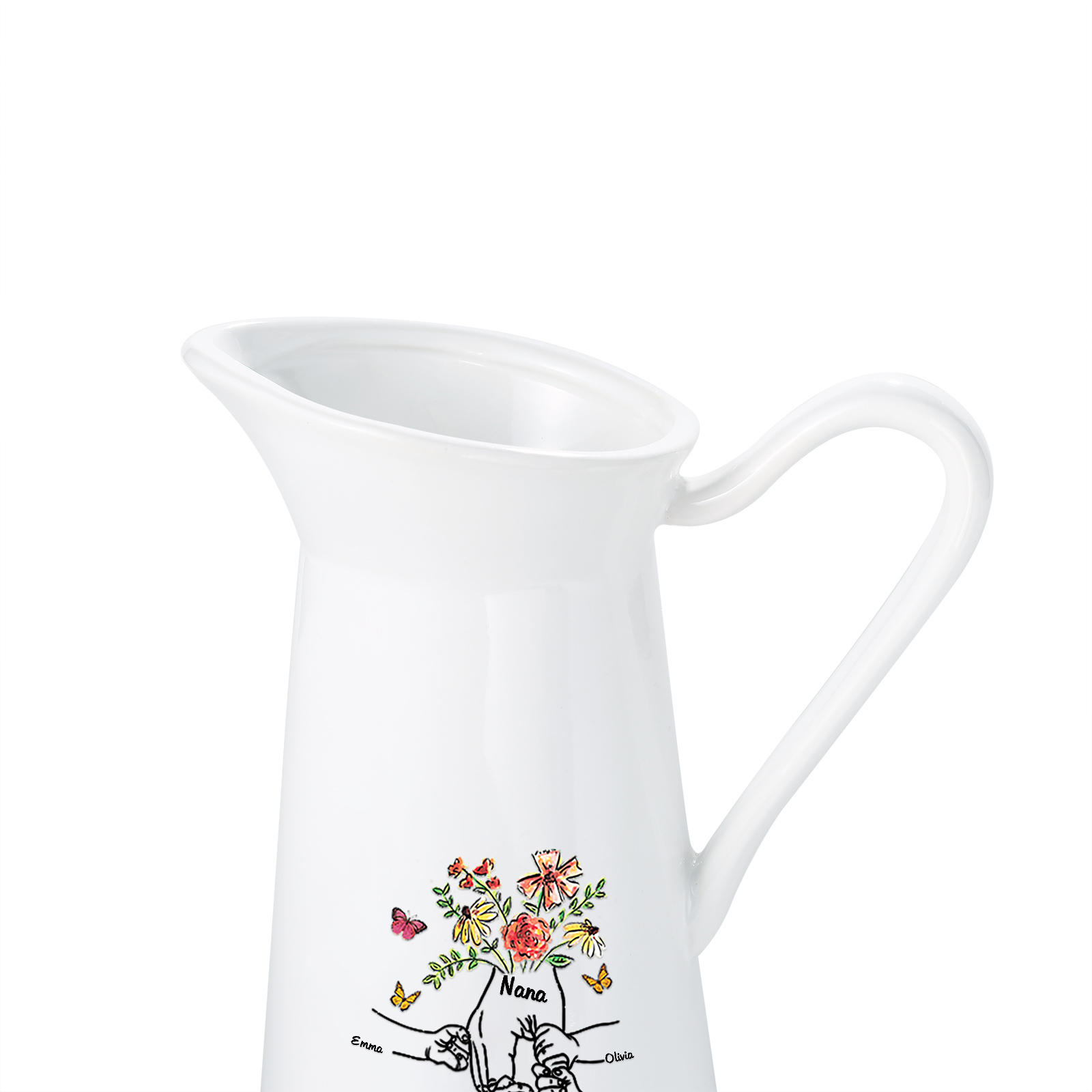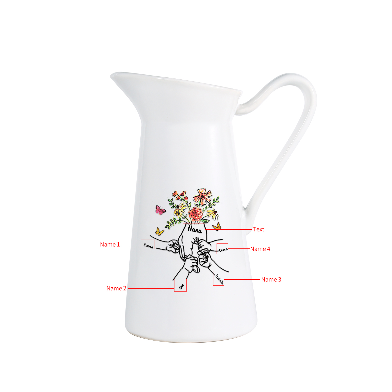 Vaso di ceramica con fiore mano nella mano 4 nomi e 1 testo personalizzati per nonna/mamma