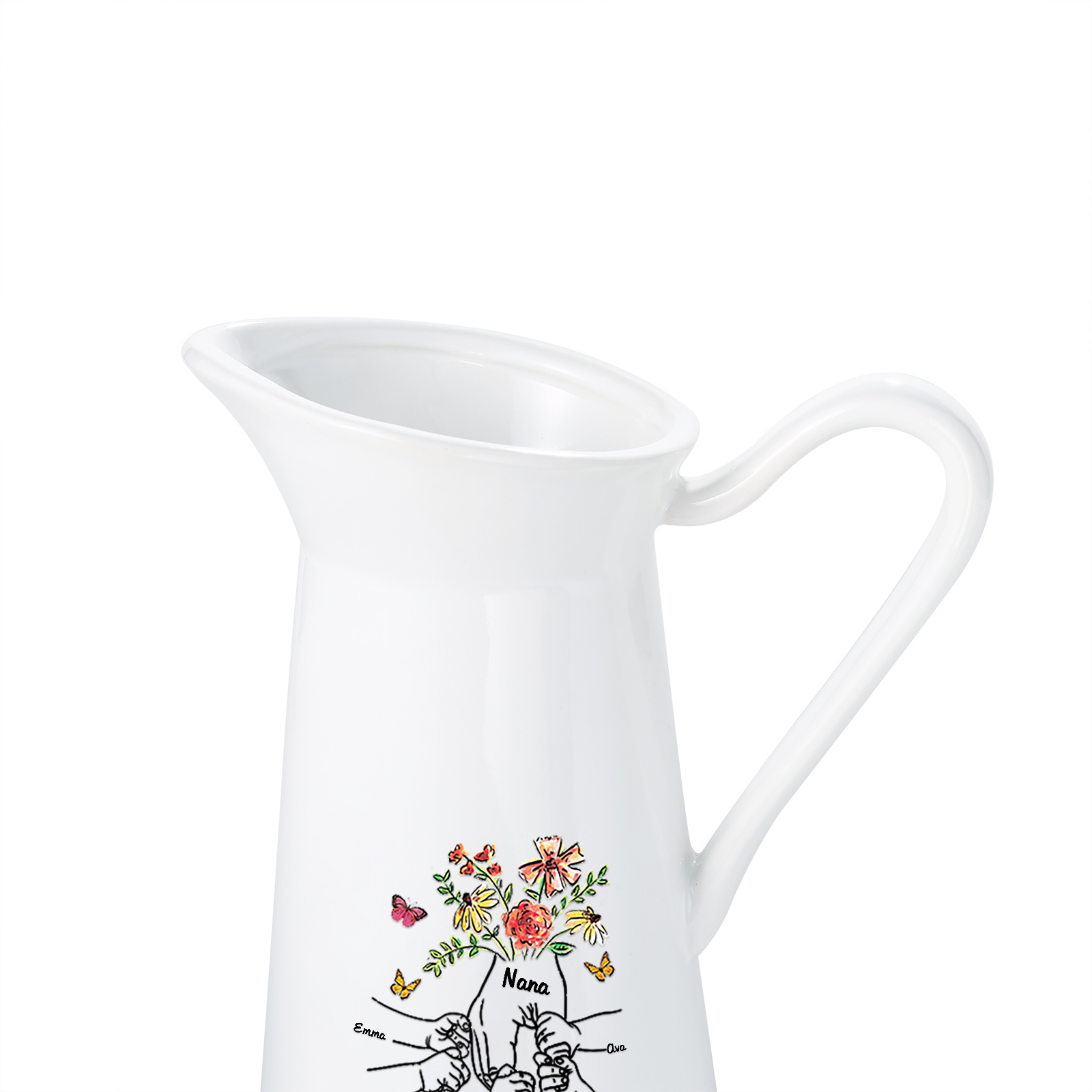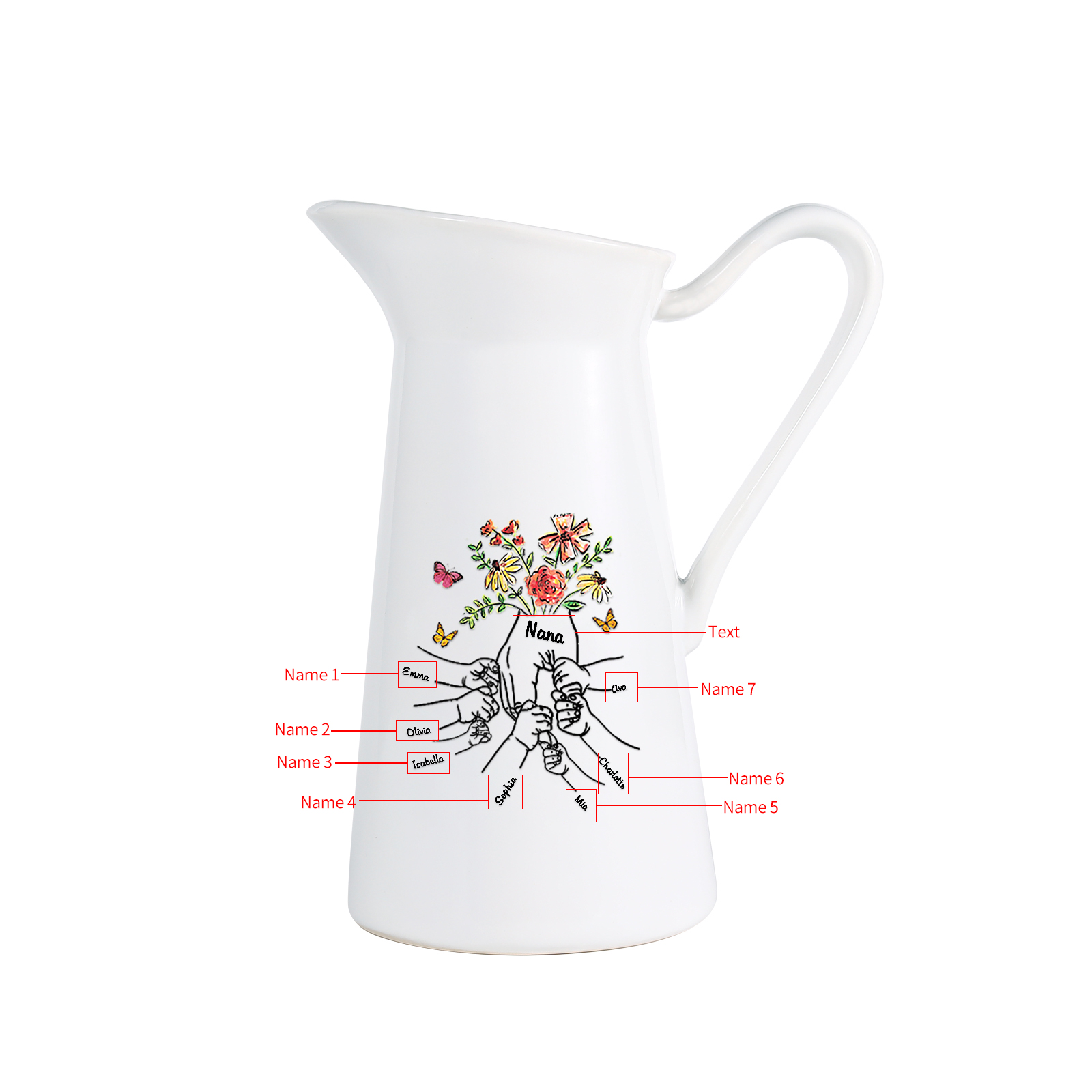 Vaso di ceramica con fiore mano nella mano 7 nomi e 1 testo personalizzati per nonna/mamma