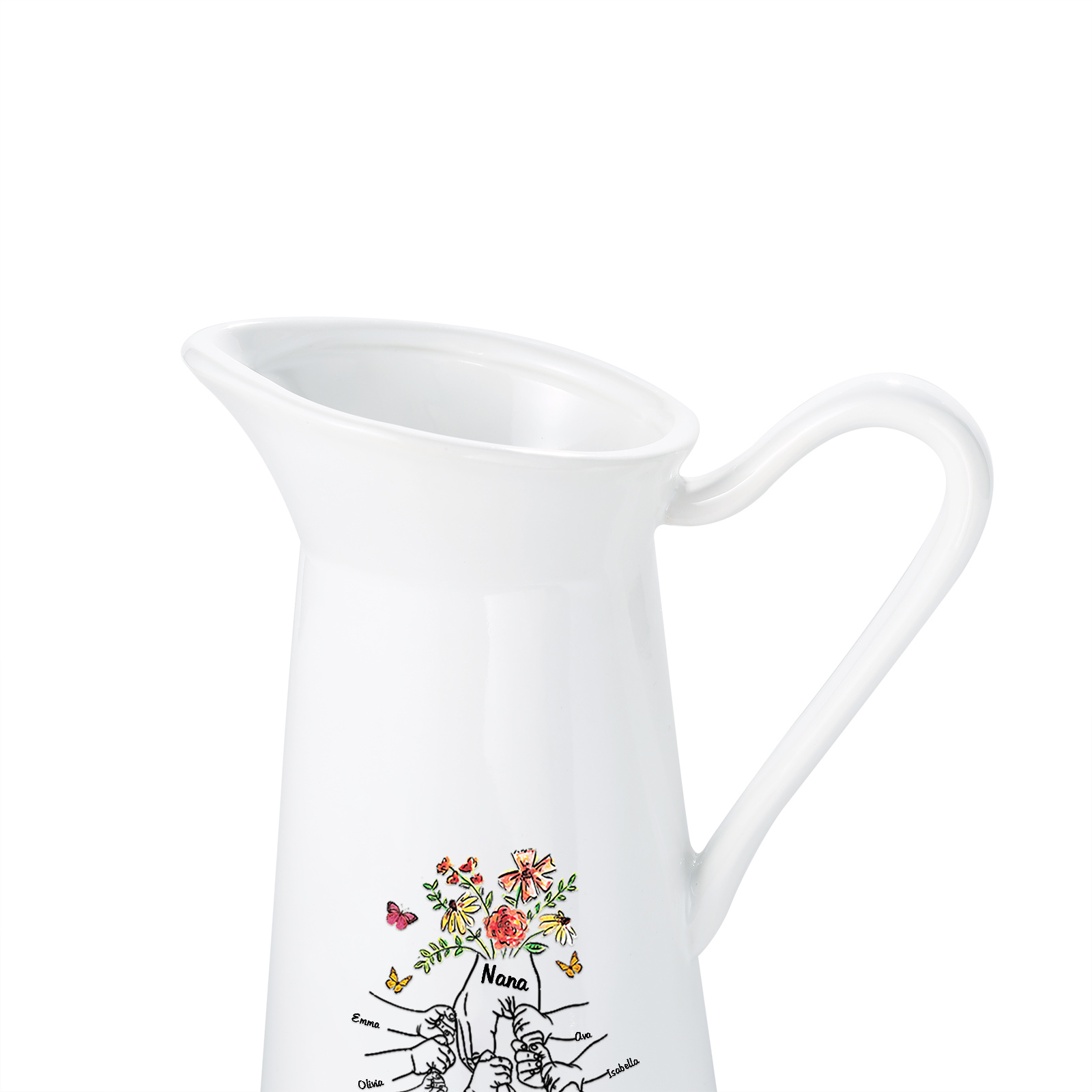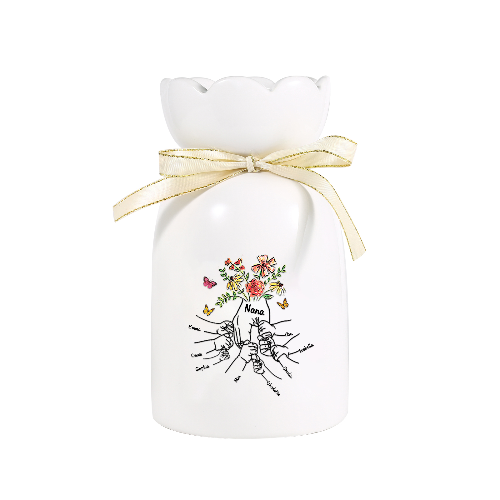 Vaso di ceramica con fiore mano nella mano 8 nomi e 1 testo personalizzati per nonna/mamma