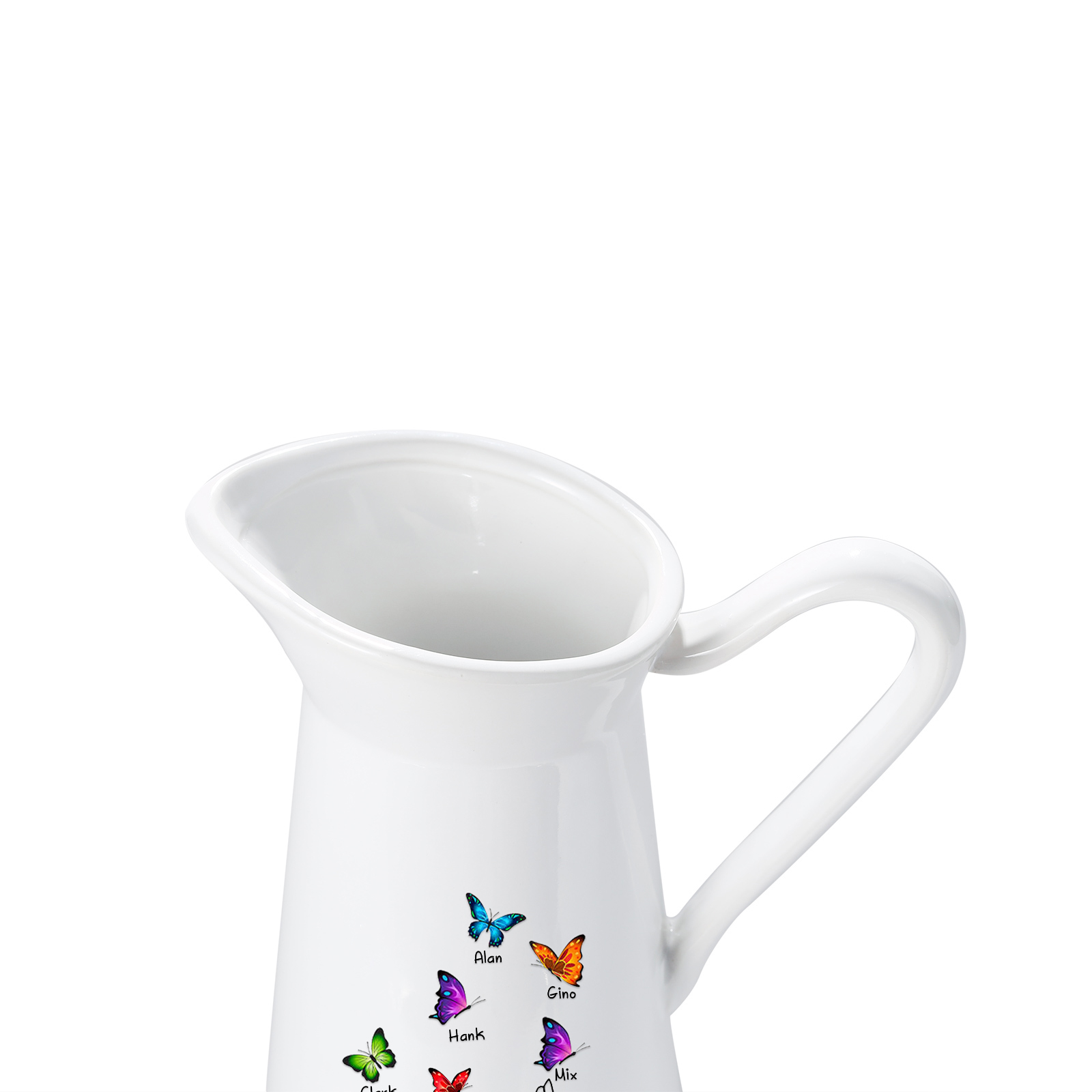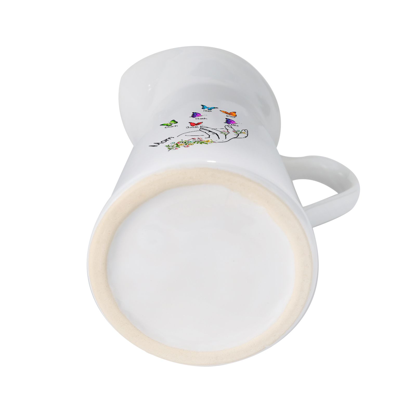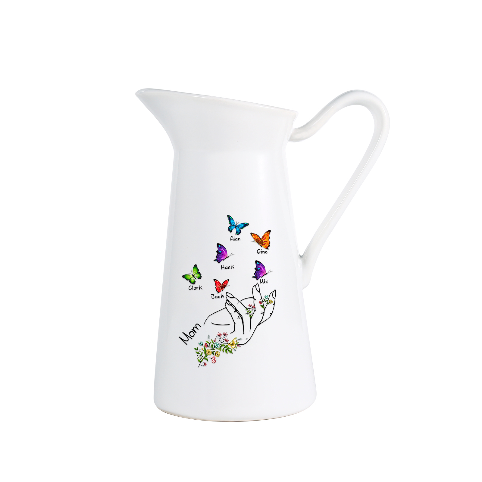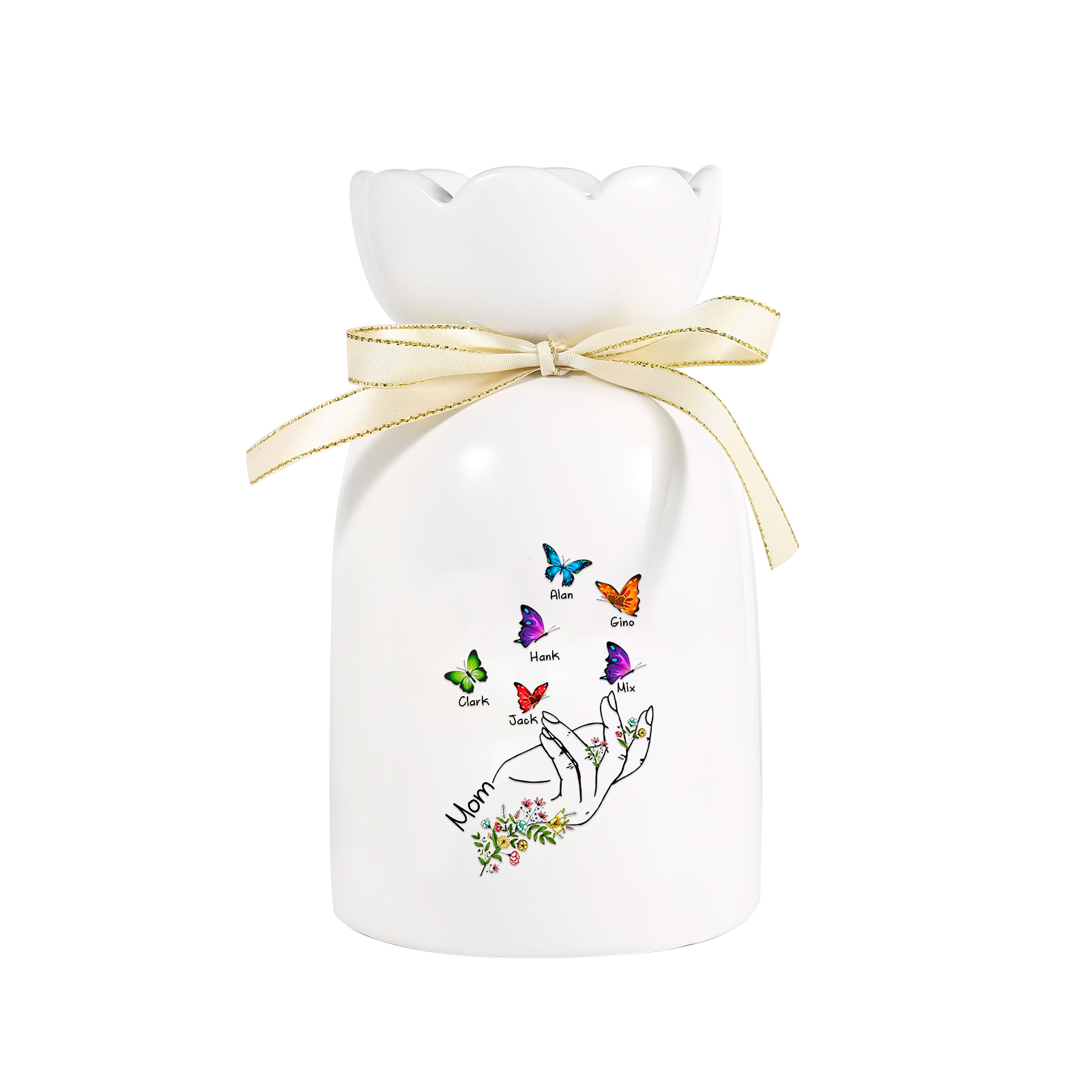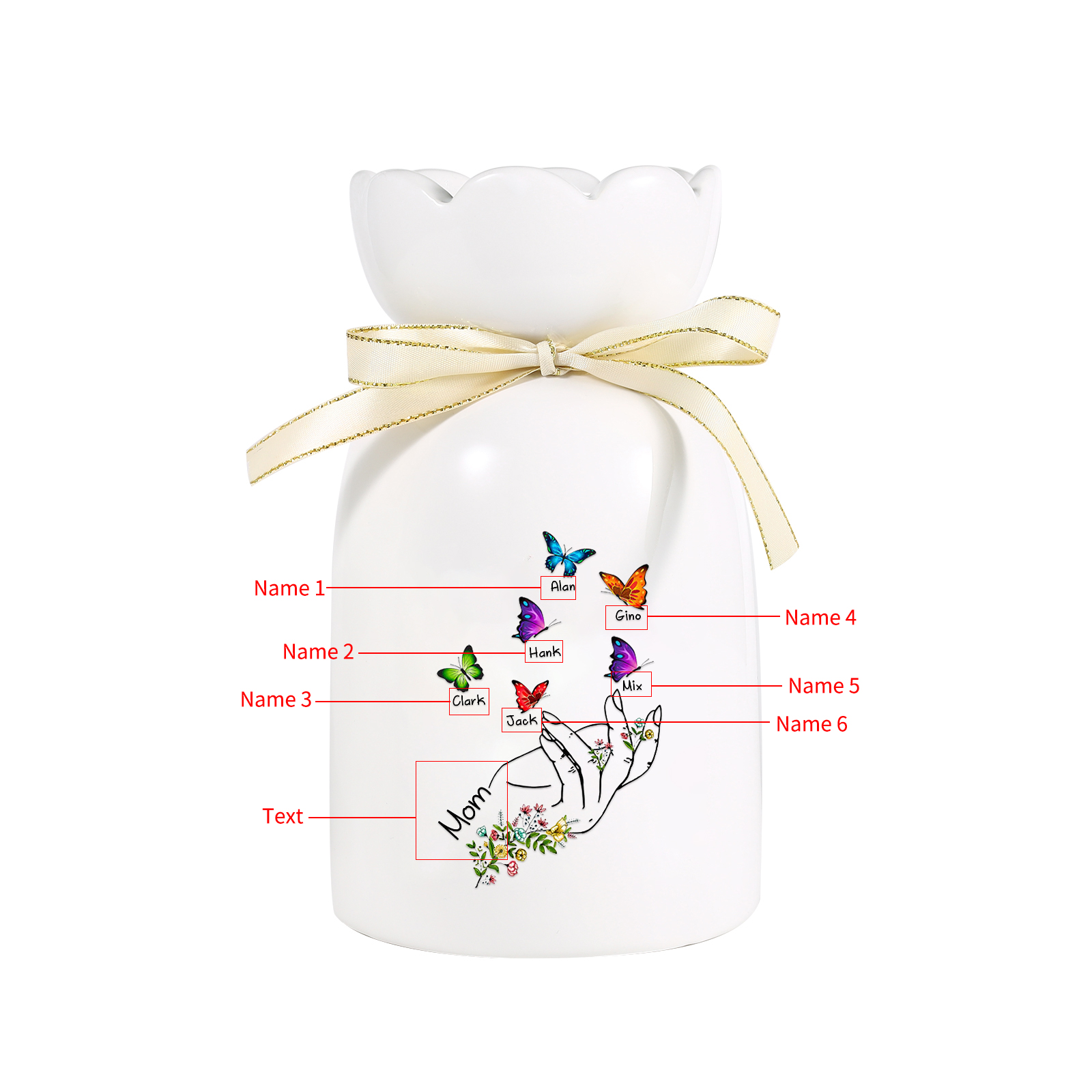 Vaso di ceramica con mano e farfalla 6 nomi e 1 testo personalizzati per nonna/mamma