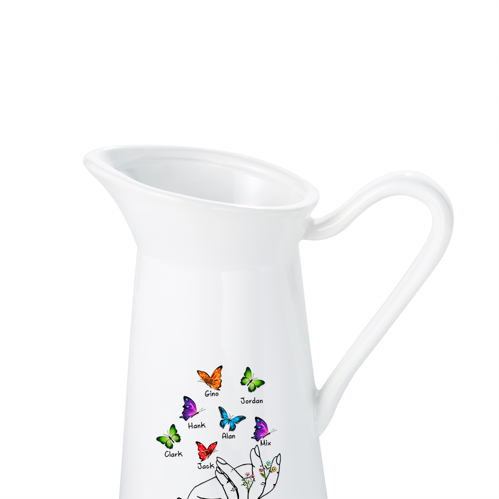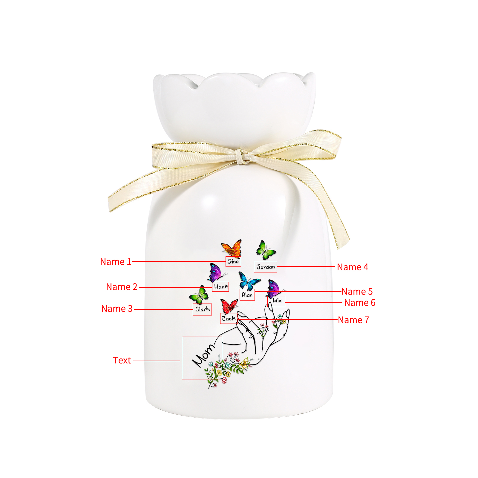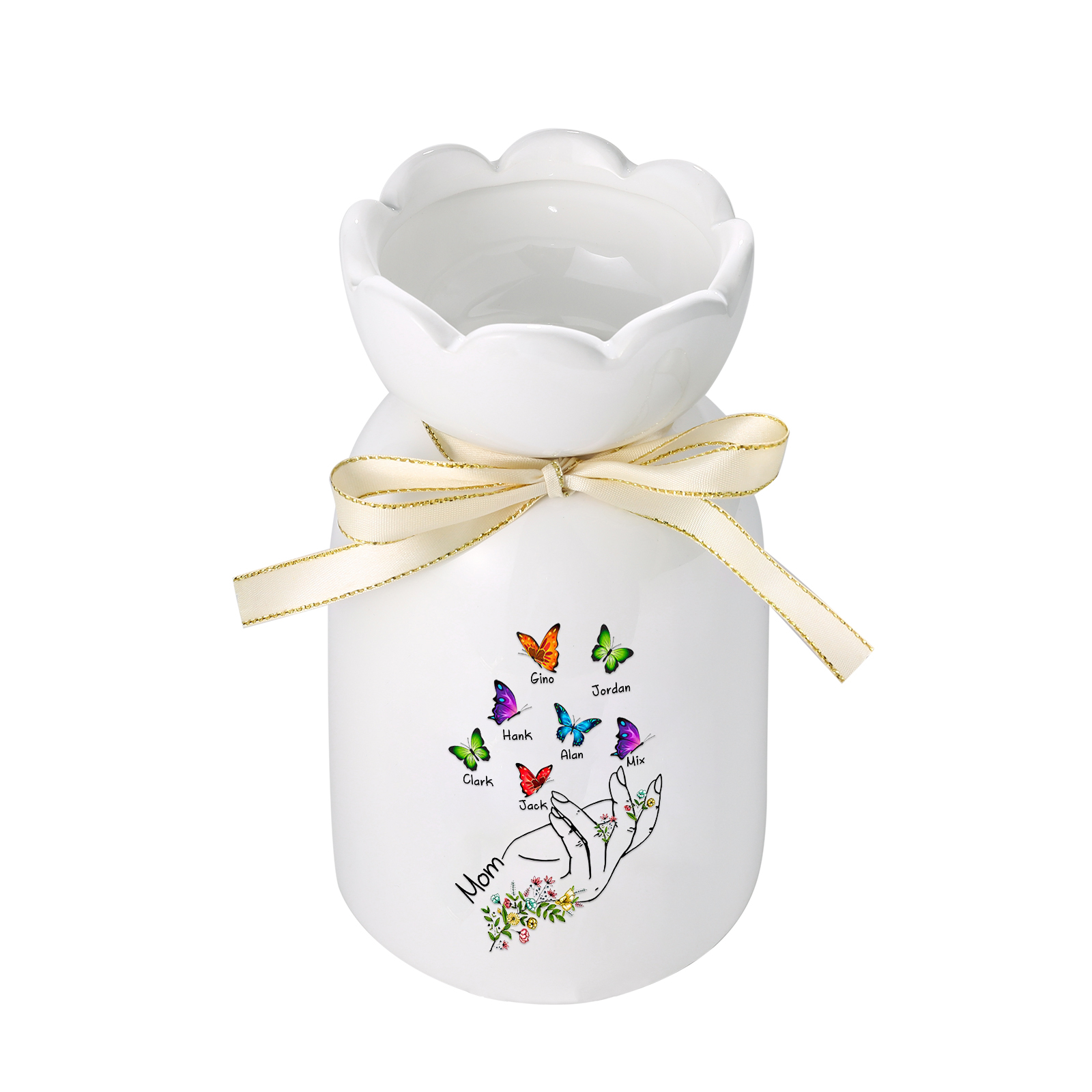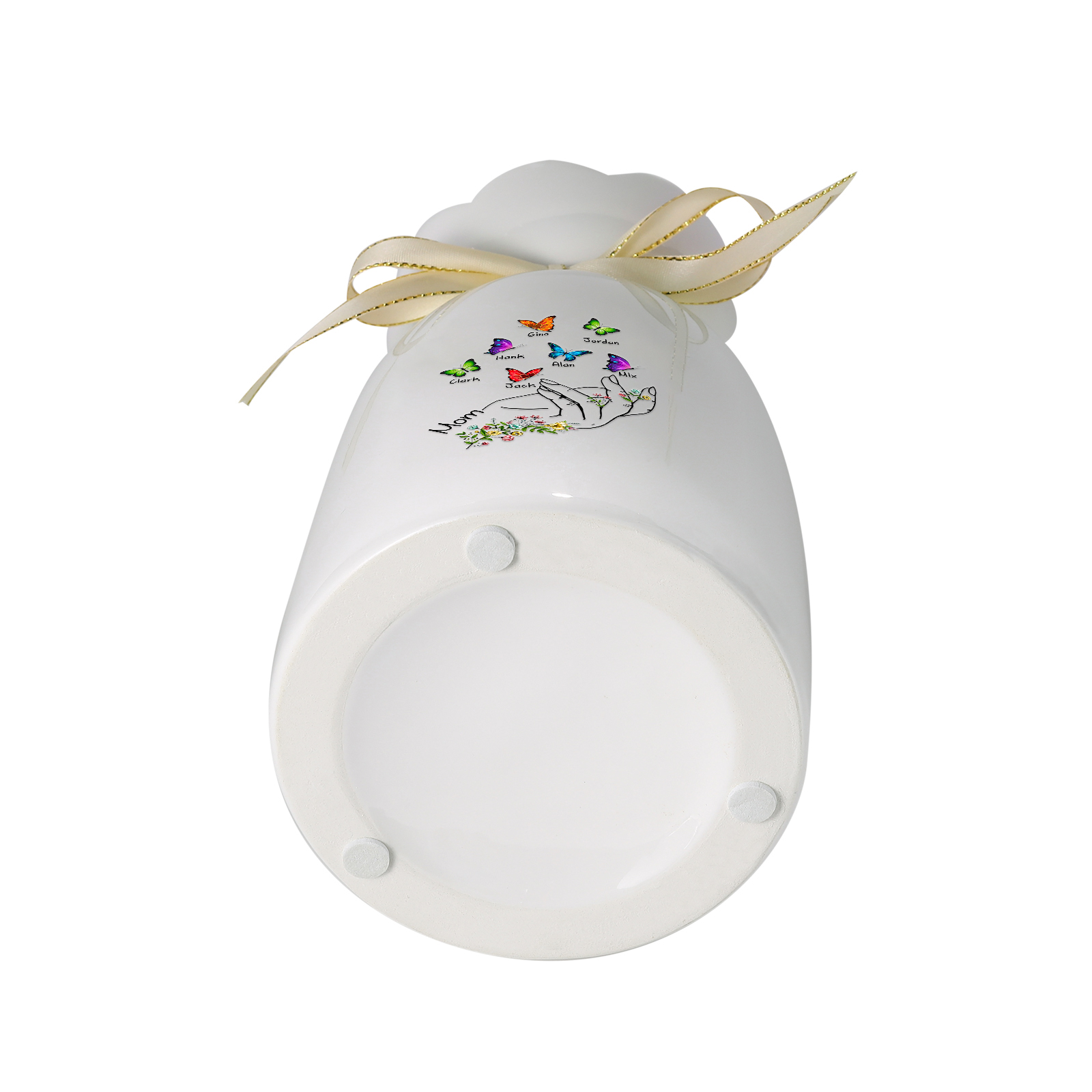 Vaso di ceramica con mano e farfalla 7 nomi e 1 testo personalizzati per nonna/mamma