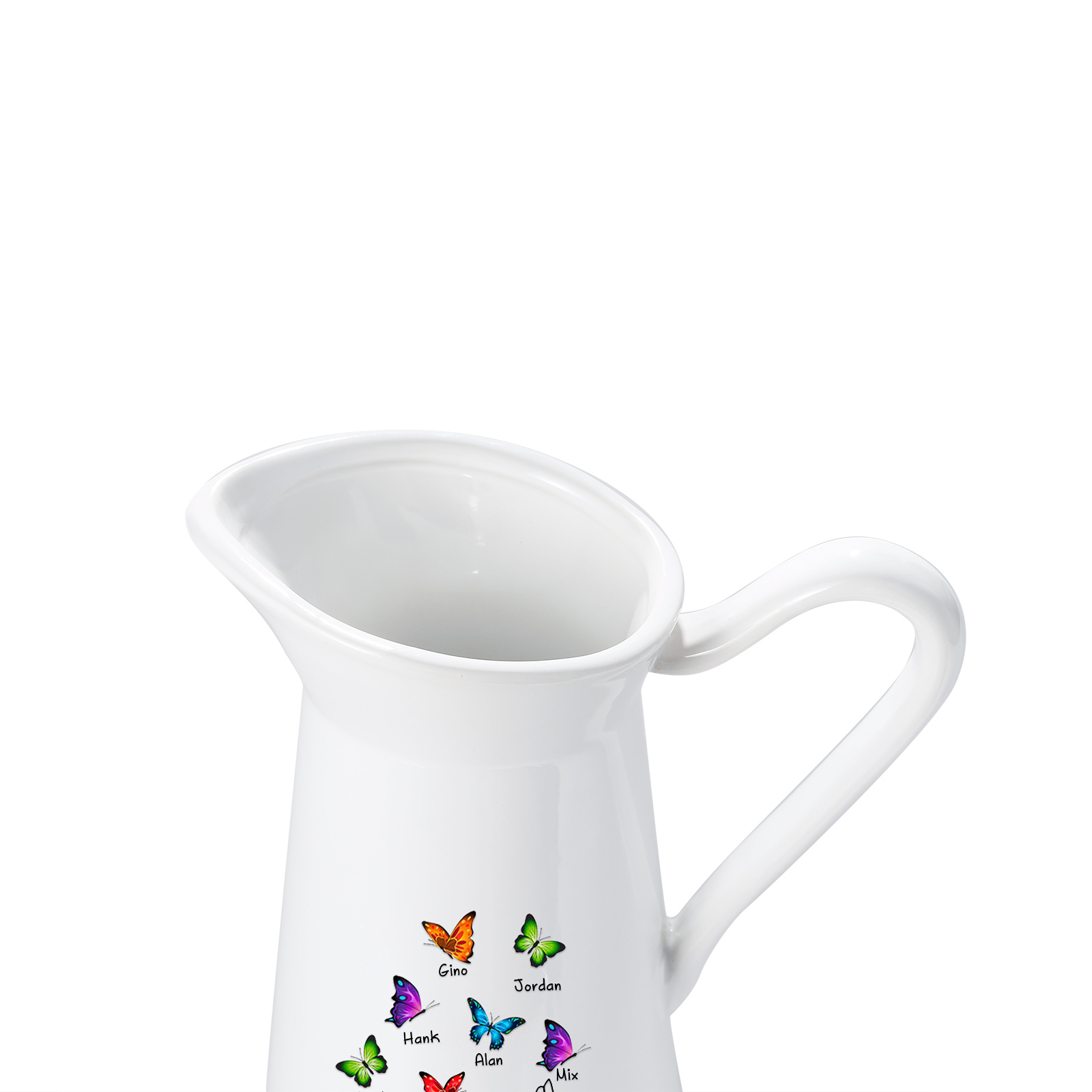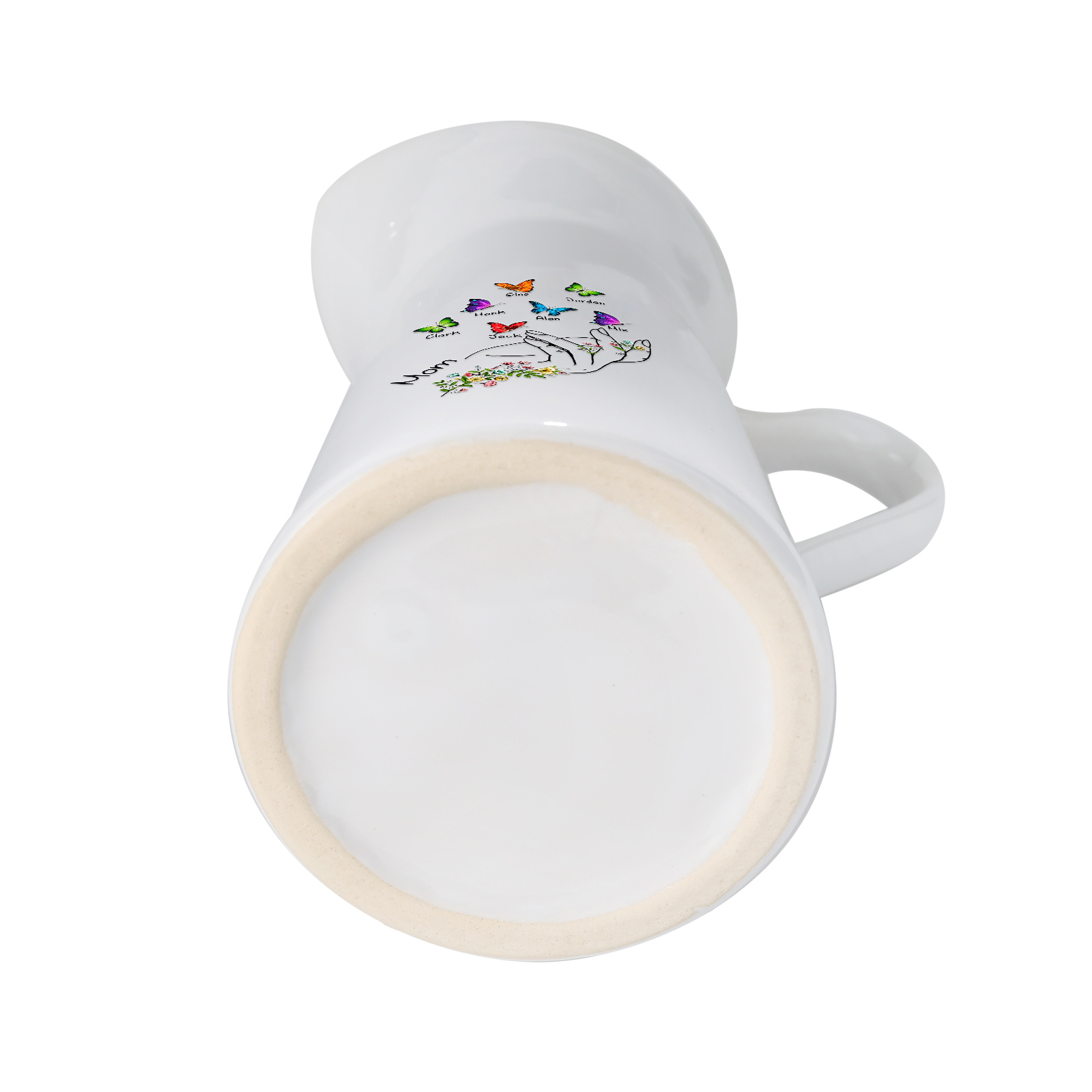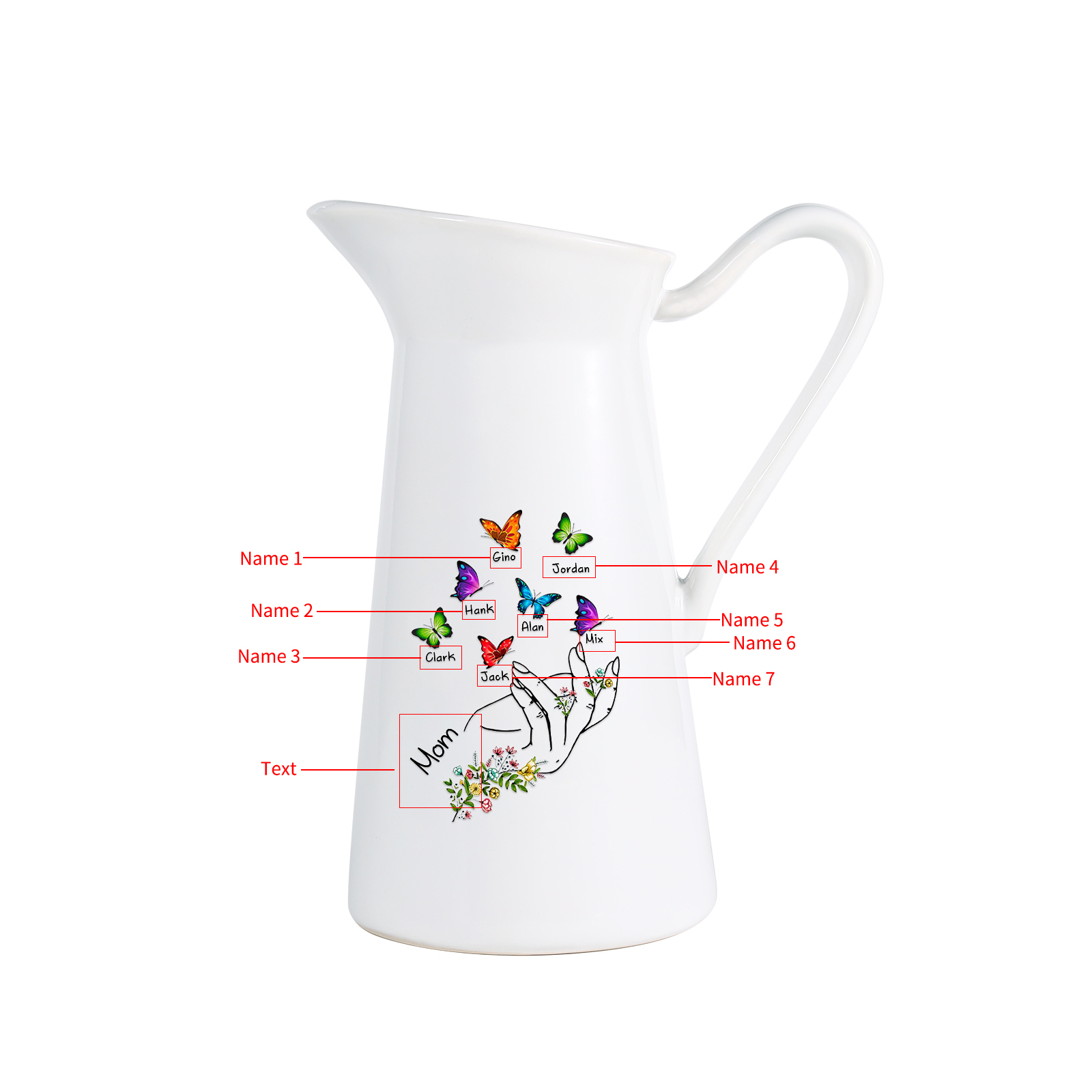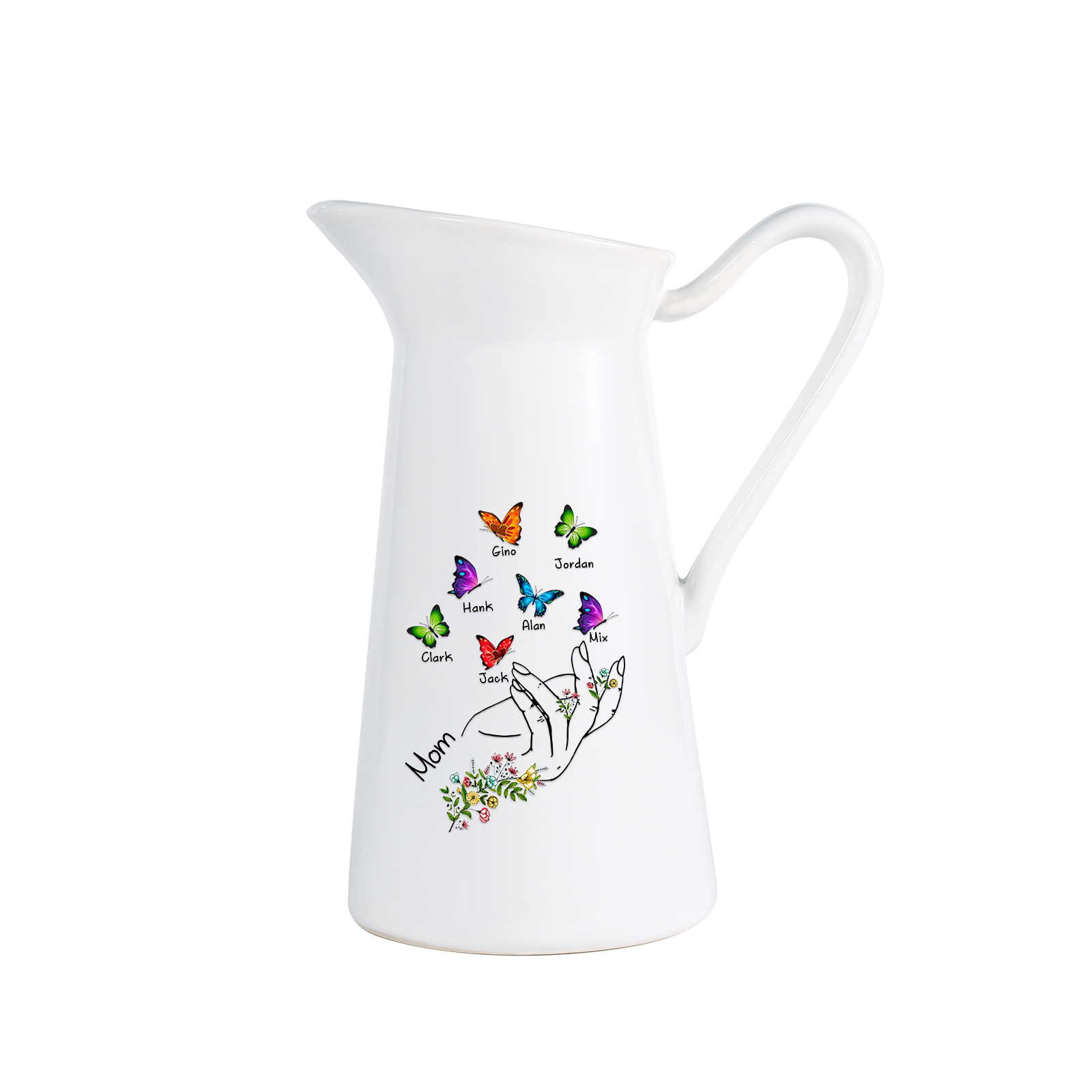 Vaso di ceramica con mano e farfalla 7 nomi e 1 testo personalizzati per nonna/mamma