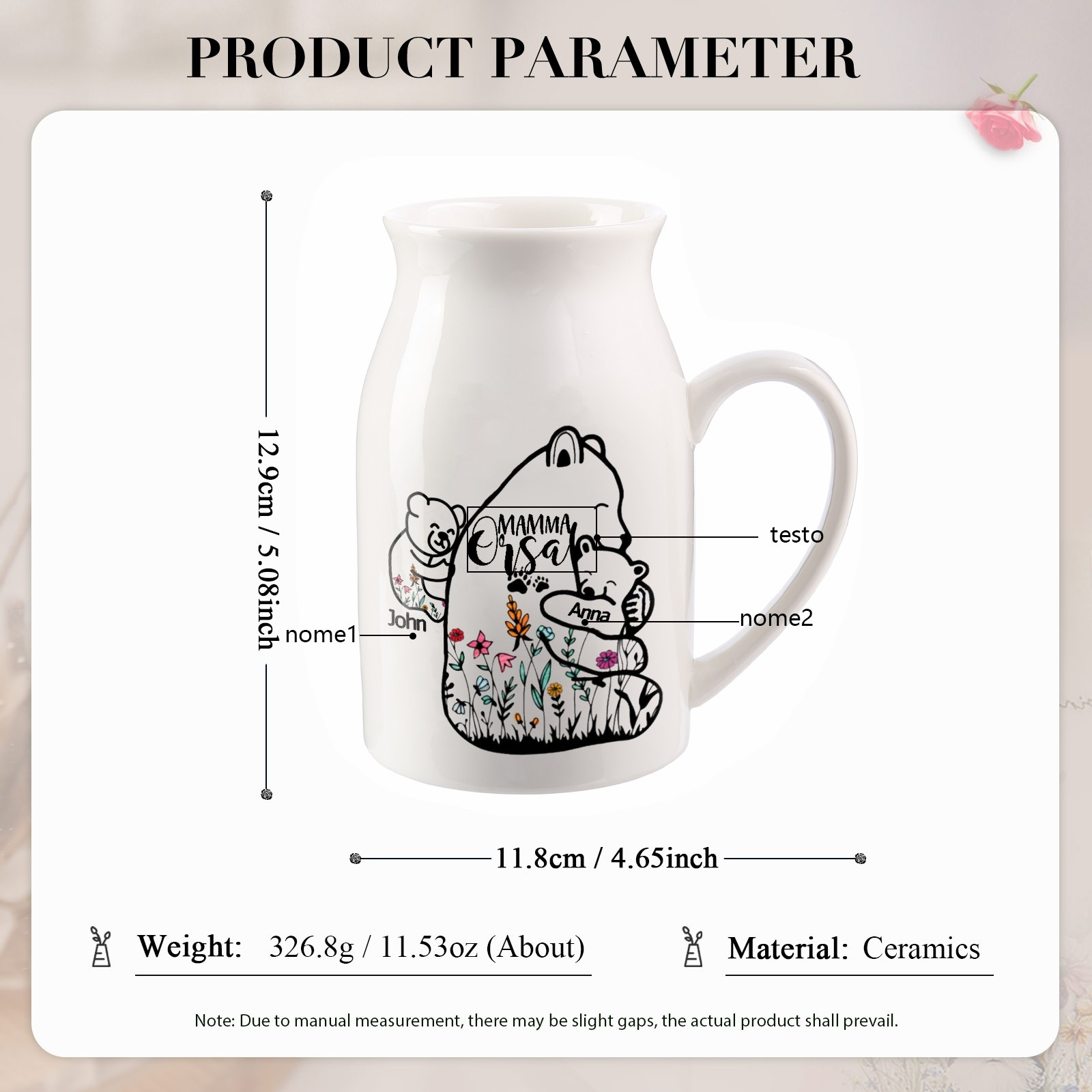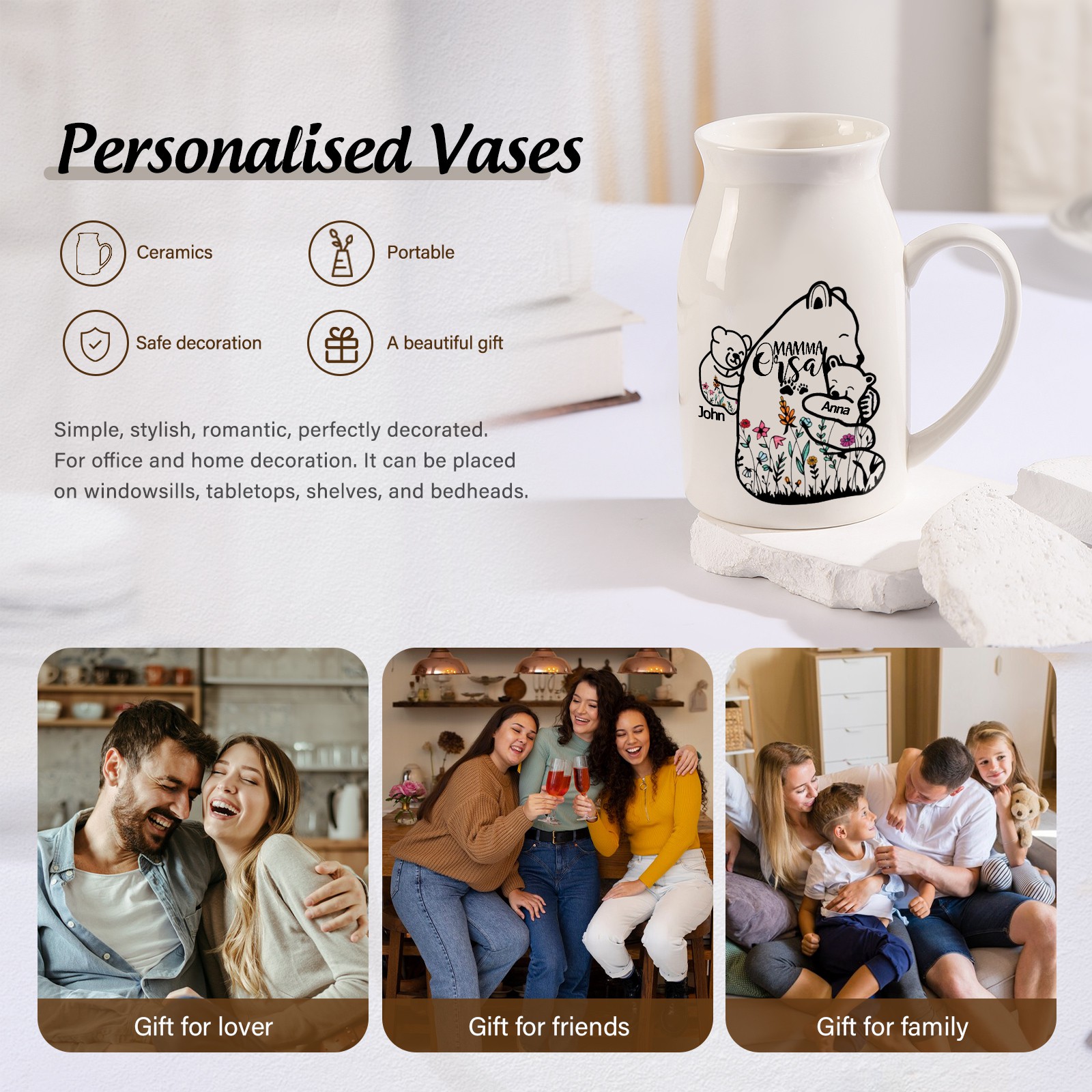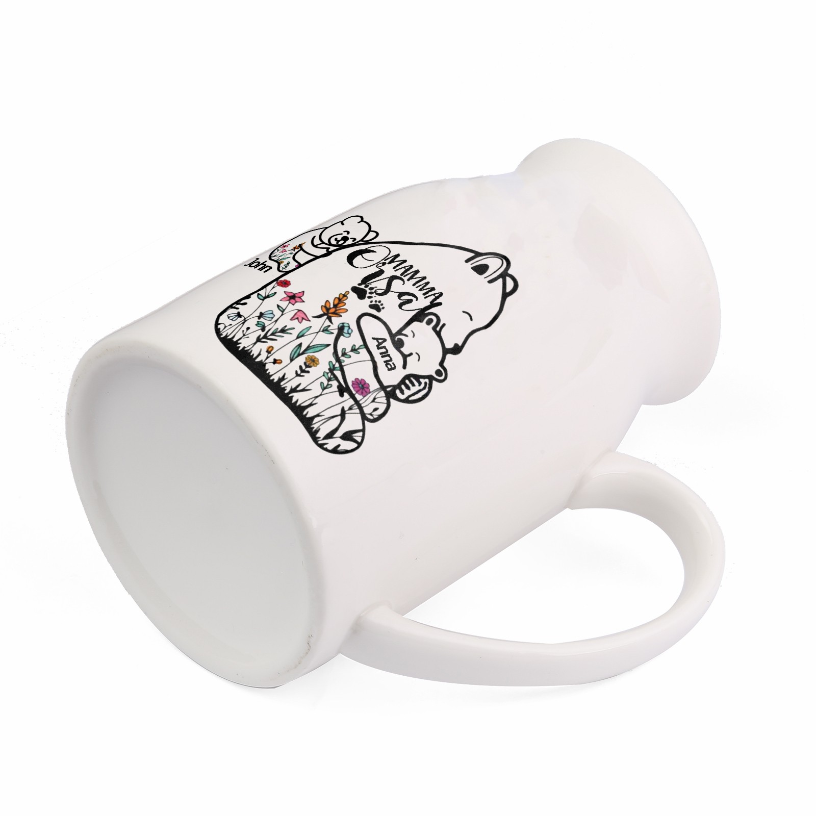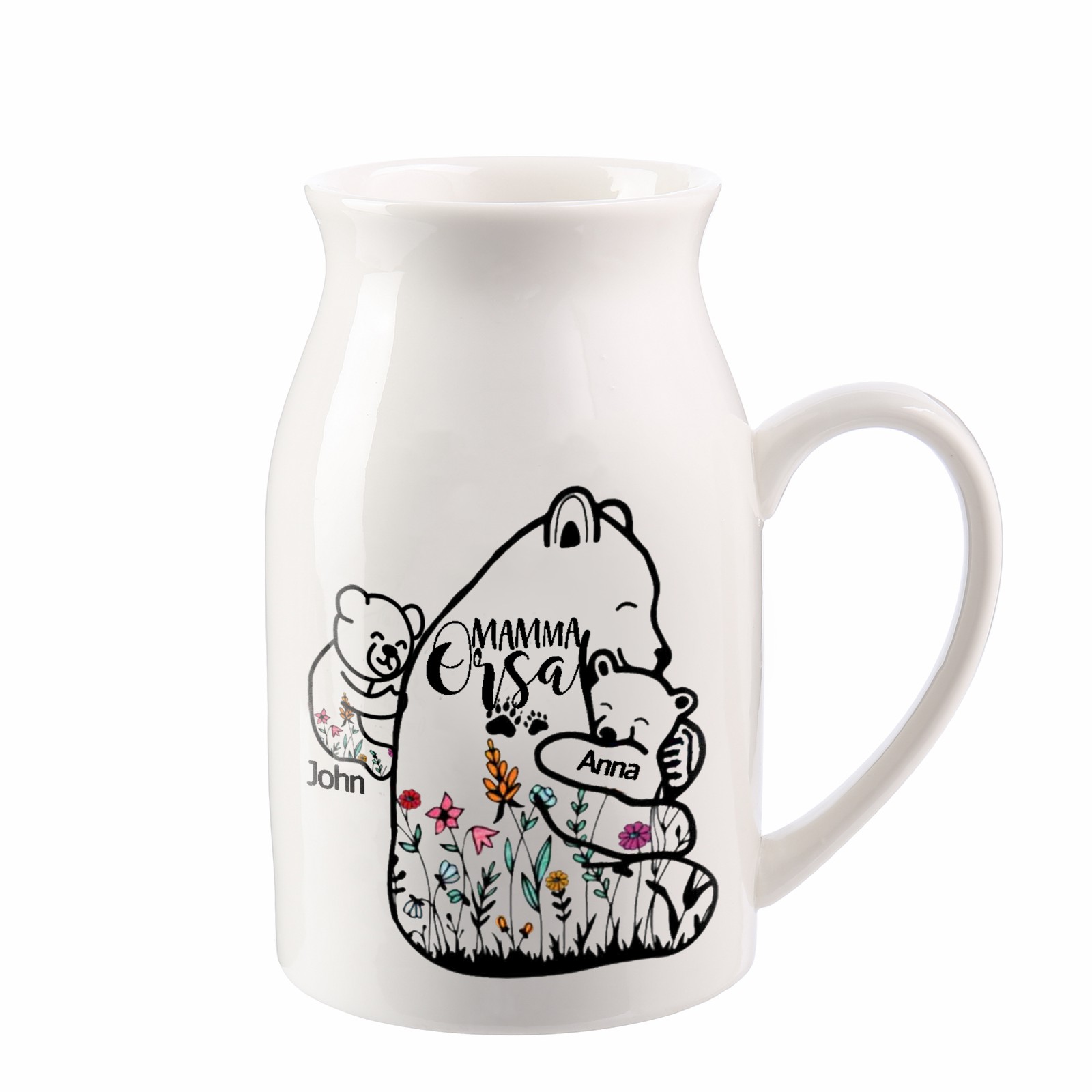 Vaso di ceramica mamma abbracciando l'orso personalizzato con 2 nomi e 1 testo per mamma/nonna
