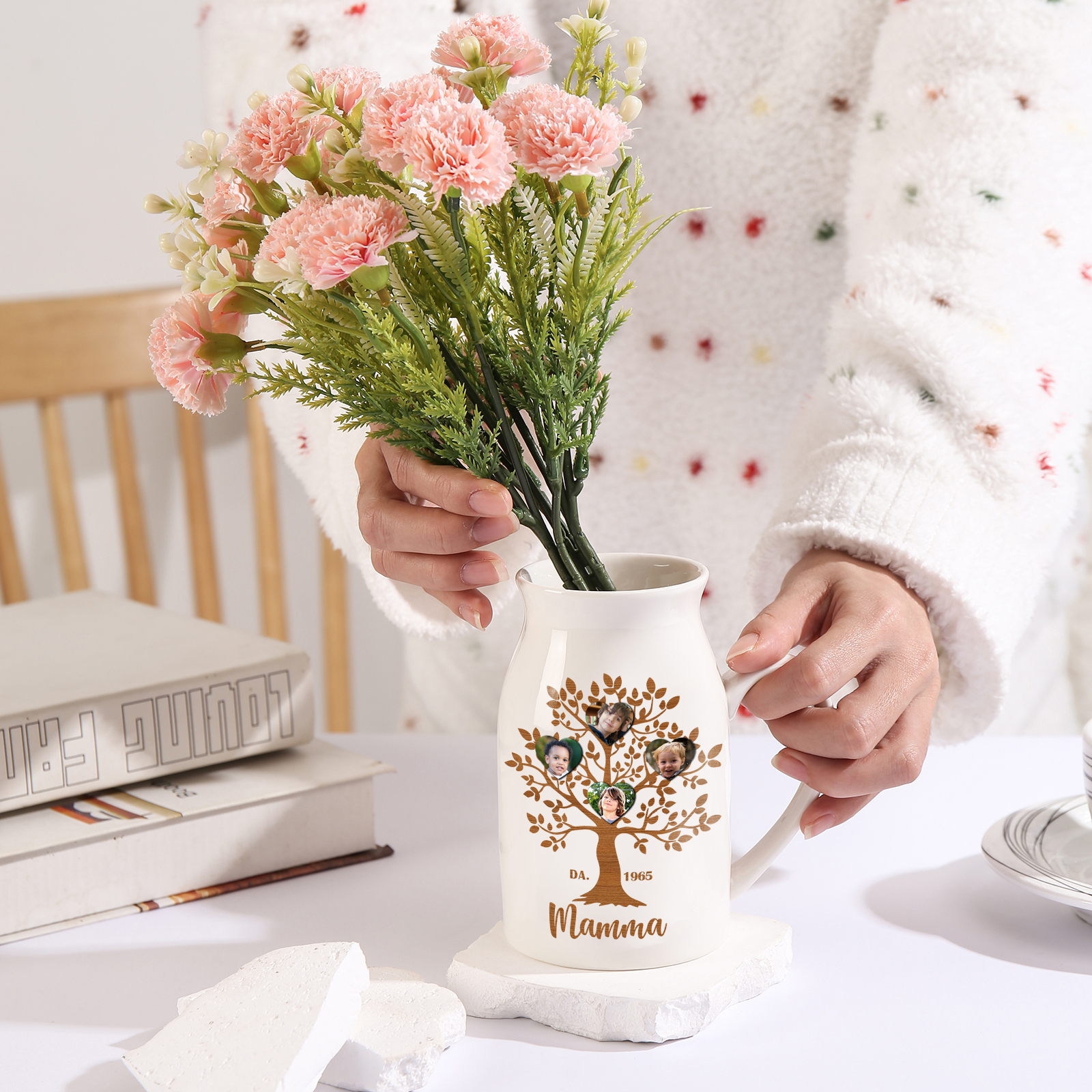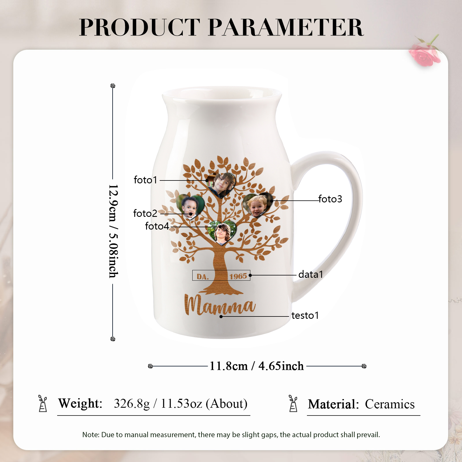 Vaso di Ceramica Mamma marrone Albero di Vita Personalizzato con 4 foto e 1 testo 1 data per mamma/nonna