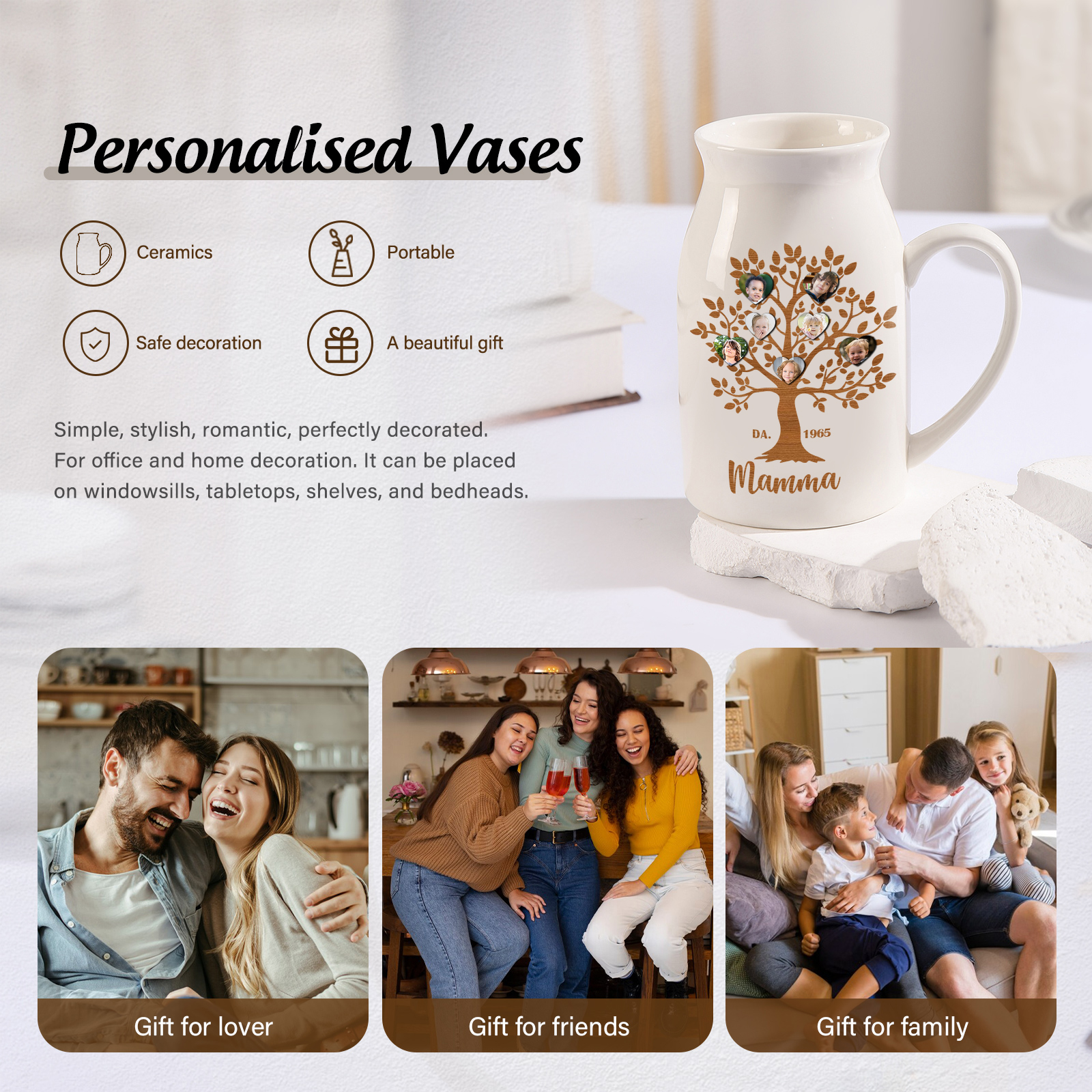 Vaso di Ceramica Mamma marrone Albero di Vita Personalizzato con 7 foto e 1 testo 1 data per mamma/nonna