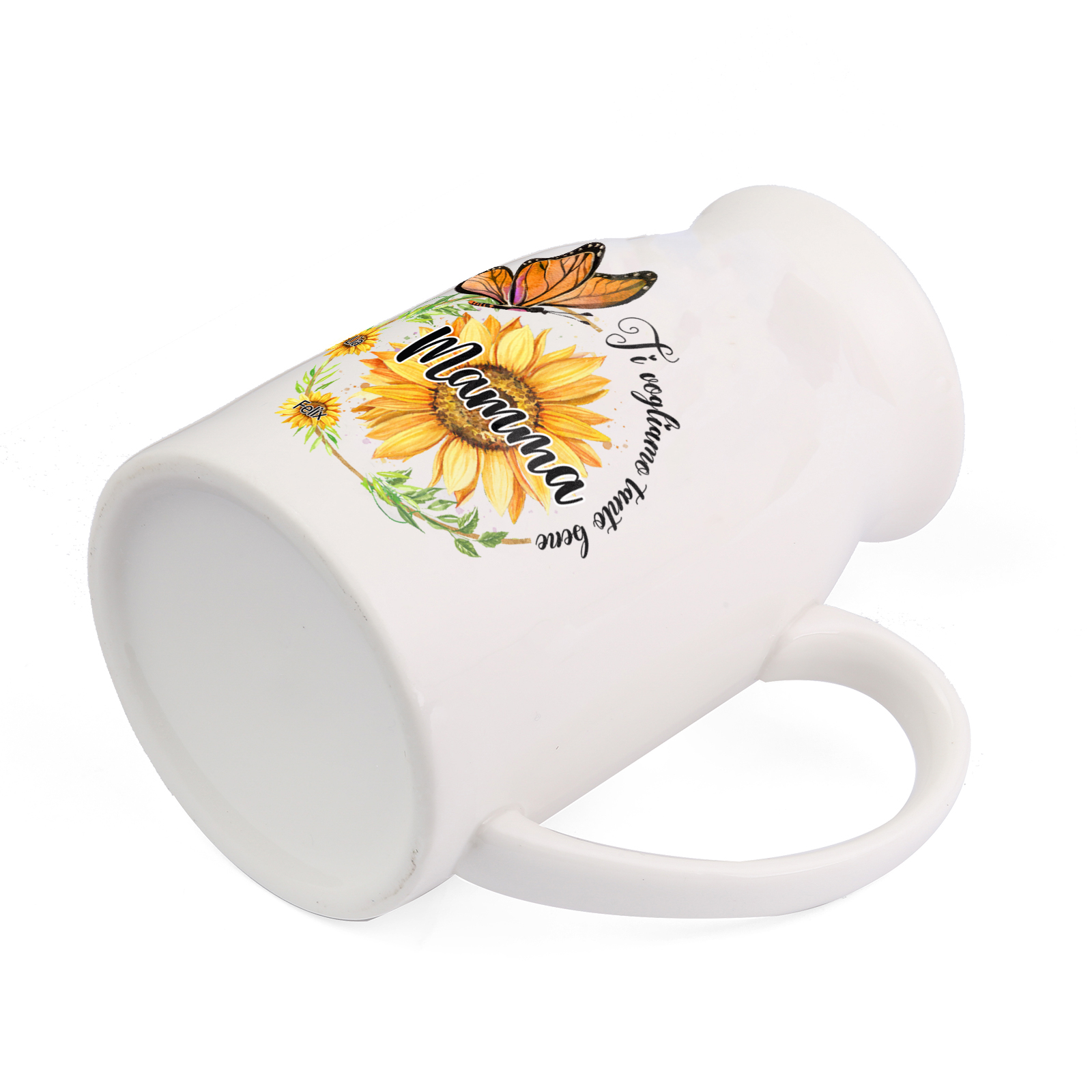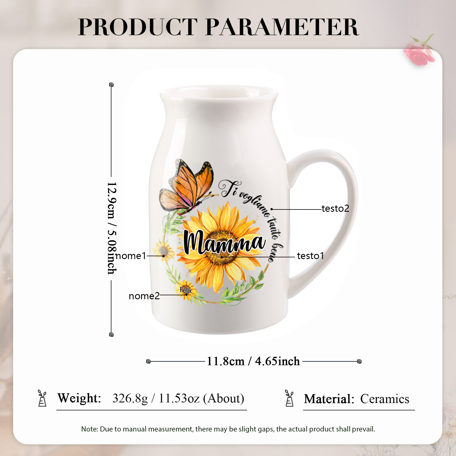 Vaso di ceramica mamma con girasole e farfalla personalizzato con 2 nomi e 2 testi per mamma/nonna