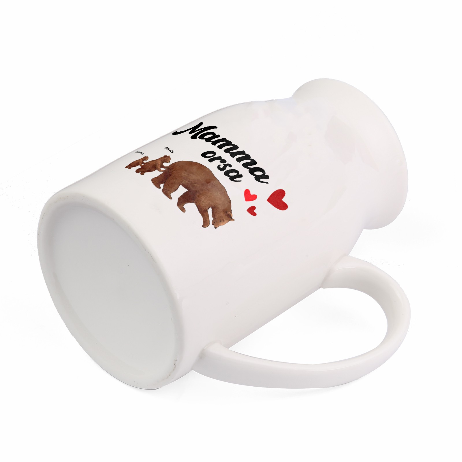Vaso di ceramica mamma orso bruno personalizzato con 2 nomi e 1 testo per mamma/nonna