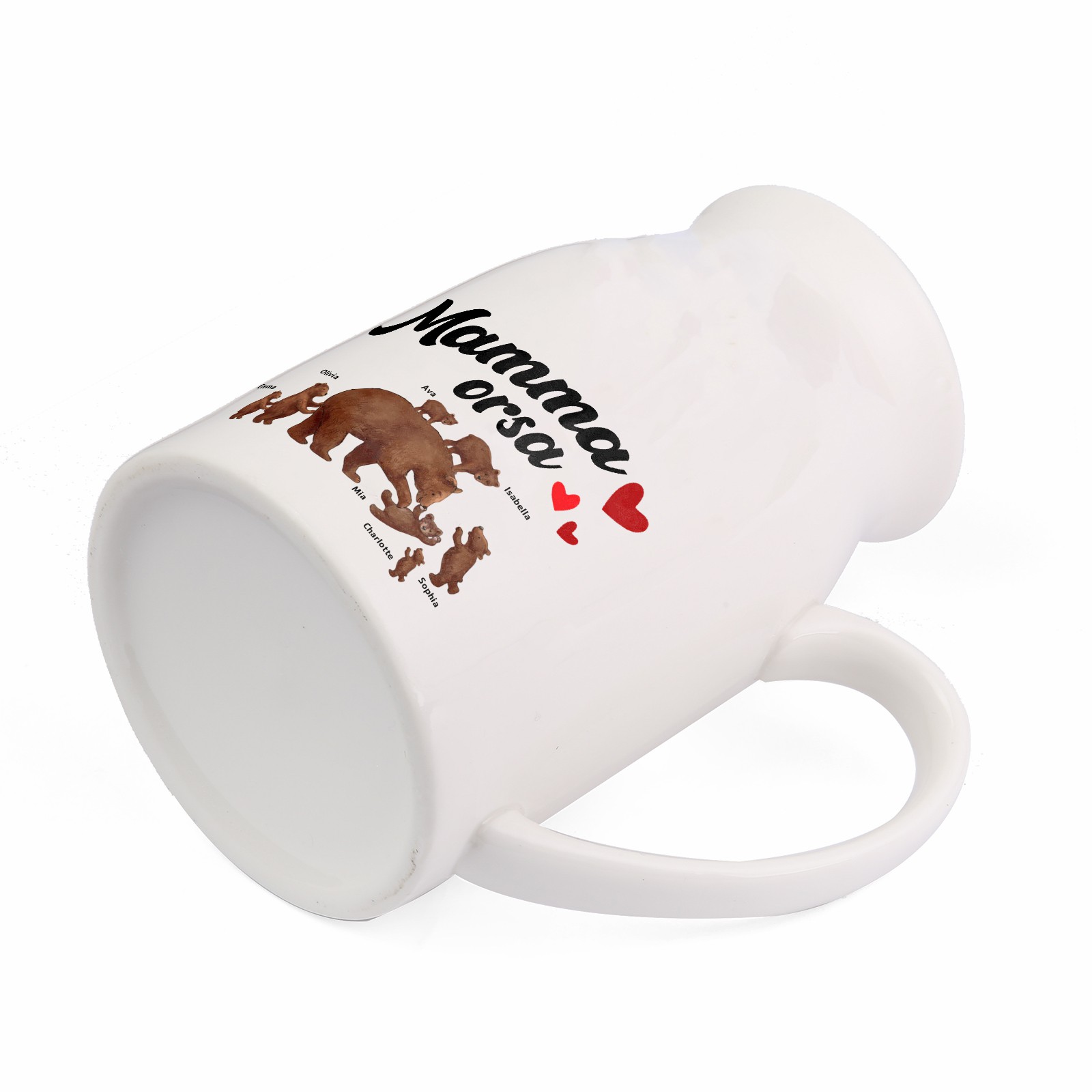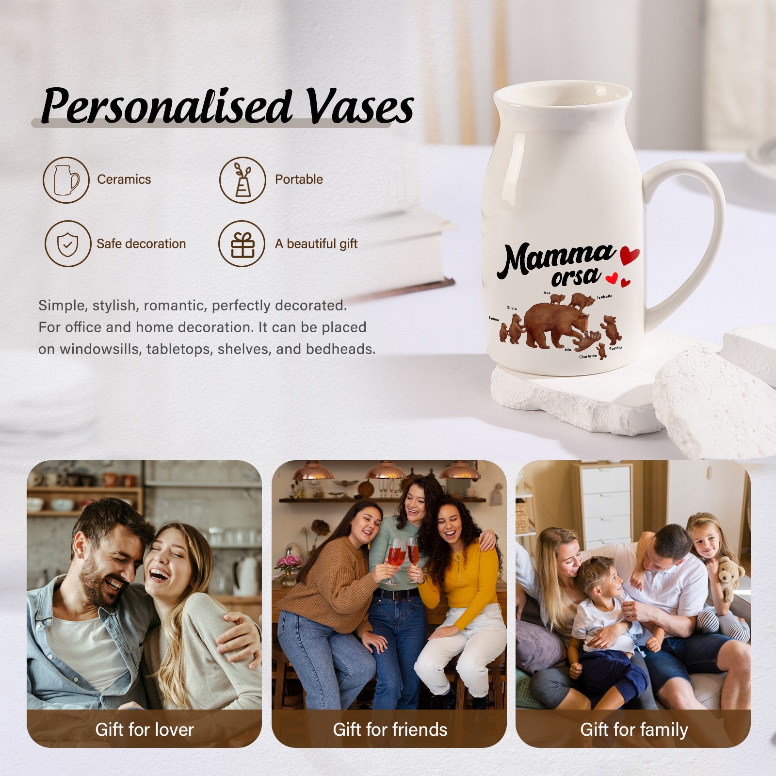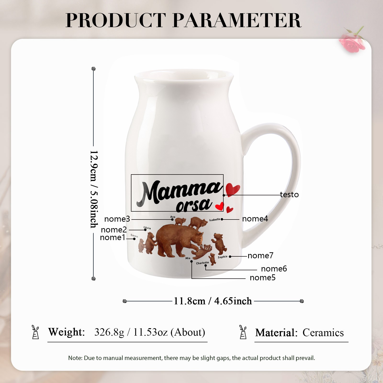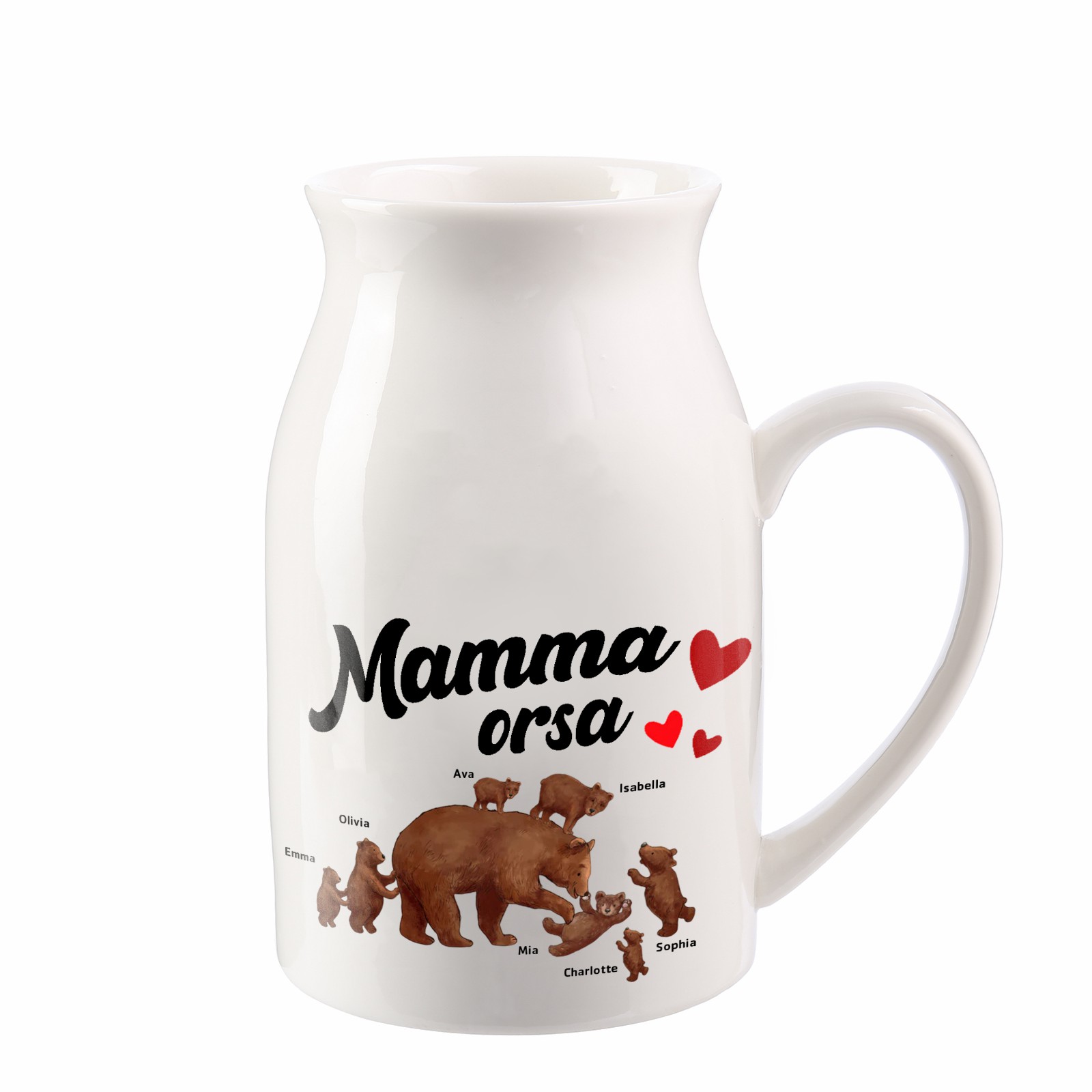 Vaso di ceramica mamma orso bruno personalizzato con 7 nomi e 1 testo per mamma/nonna