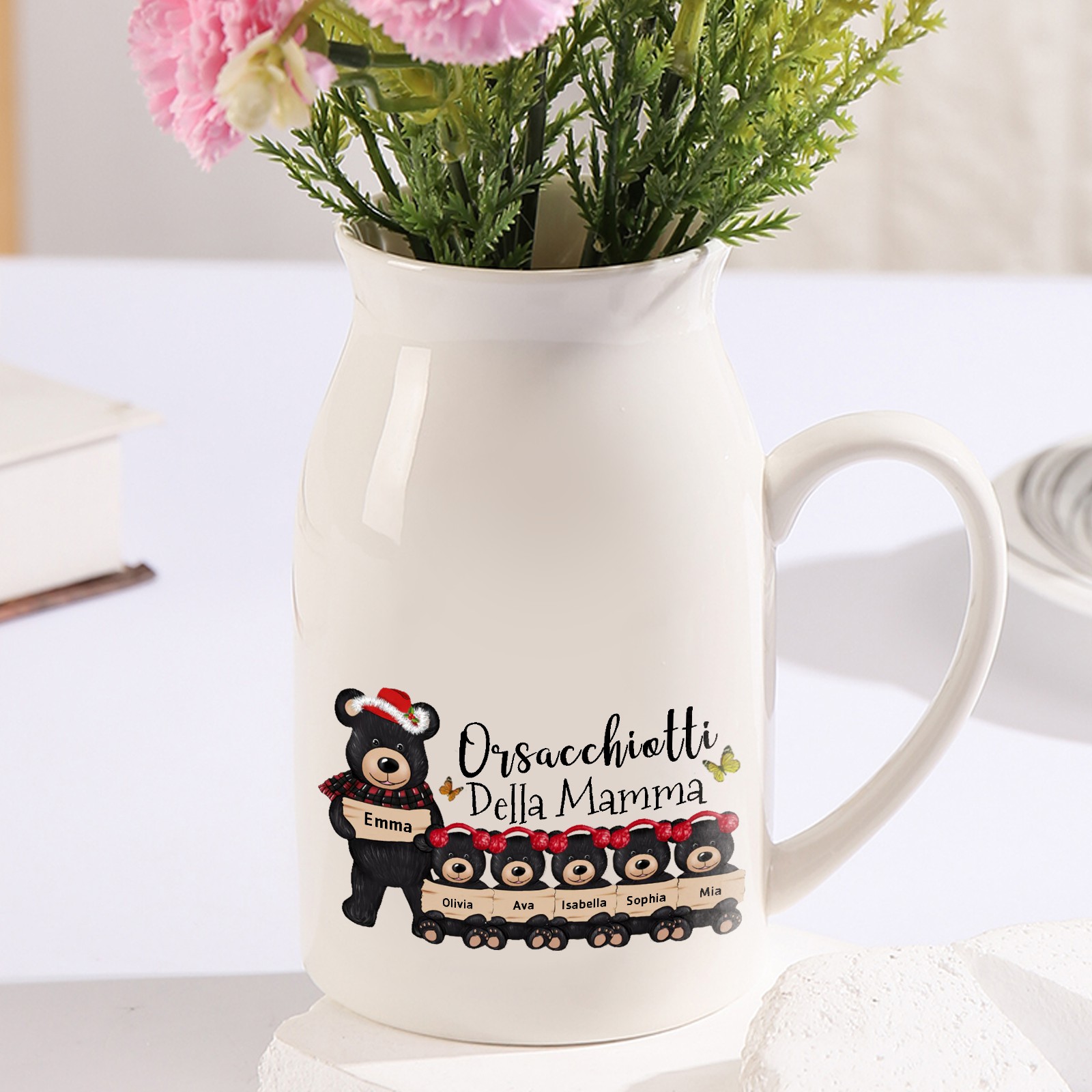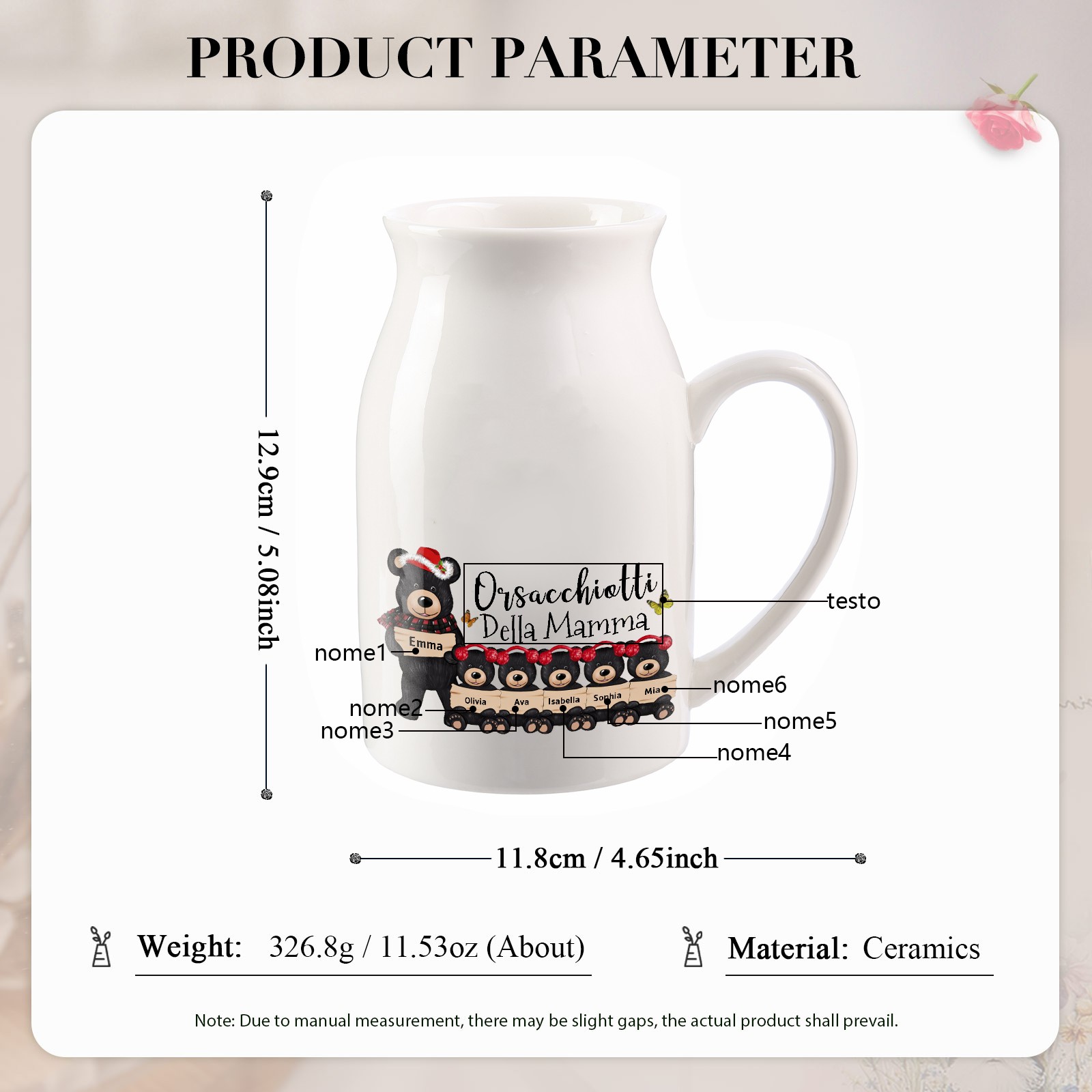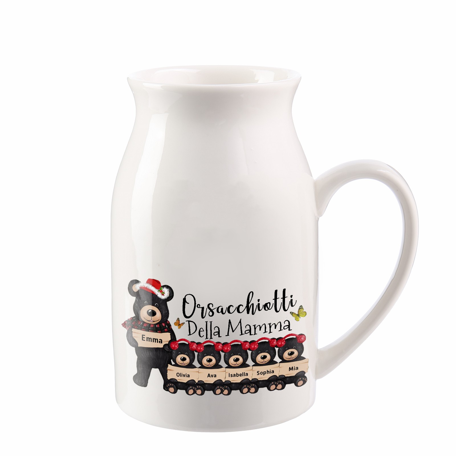 Vaso di ceramica mamma orso nero personalizzato con 6 nomi e 1 testo per mamma/nonna
