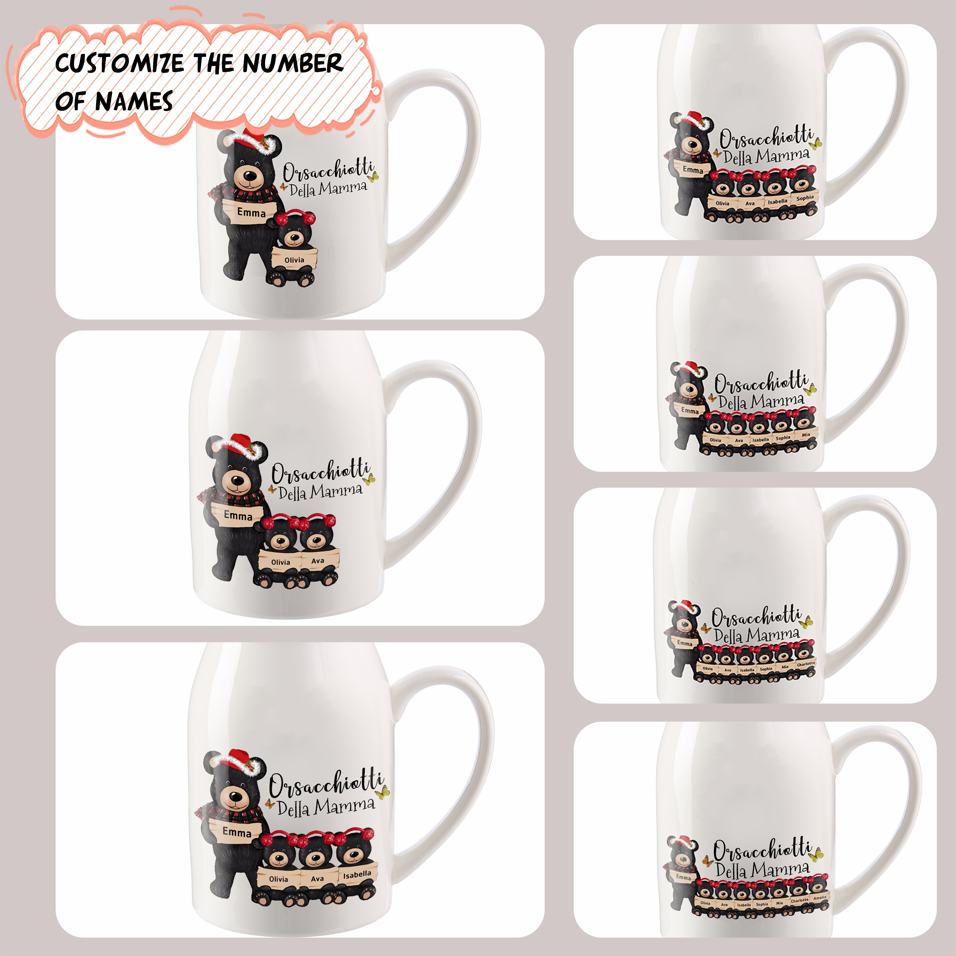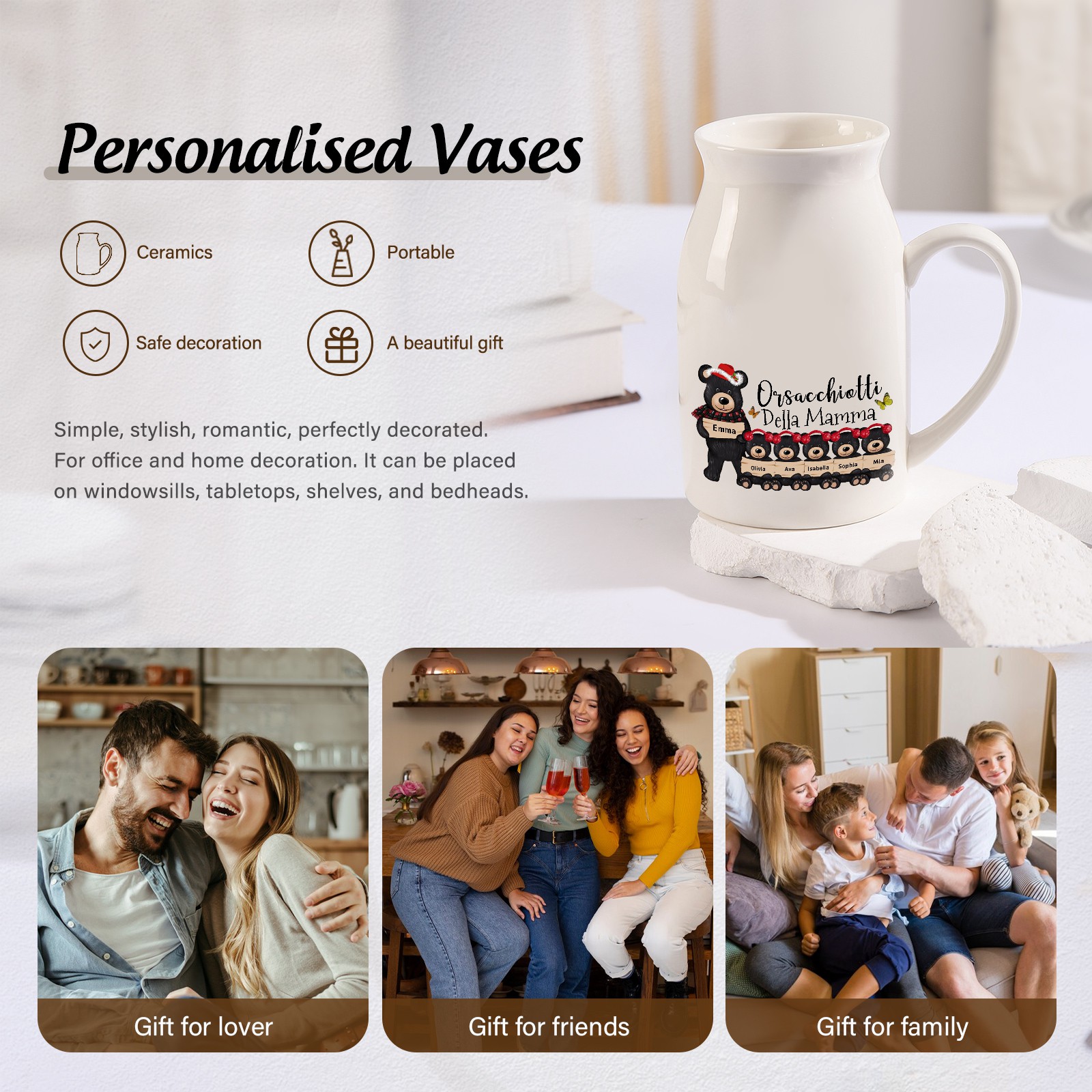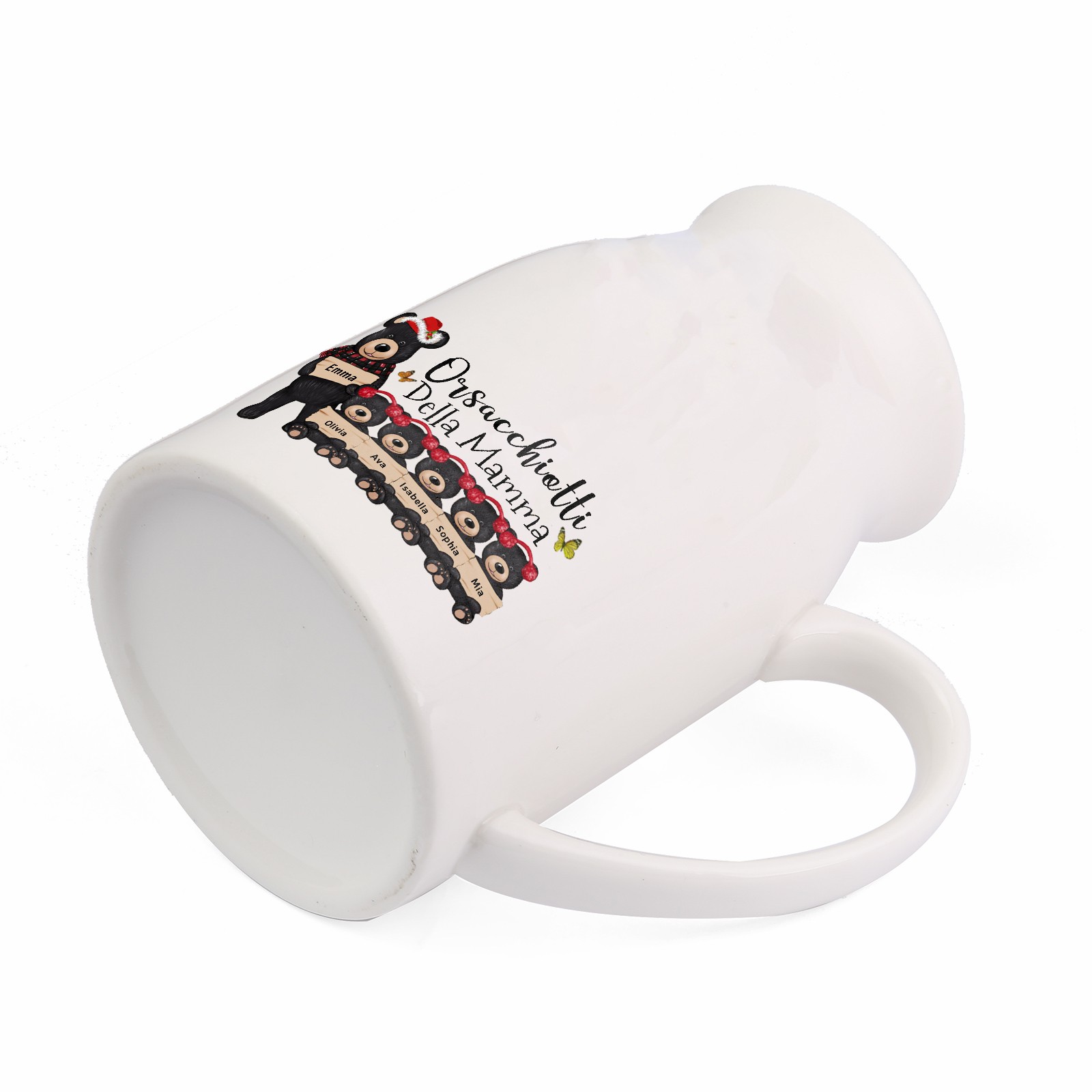 Vaso di ceramica mamma orso nero personalizzato con 6 nomi e 1 testo per mamma/nonna