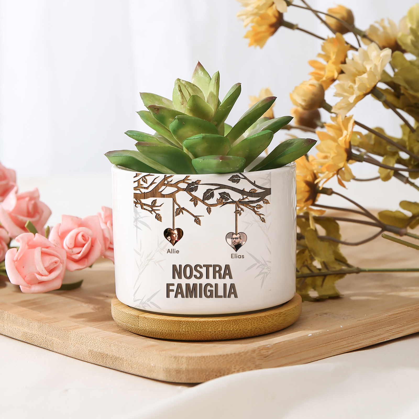 Vaso per fiori mamma albero di vita personalizzato con 2 foto e 2 nomi e 1 testo per famiglia