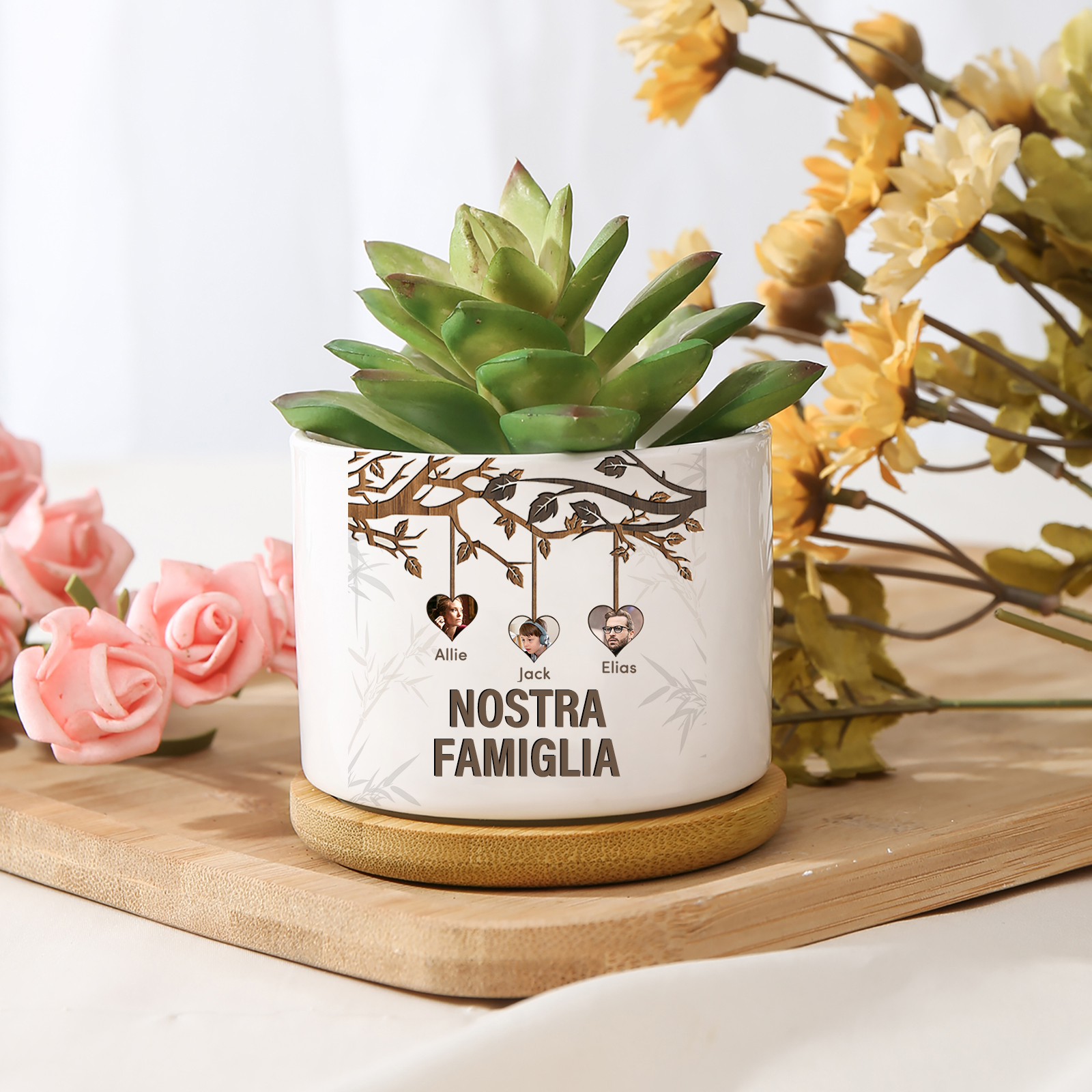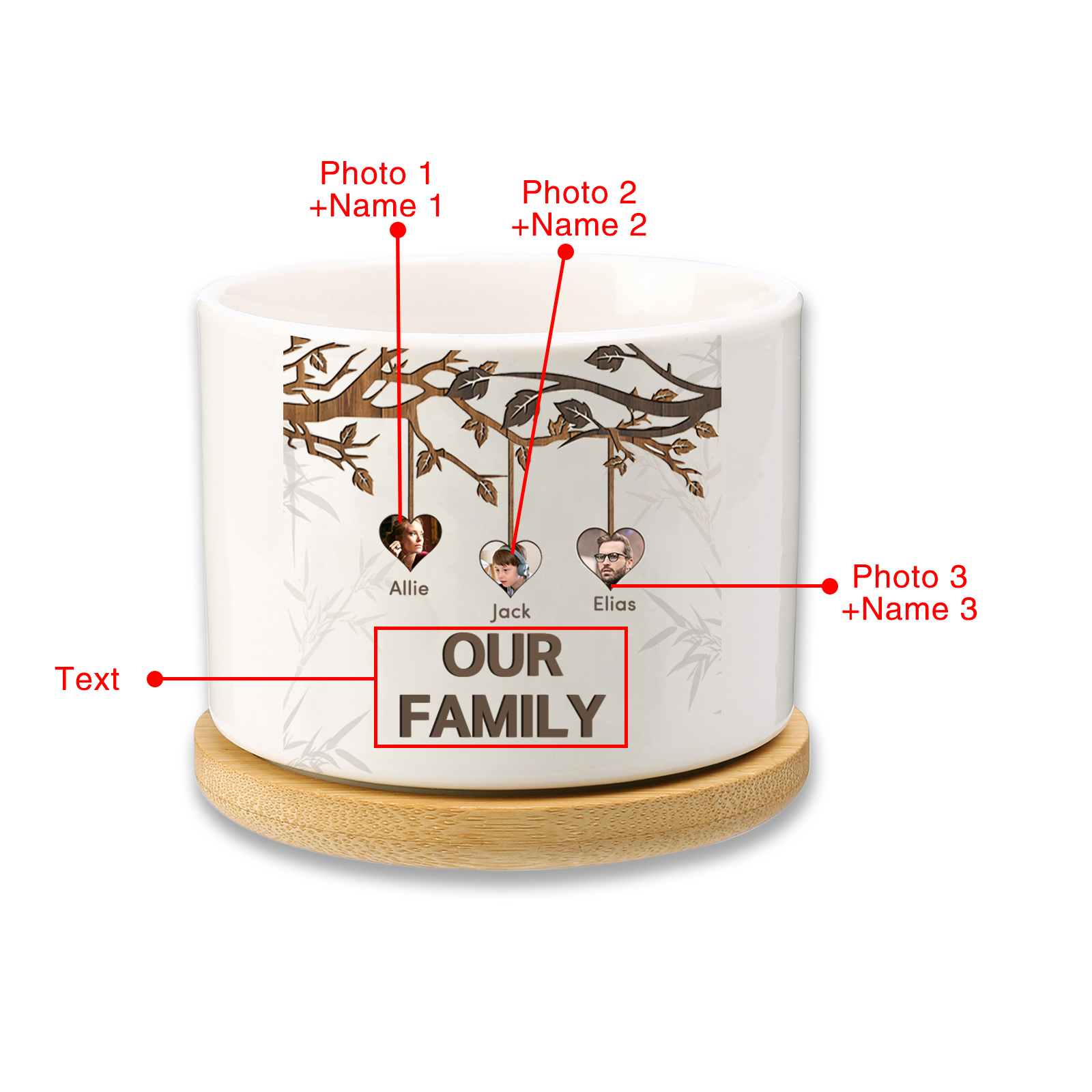 Vaso per fiori mamma albero di vita personalizzato con 3 foto e 3 nomi e 1 testo per famiglia