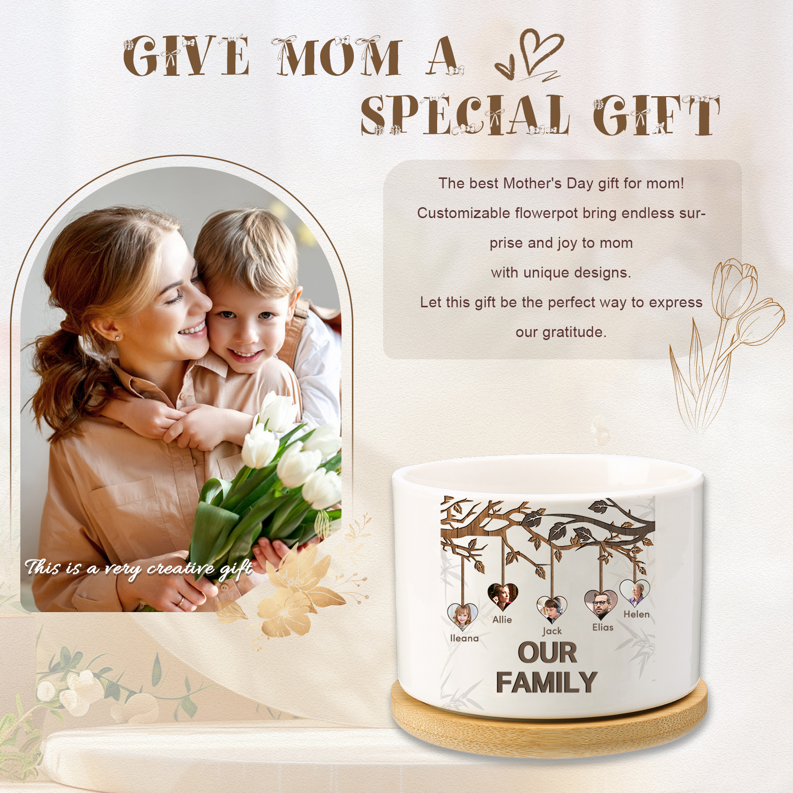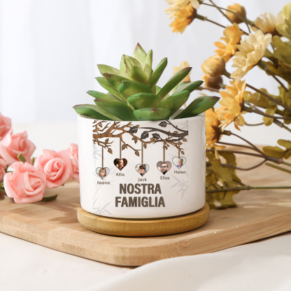 Vaso per fiori mamma albero di vita personalizzato con 5 foto e 5 nomi e 1 testo per famiglia