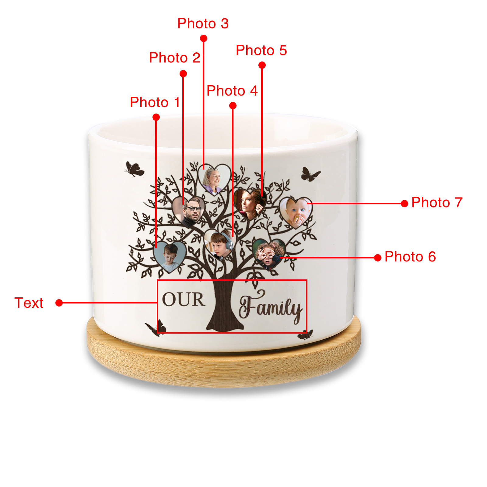 Vaso per fiori mamma albero di vita personalizzato con 7 foto e 1 testo per famiglia