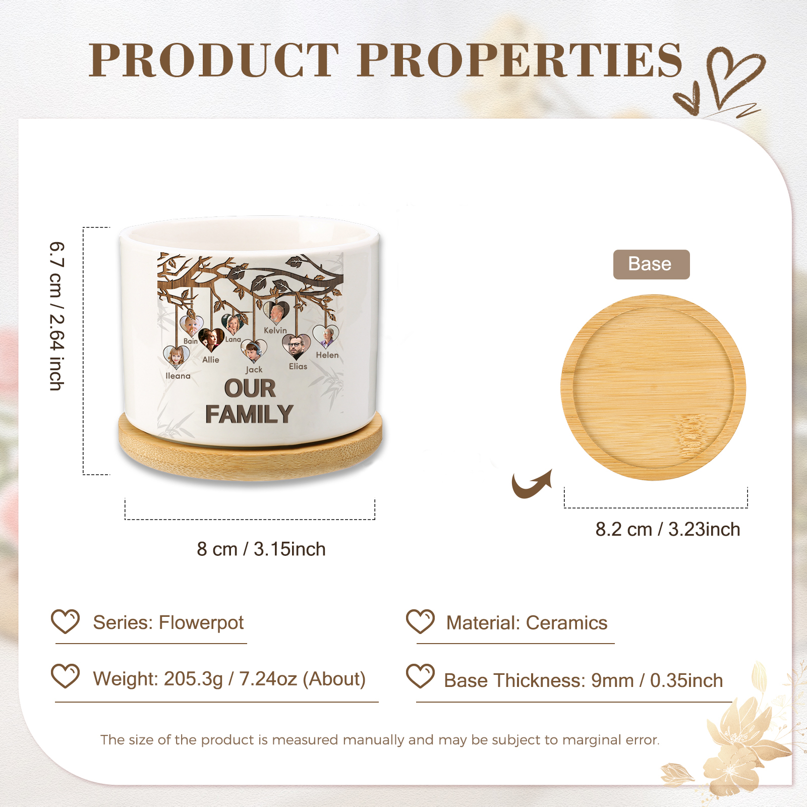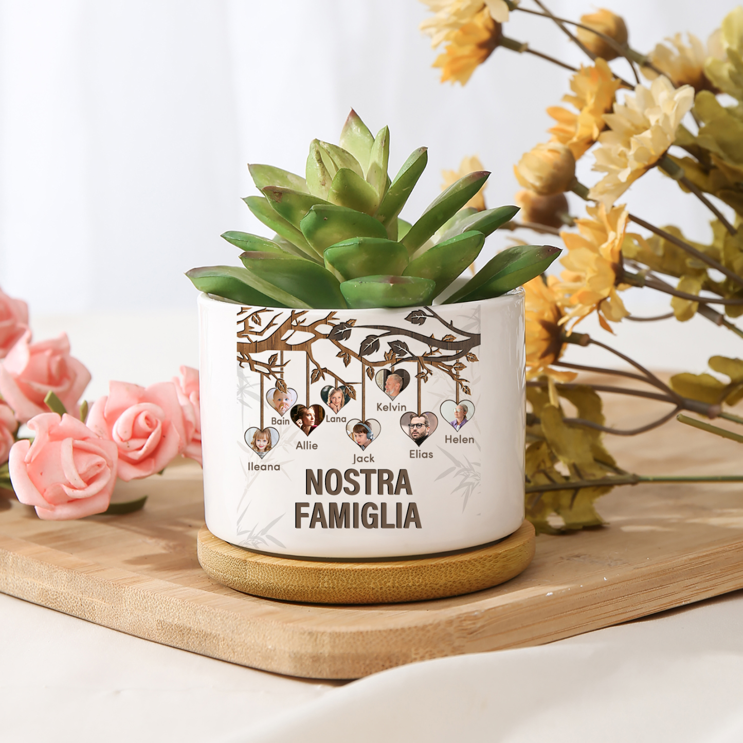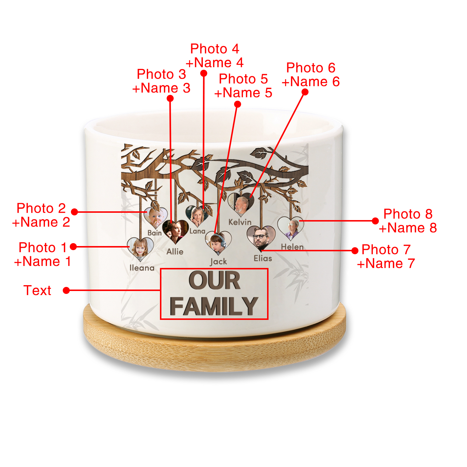 Vaso per fiori mamma albero di vita personalizzato con 8 foto e 8 nomi e 1 testo per famiglia