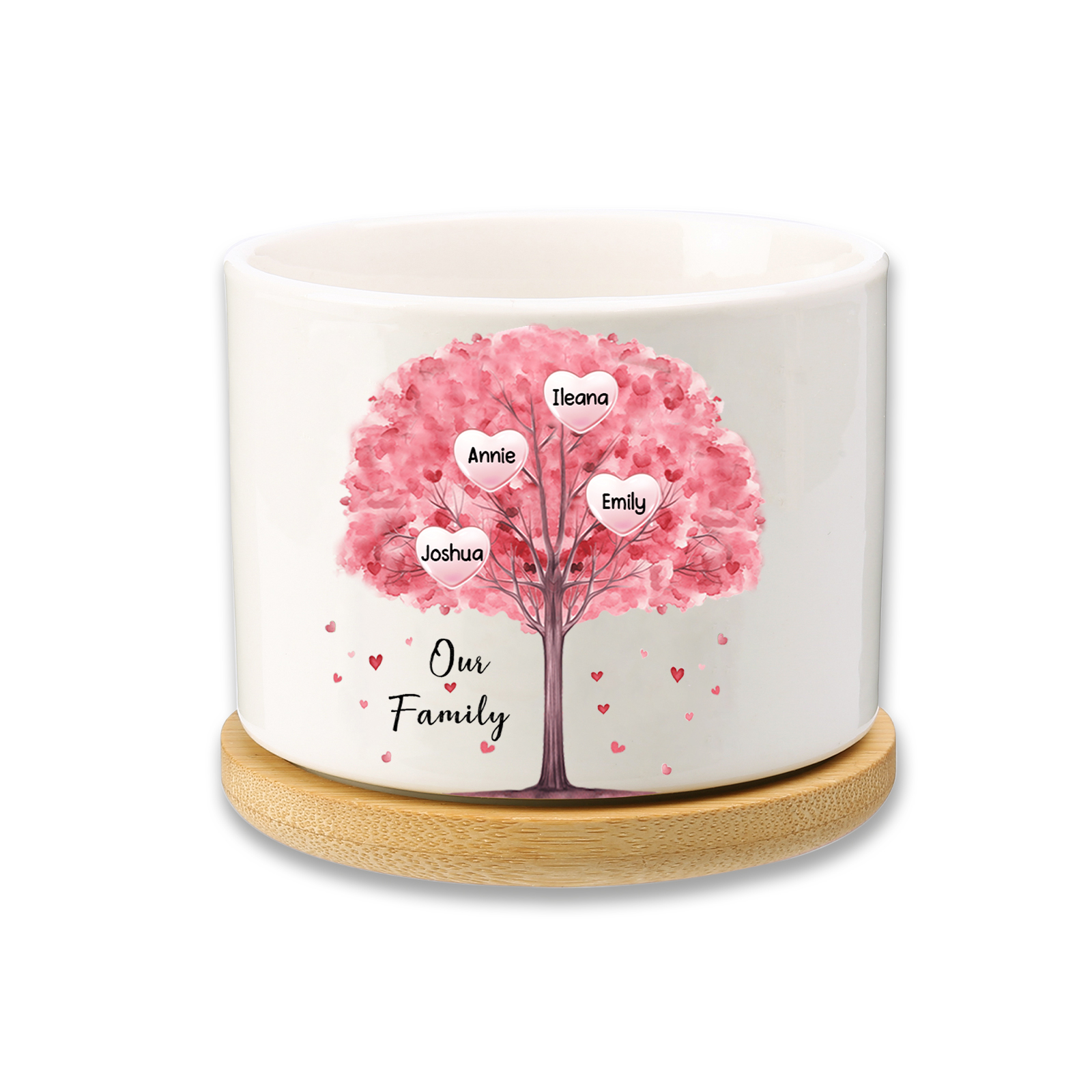Vaso per fiori mamma albero rosa personalizzato 4 nomi e 1 testo per famiglia