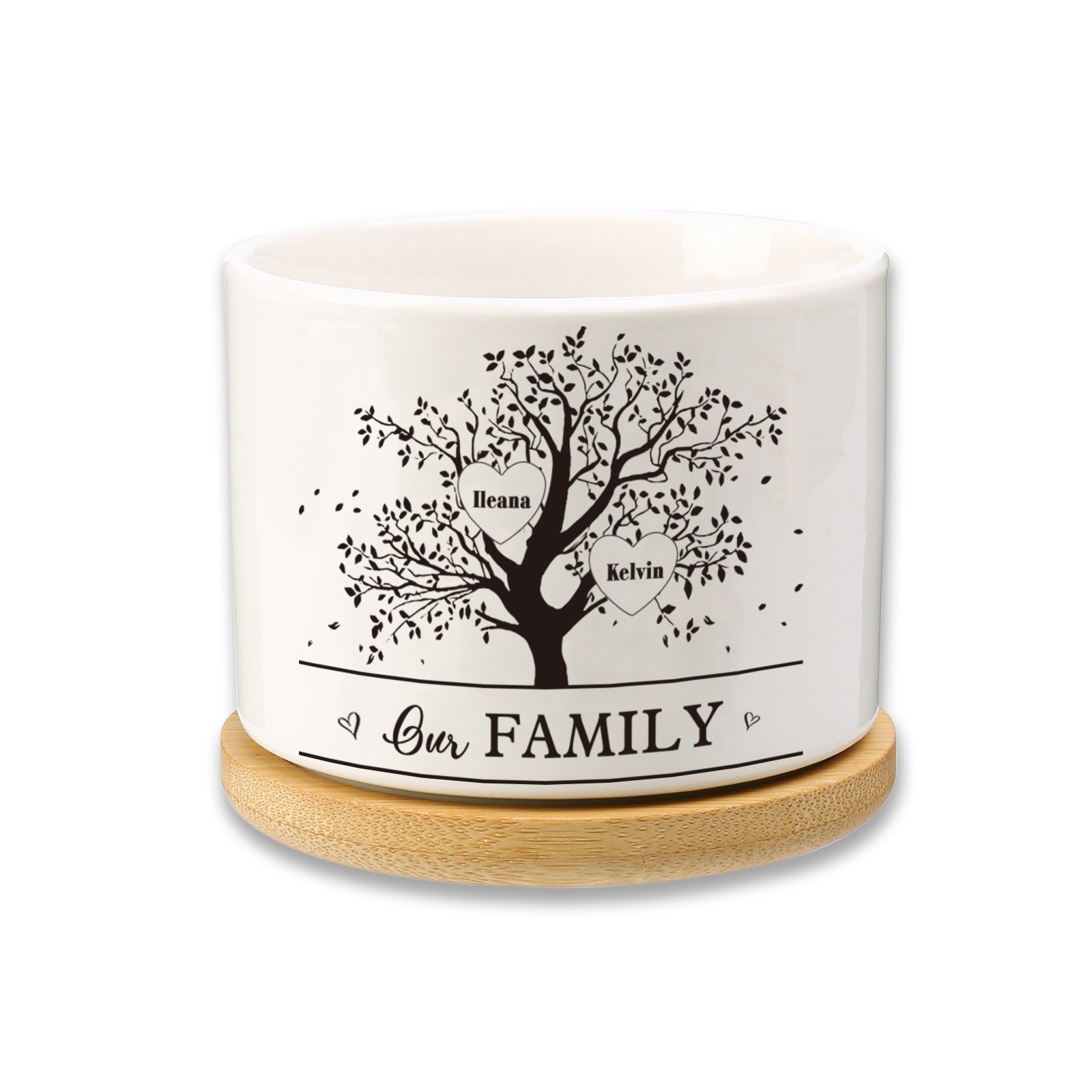 Vaso per fiori mamma nero albero di vita personalizzato con 2 nomi e 1 testo per famiglia