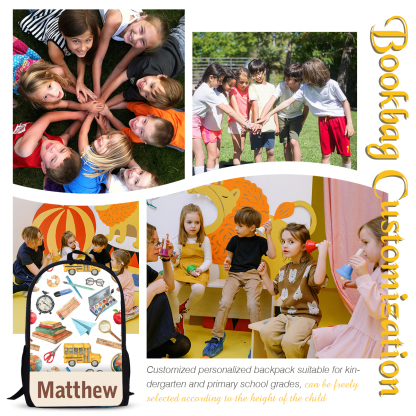 Zaino con Nome Foto Personalizzato lettere stilizzati cartoon character Borsa da Scuola per Studenti elementari bambini ragazza Cancelleria viaggio